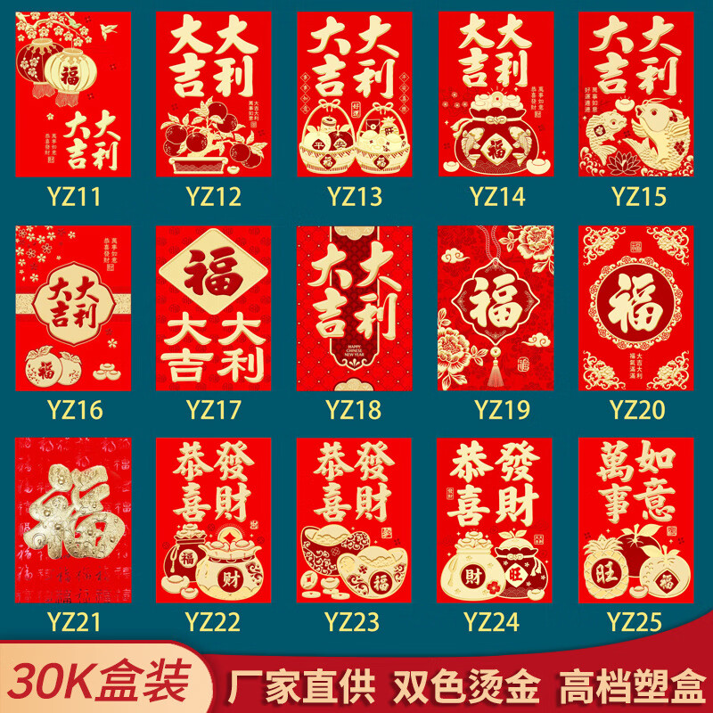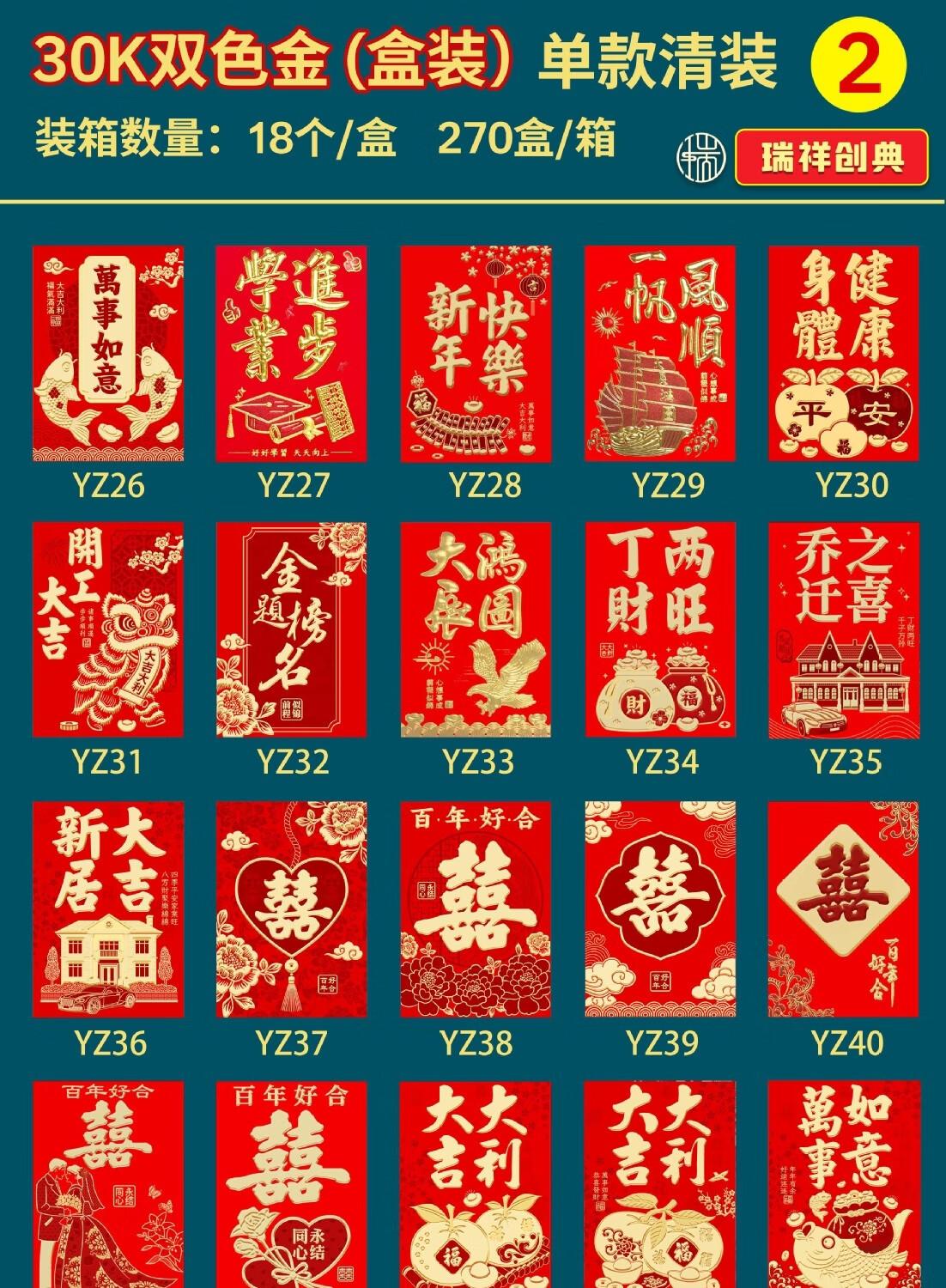 瑞祥创典【甄选】春节红包30开双金利是封厂家直销新年利是封红包过年盒装 30K-YZ58 8*11.5cm(18个/盒)