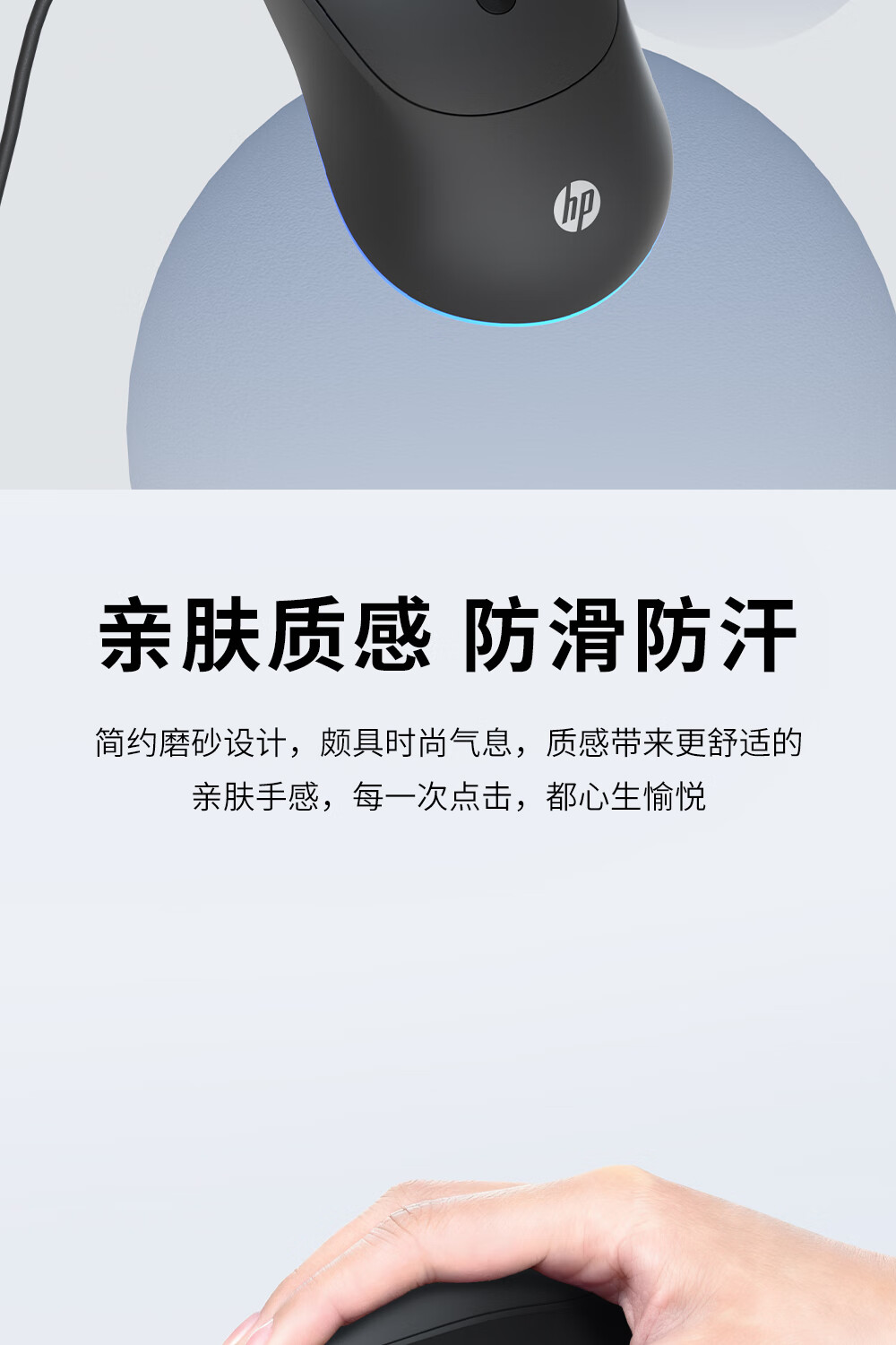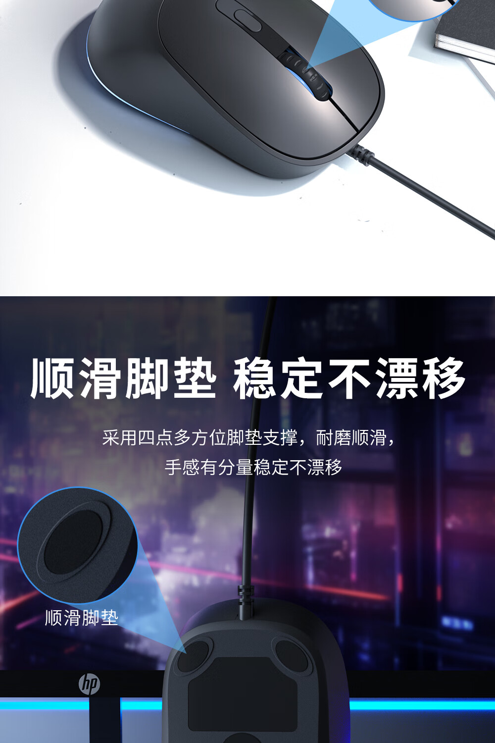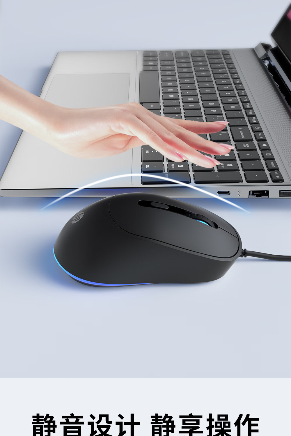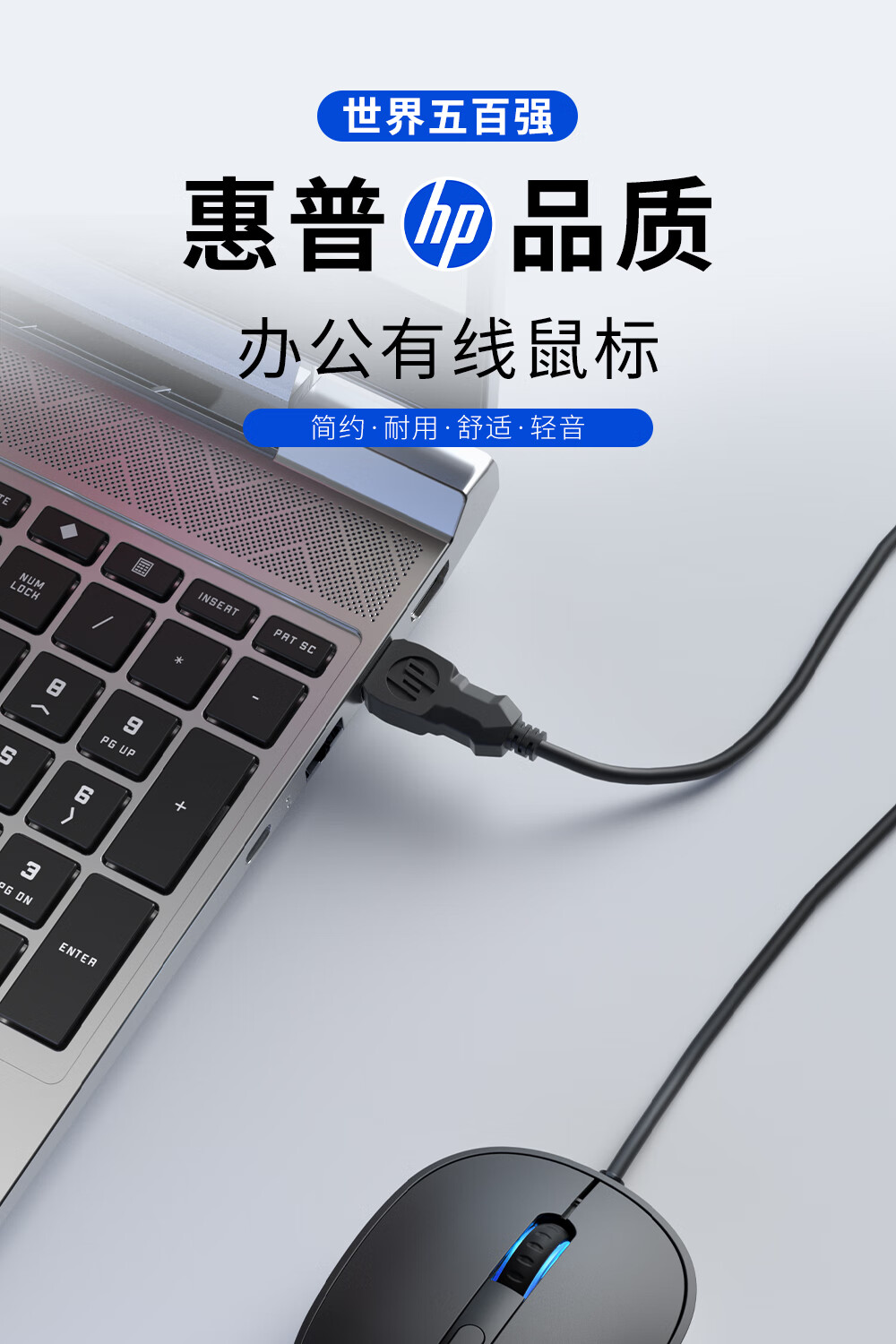 惠普(HP)G100鼠标有线办公人体工学 笔记本电脑台式机通用USB适用 黑色静音