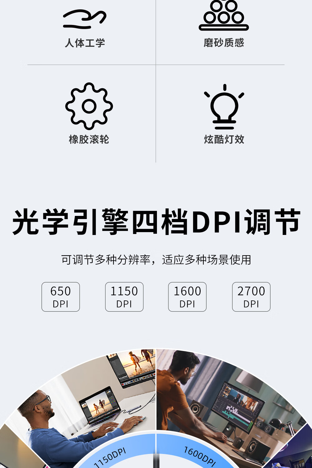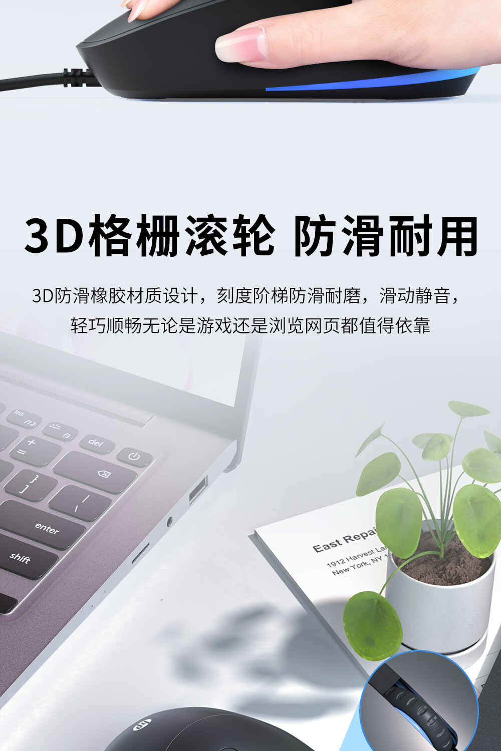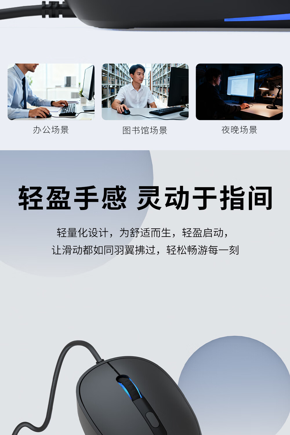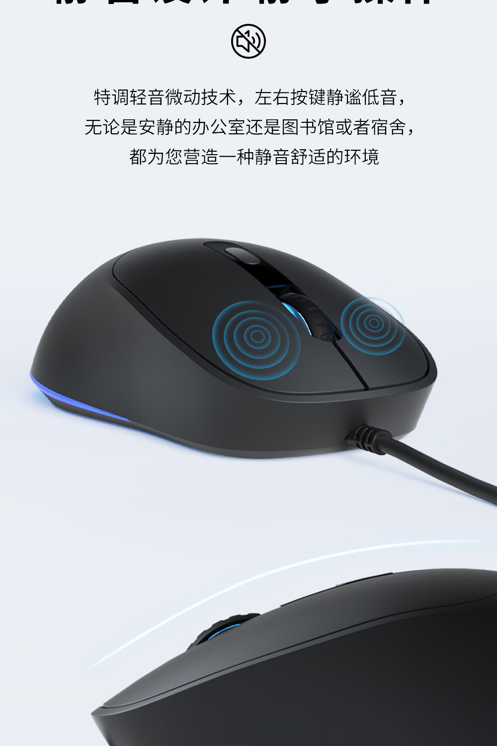 惠普(HP)G100鼠标有线办公人体工学 笔记本电脑台式机通用USB适用 黑色静音