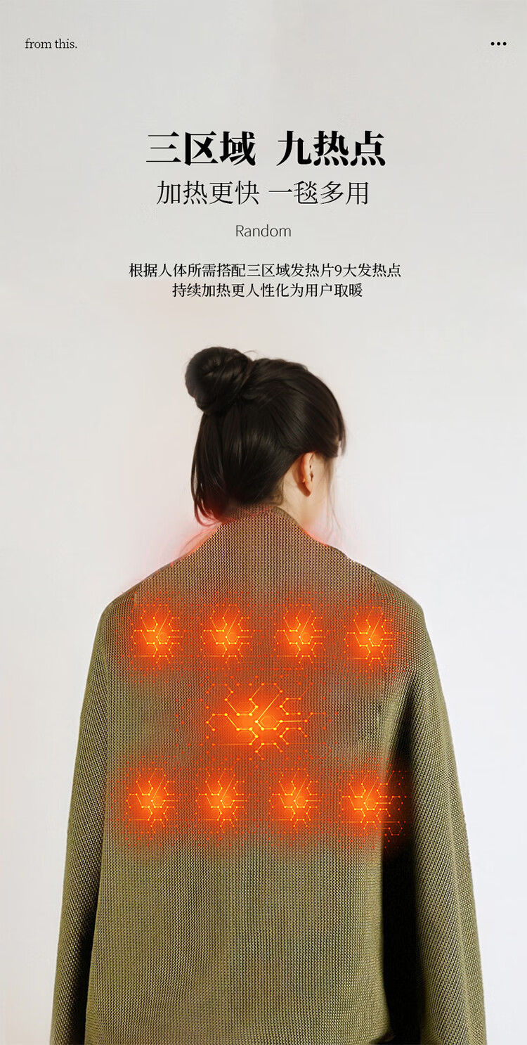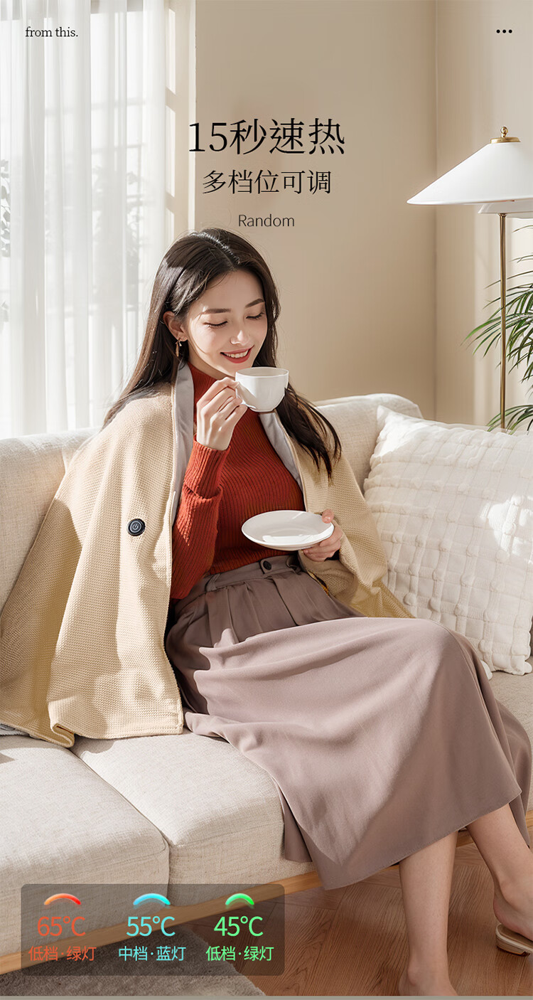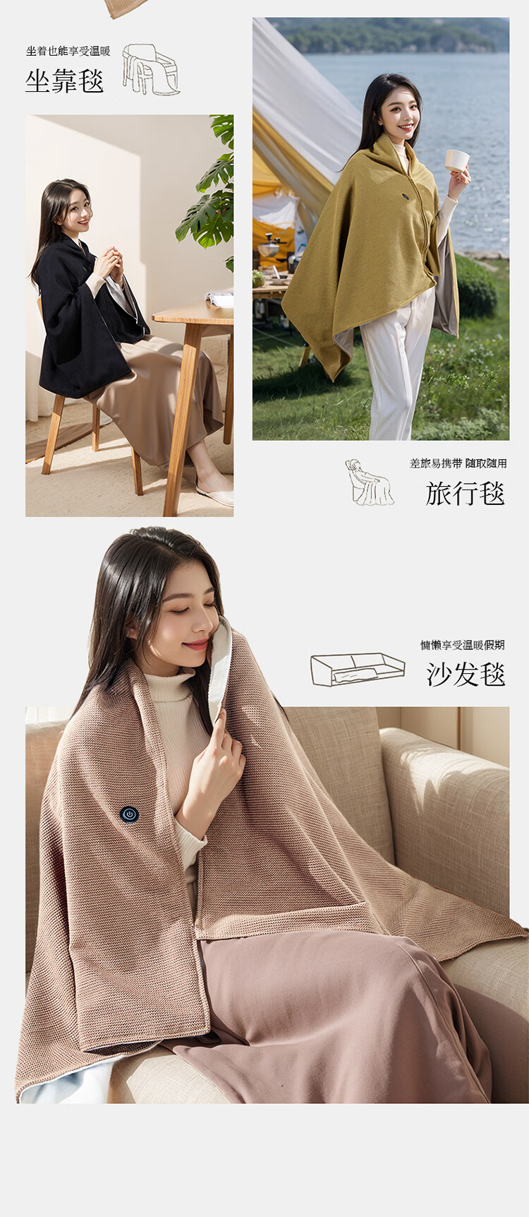 筏芯德国电热暖身毯发热披肩两用冬季单人保暖神器办公室沙发盖腿毯子 雪花杏【首款9区发热+3档控温】3S秒热