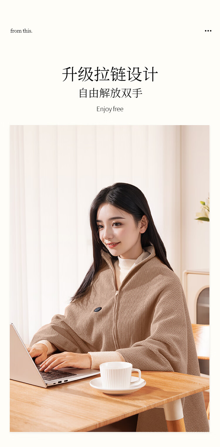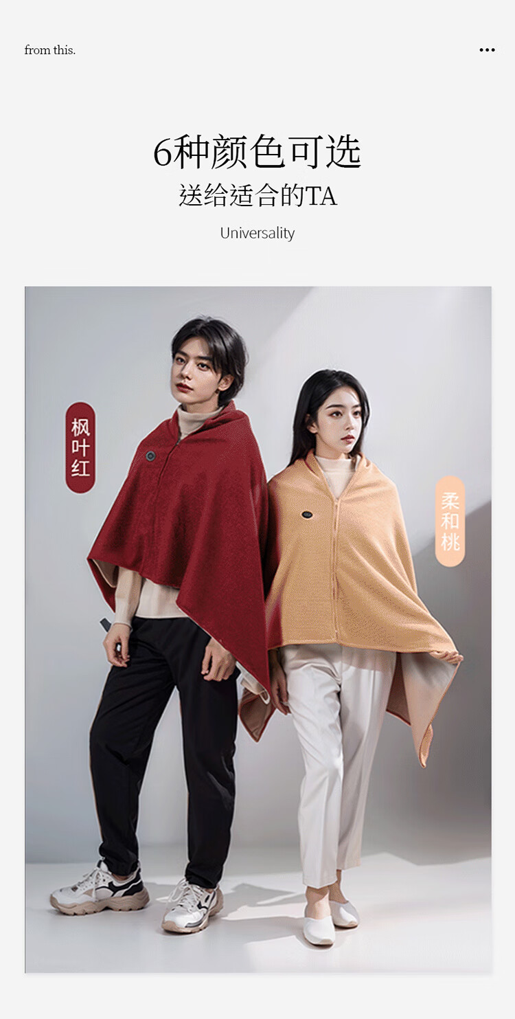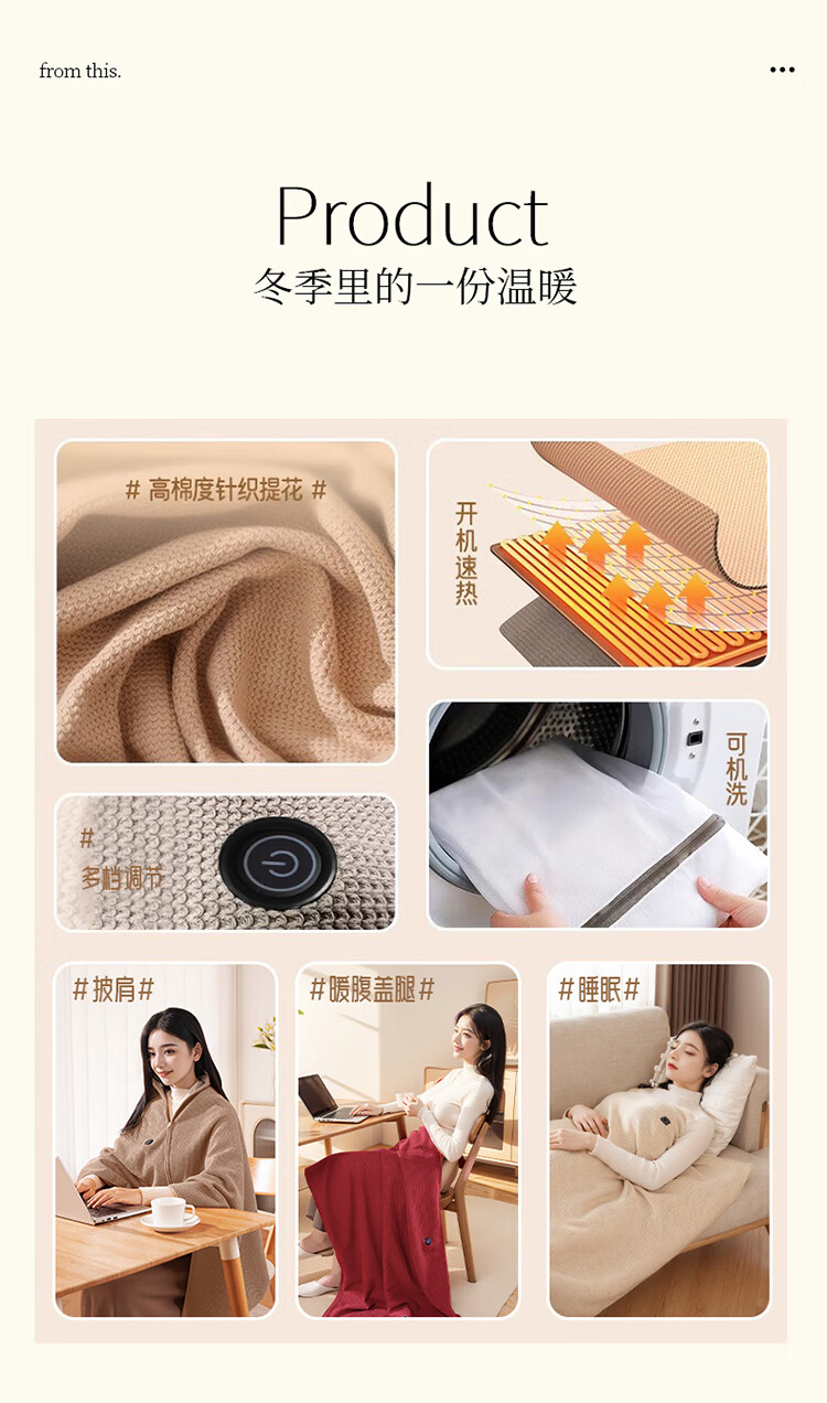 筏芯德国电热暖身毯发热披肩两用冬季单人保暖神器办公室沙发盖腿毯子 雪花杏【首款9区发热+3档控温】3S秒热