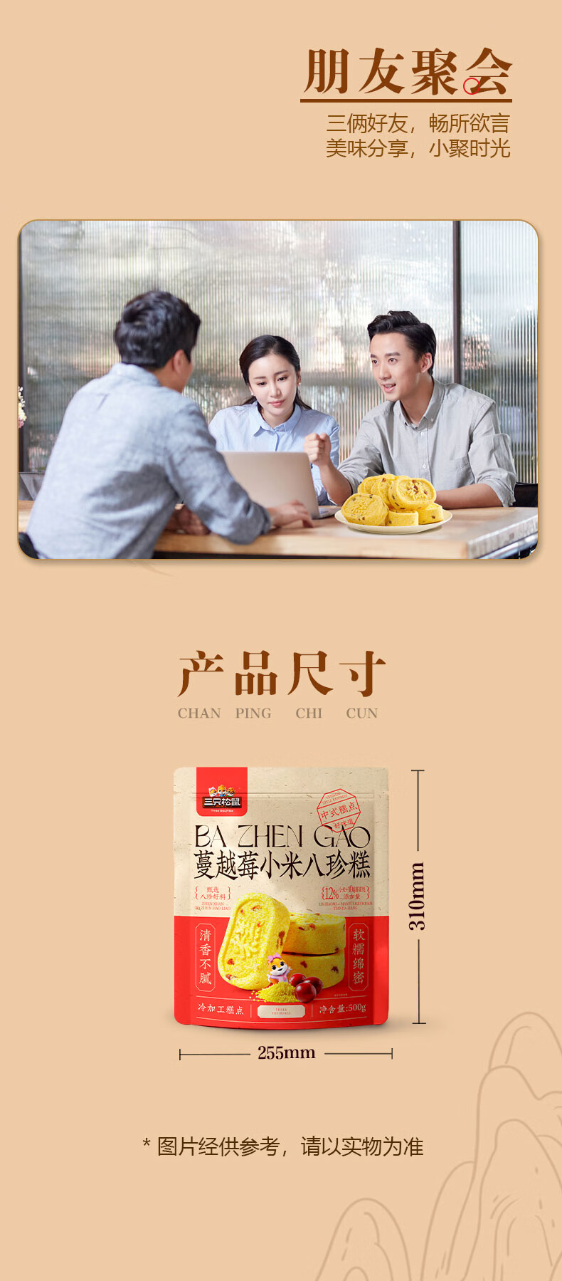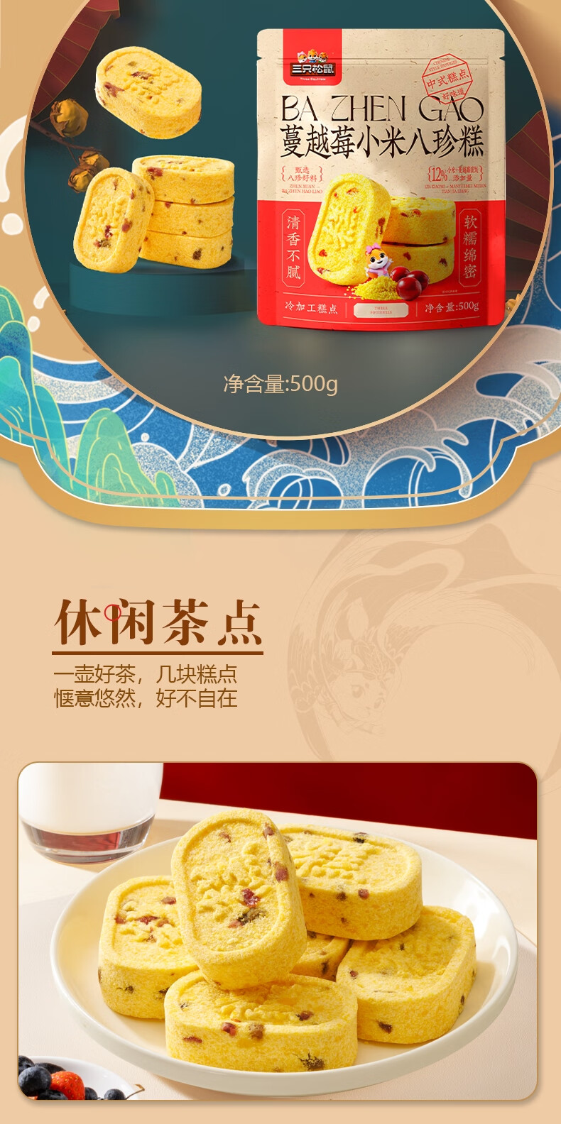 三只松鼠蔓越莓小米八珍糕500g 果仁米糕健康早餐零食传统中式糕点点心