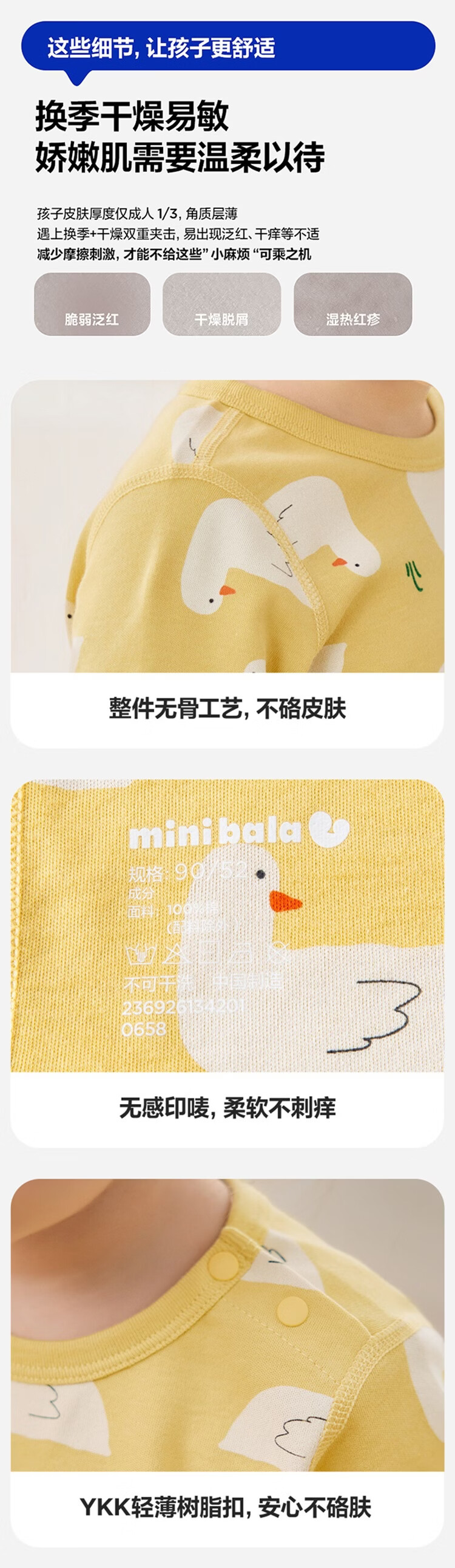 迷你巴拉【植物芯】巴拉男女童纯棉内衣套装宝宝亲肤打底