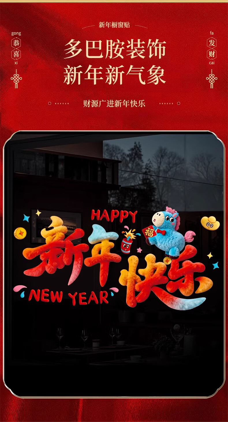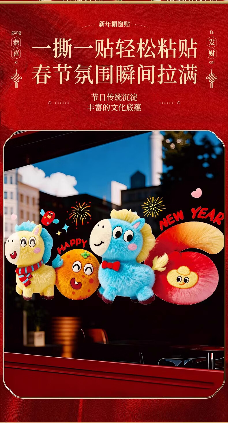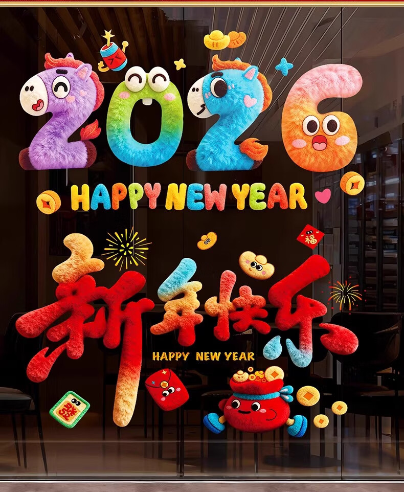 米卡博2026马年窗花静电贴新款装饰玻璃贴过年春节氛围布置橱窗花贴纸 【2026+新年快乐】1套2张:强静电/无残留胶 无规格