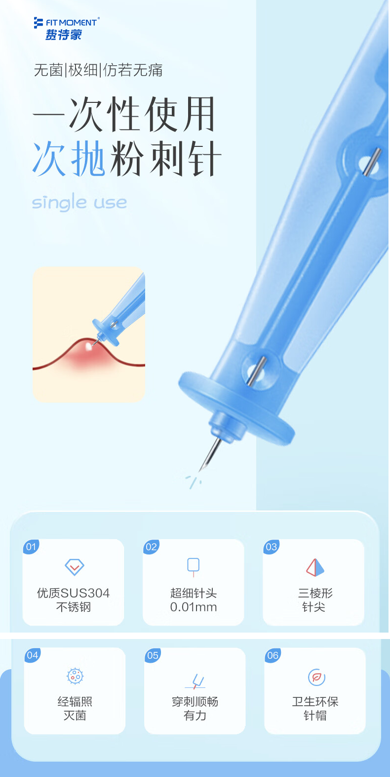 FIT MOMENT医用无菌粉刺针一次性清痘针脂肪粒挑痘针清工具仿若无痛款50支