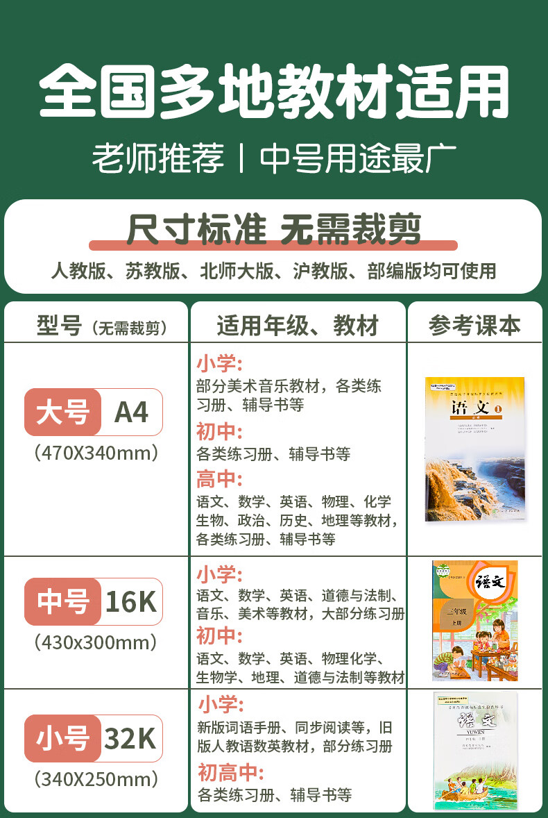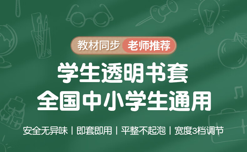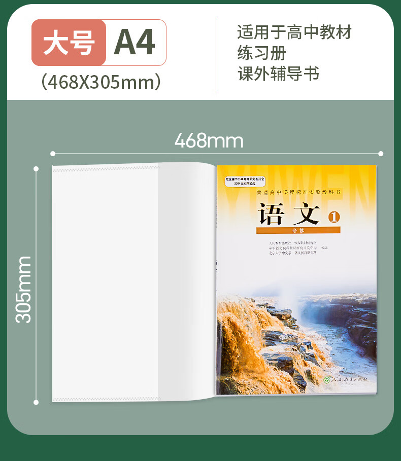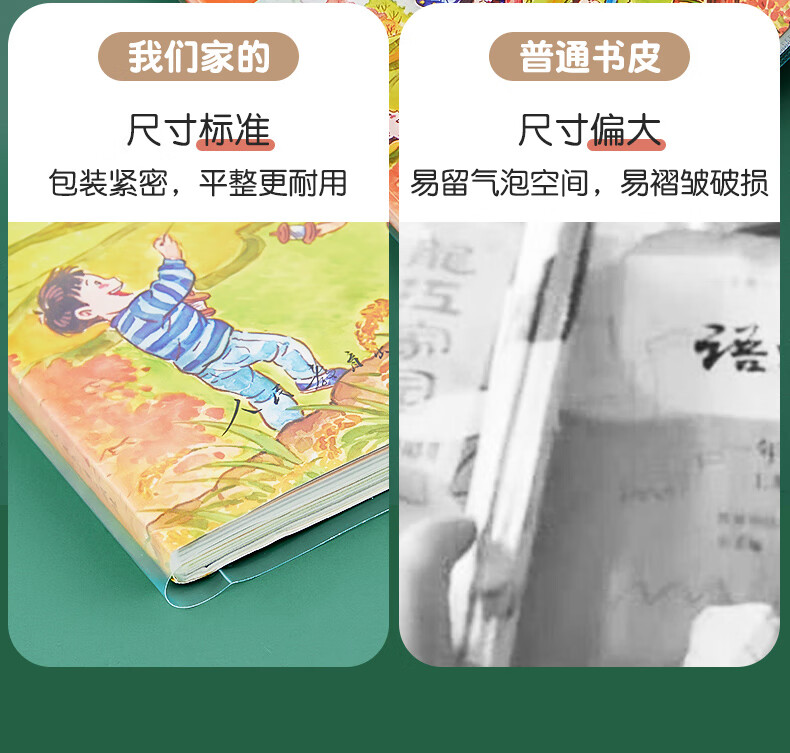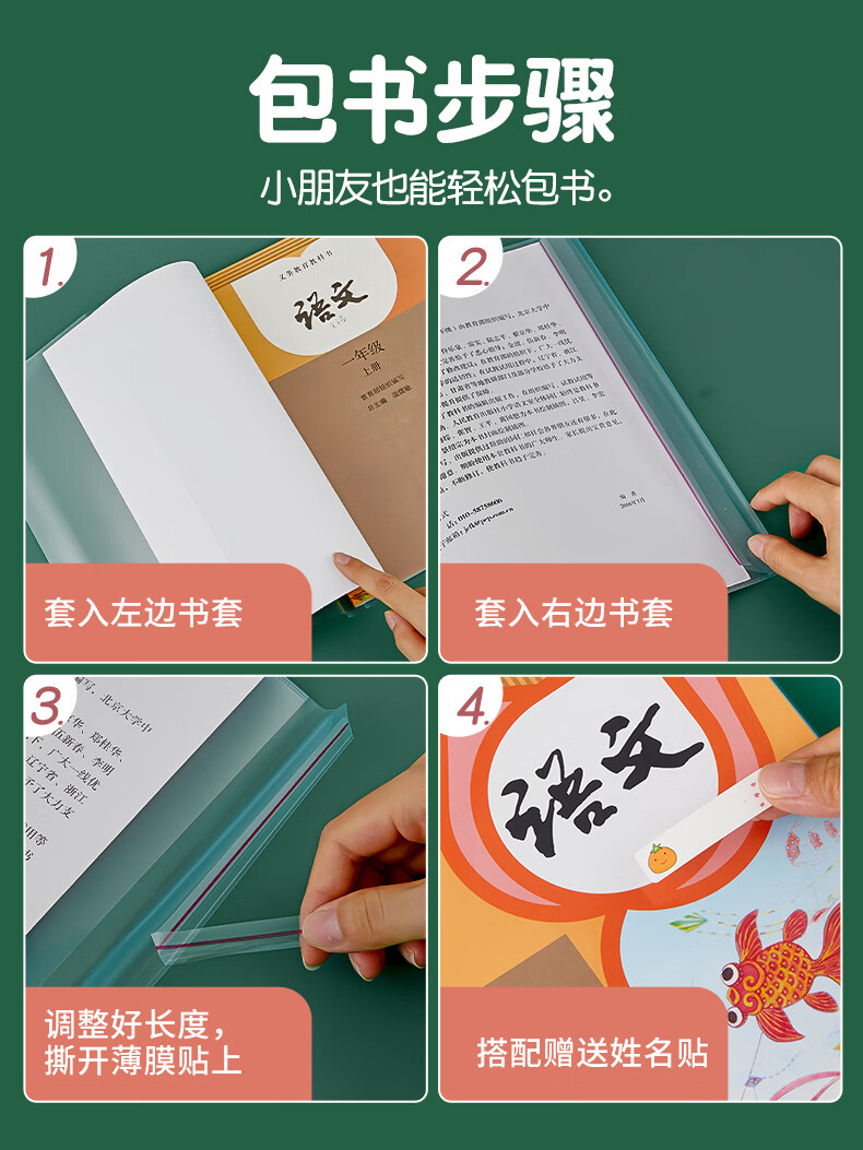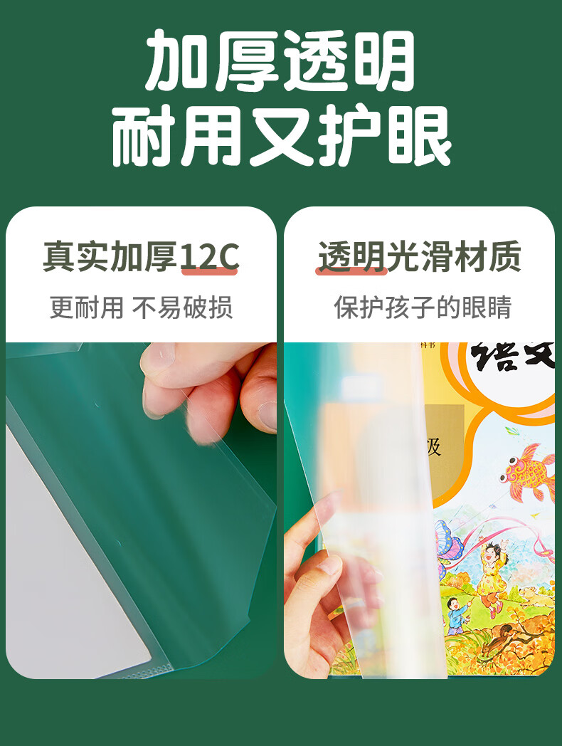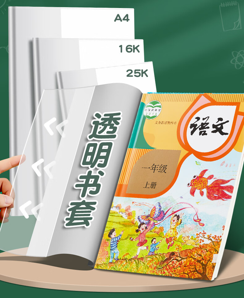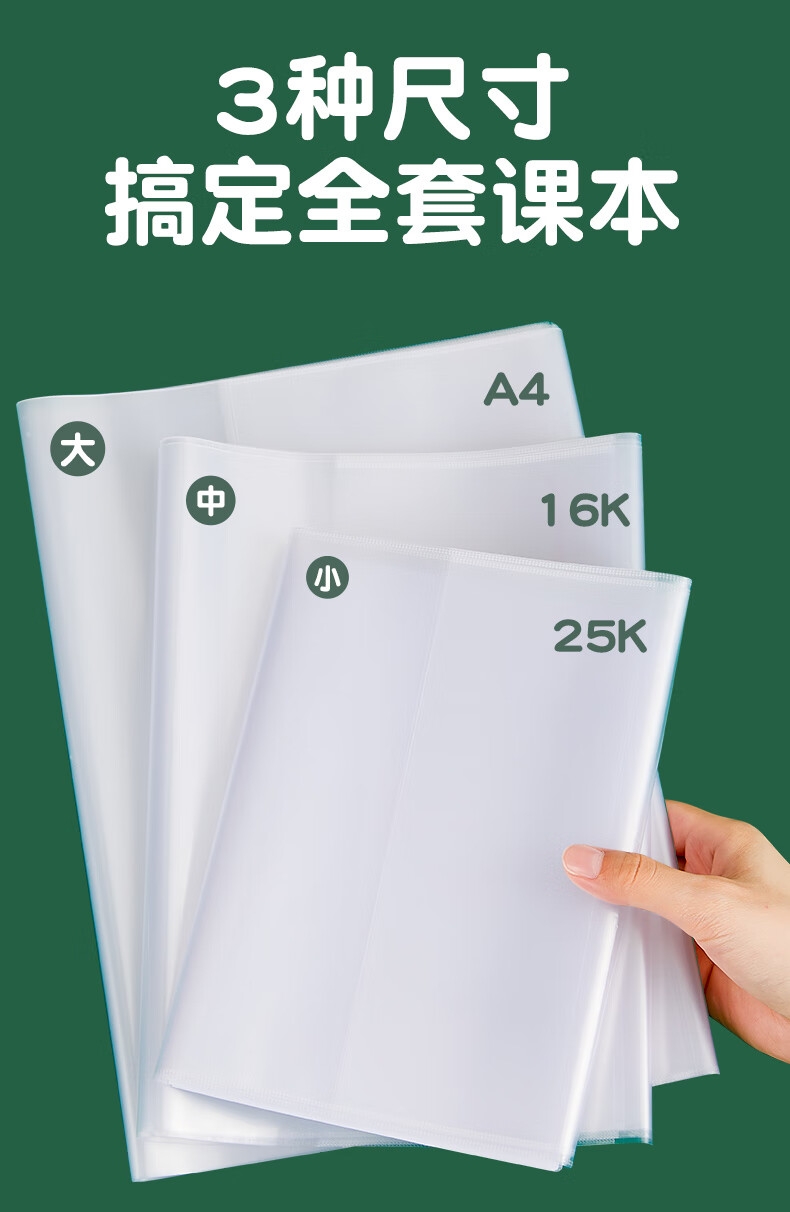 六品堂书皮书套加厚透明小学生课本作业本书皮套A4防水保护膜一年级二三四五年级书本保护套包书皮纸自粘 开学推荐【大10中10小10+30张姓名贴】
