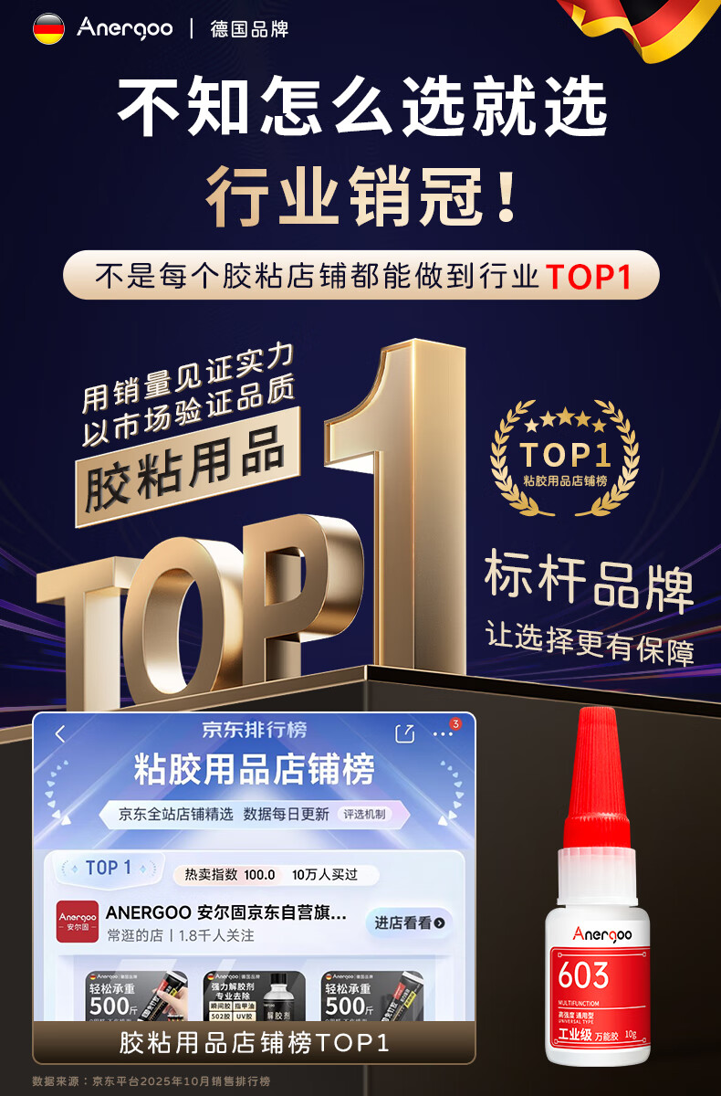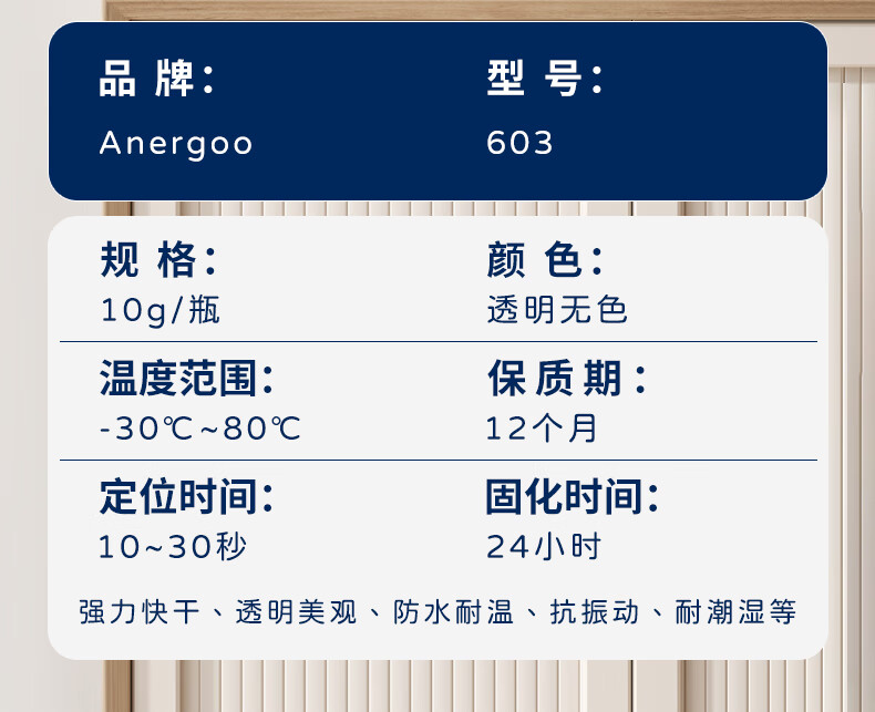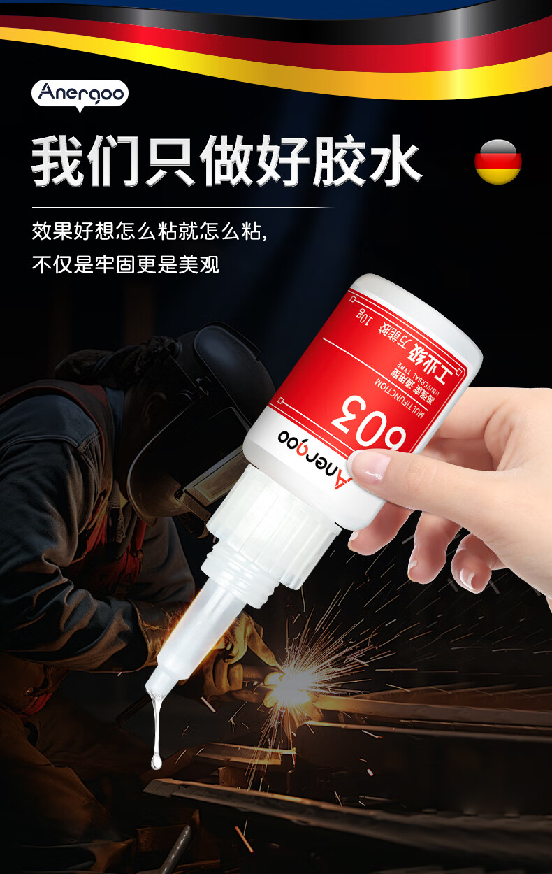 ANERGOO 安尔固603强力万能胶水京东自营粘金属木头陶瓷铁502油性原胶防水电焊胶塑料专用快干粘合剂透明