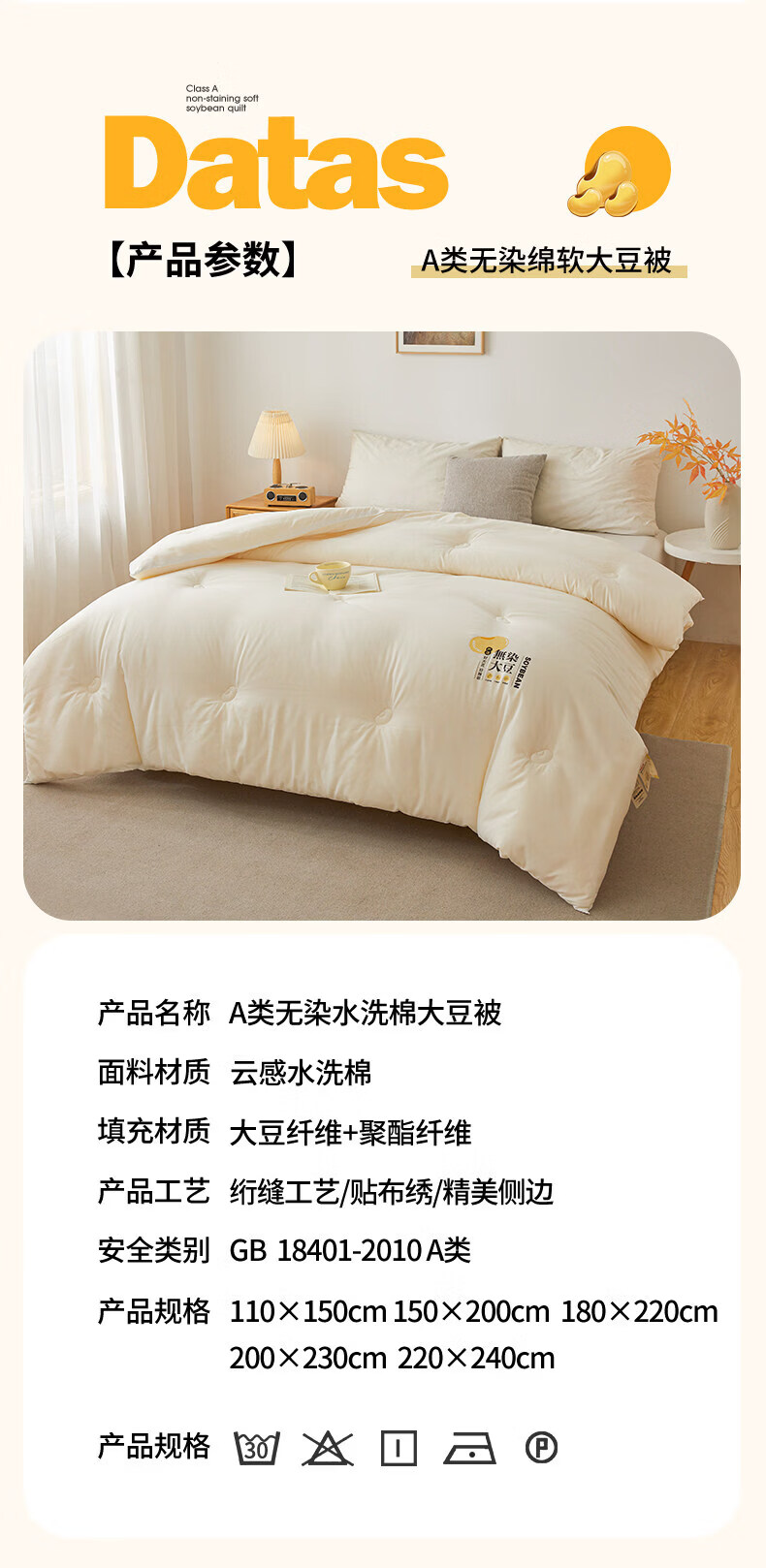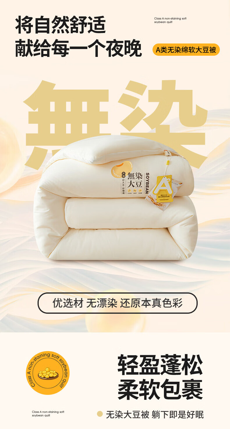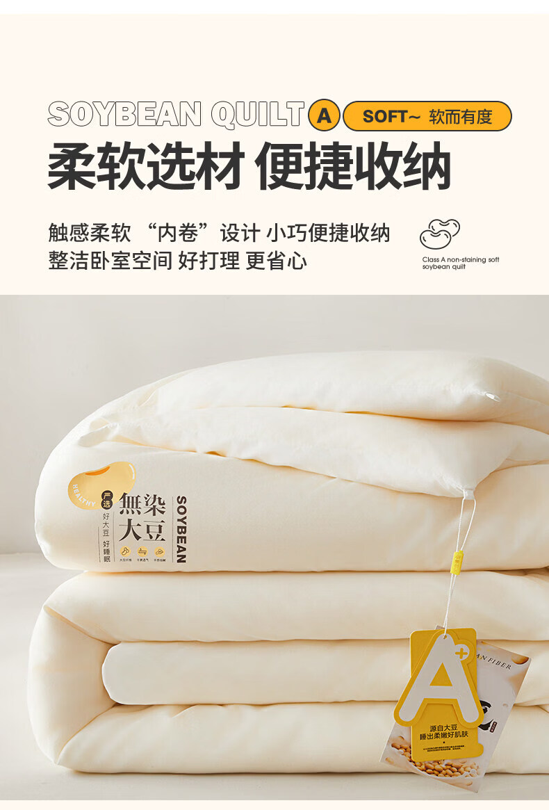 猫人(MiiOW)无染大豆纤维被子冬被加厚保暖被芯家用单人学生宿舍棉被四季通用 無染-奶白【A类裸睡级面料】 150x200cm夏凉被【约2斤适合室温25°C以上】