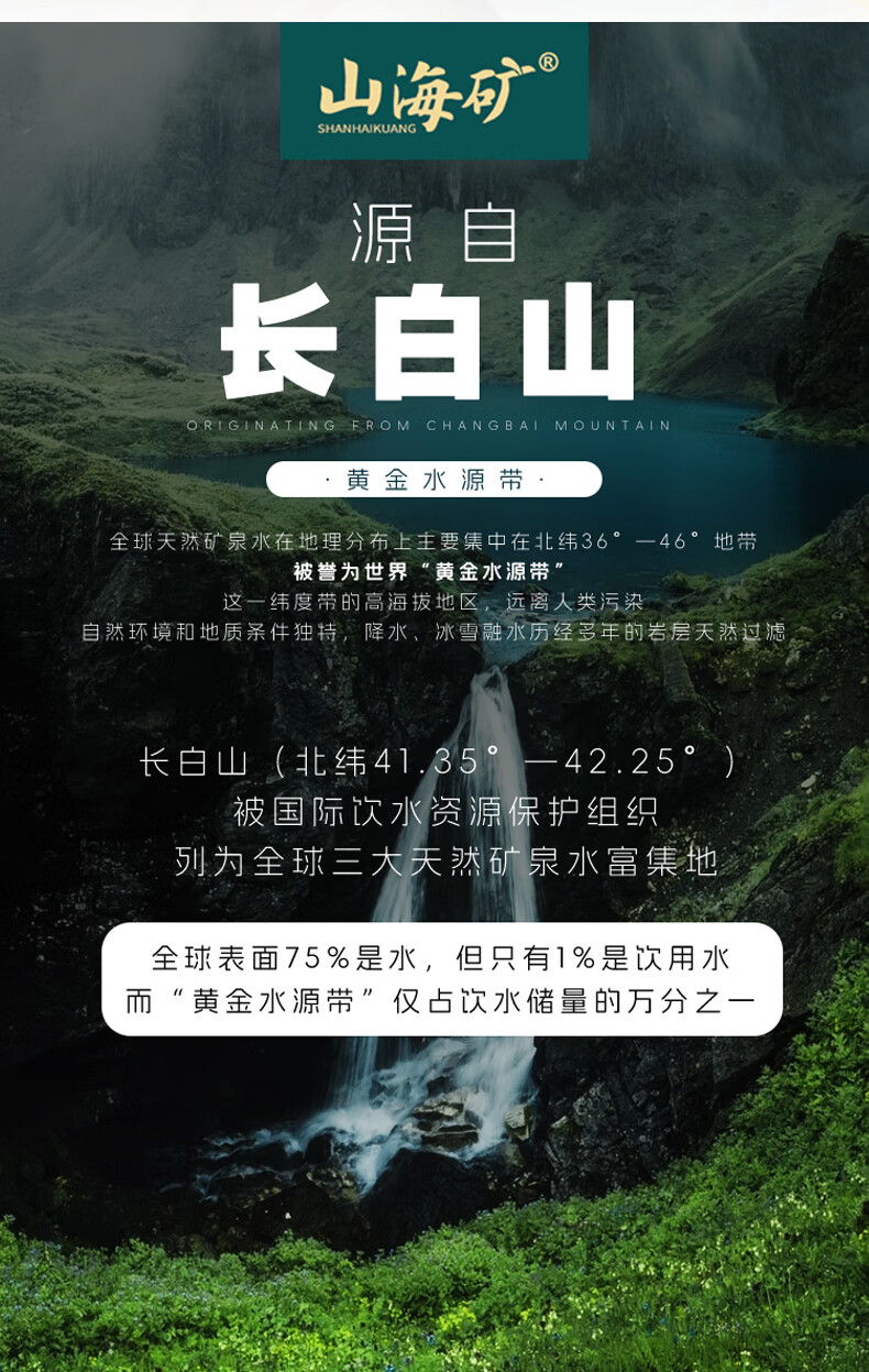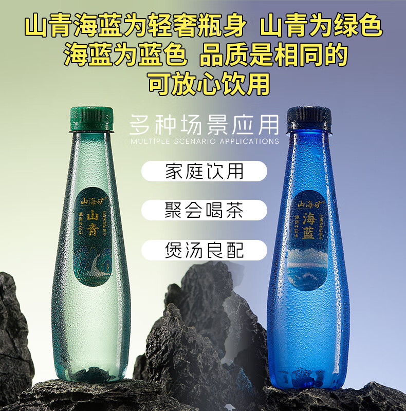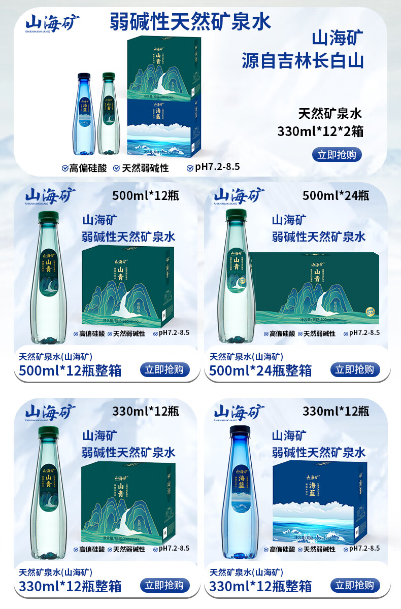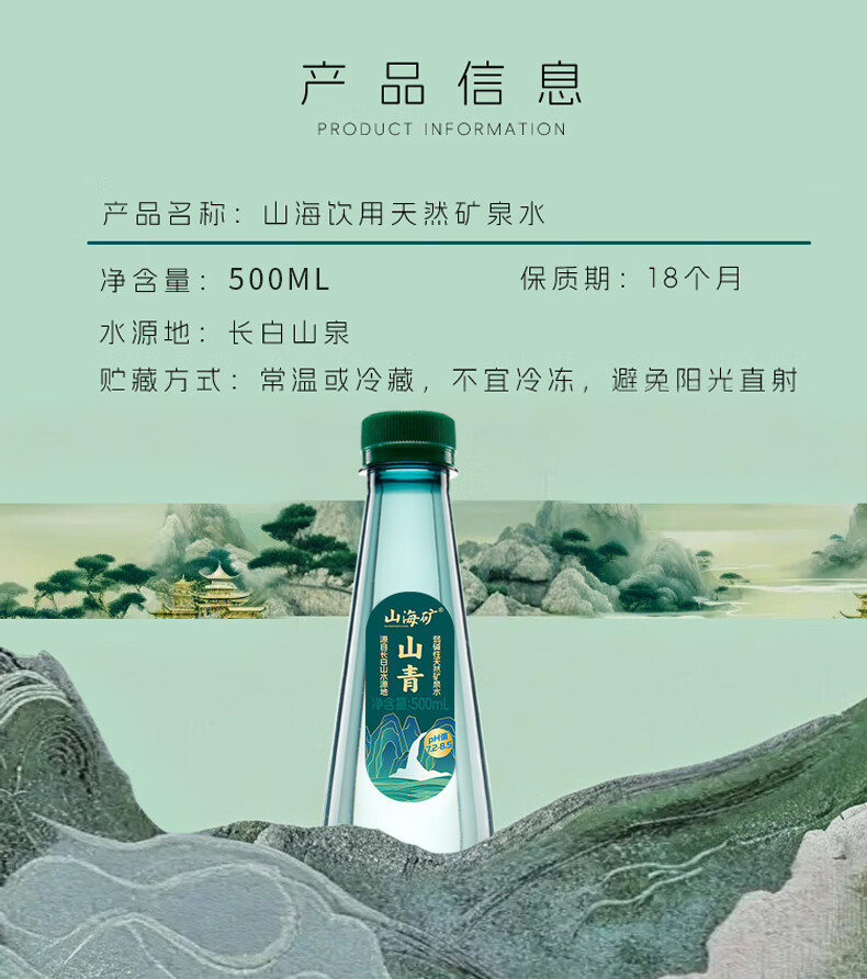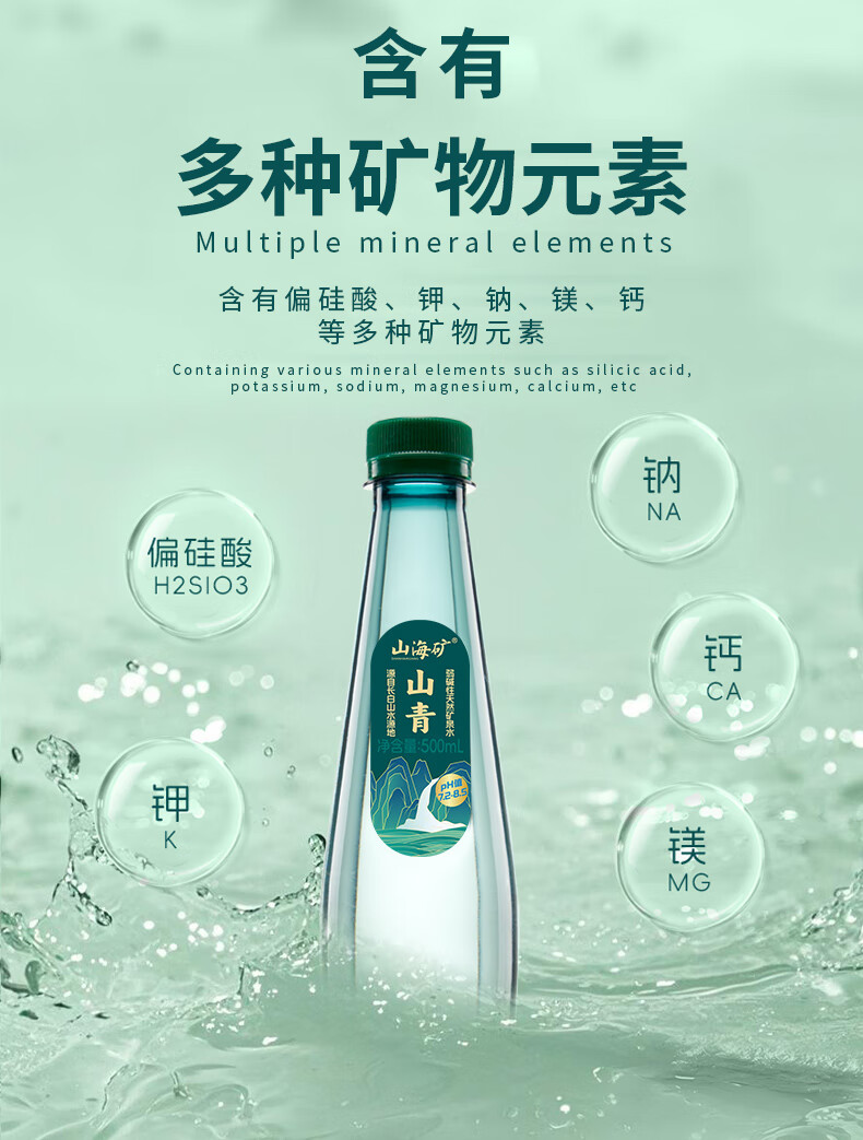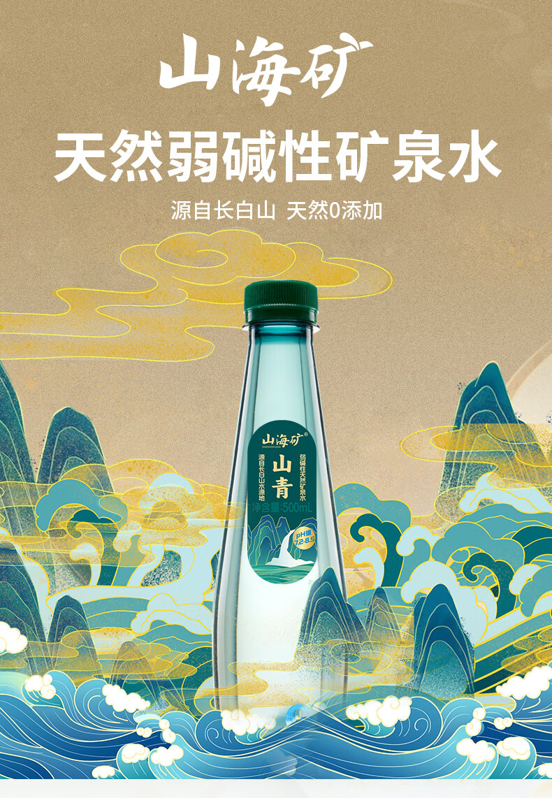山海矿长白山弱碱性天然矿泉水低氘偏硅酸健康饮用水山青500ml*12瓶整箱