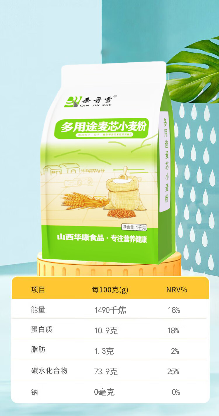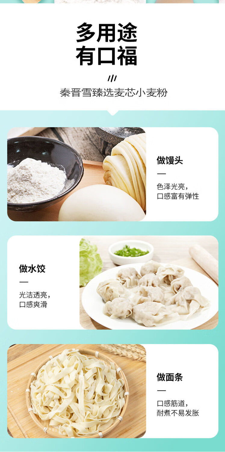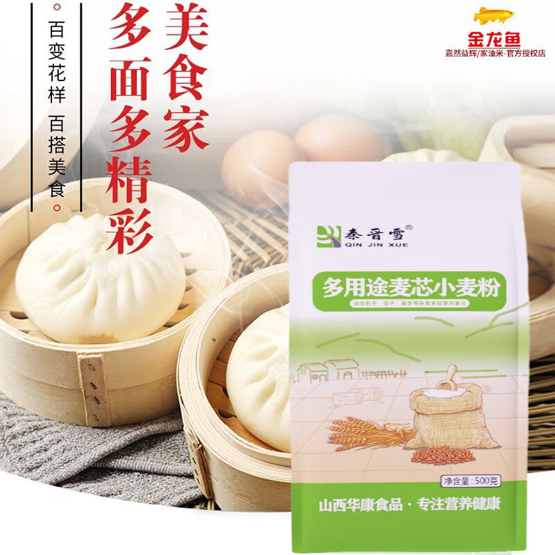 秦晋雪麦芯粉小麦面粉馒头面条包子中筋家用通用粉多用途中筋面粉 多用途小麦粉500g*1袋