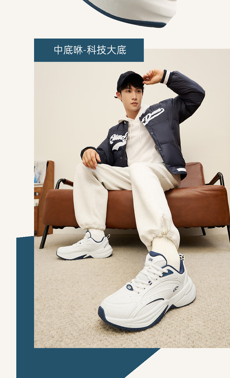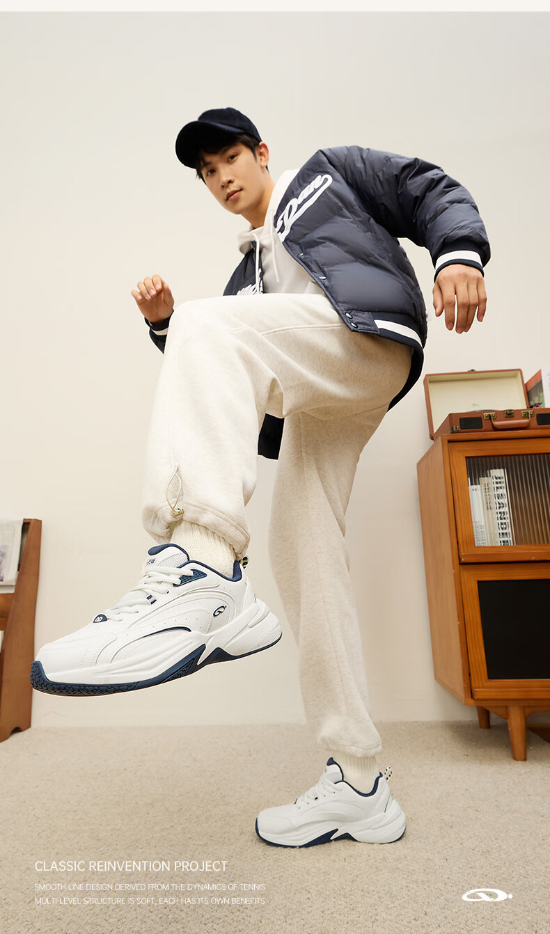 乔丹源生运动鞋男鞋复古老爹鞋革面保暖网球鞋休闲鞋跑步鞋子