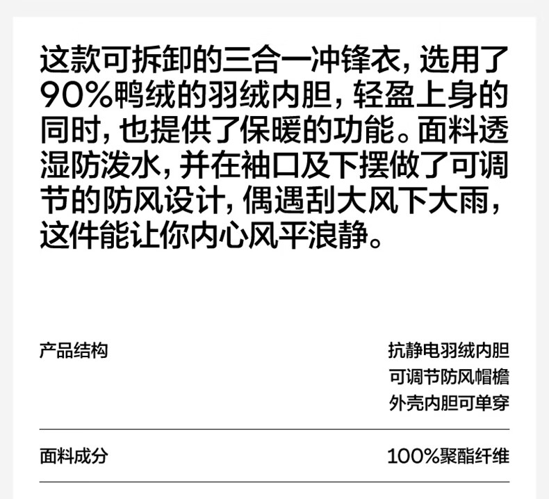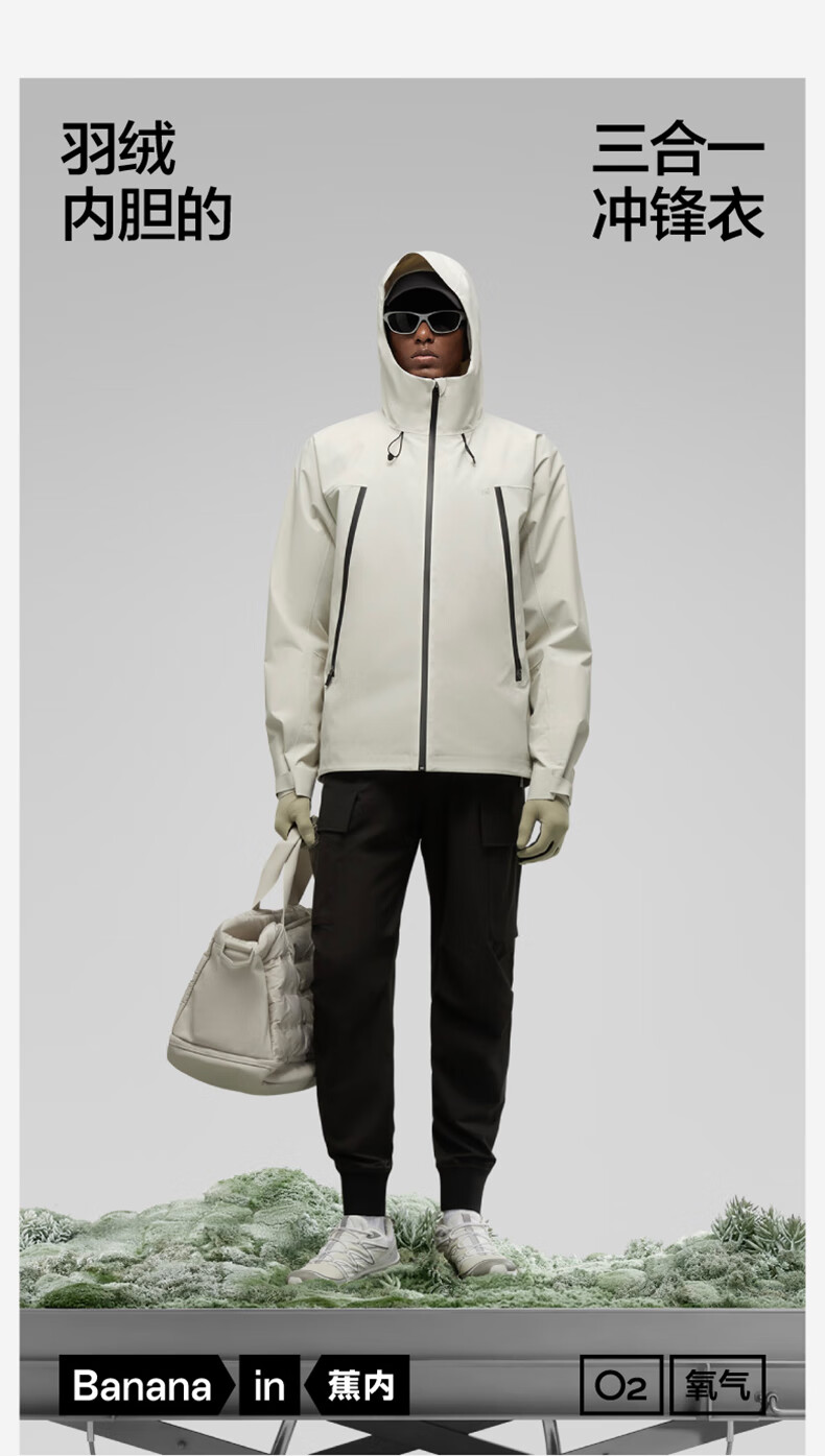 蕉内氧气502Proof Pro男士羽绒三合一冲锋衣24秋冬新款外套夹克男装