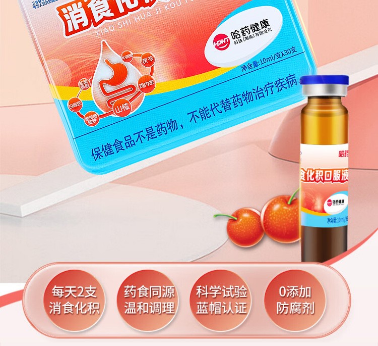 哈药 消食化积口服液 山楂鸡内金 葡萄糖酸锌 儿童促进消化少年 10ml*30支 哈药消食化积口服液30支一盒