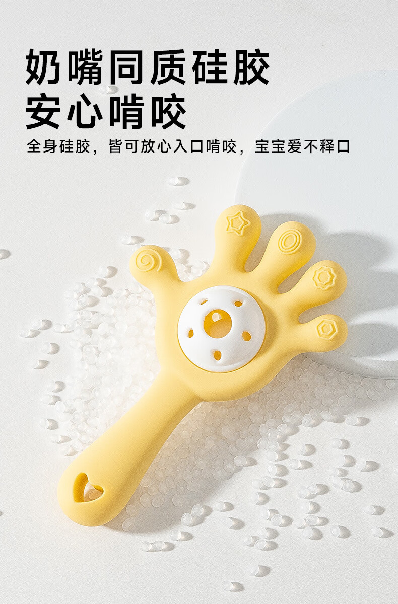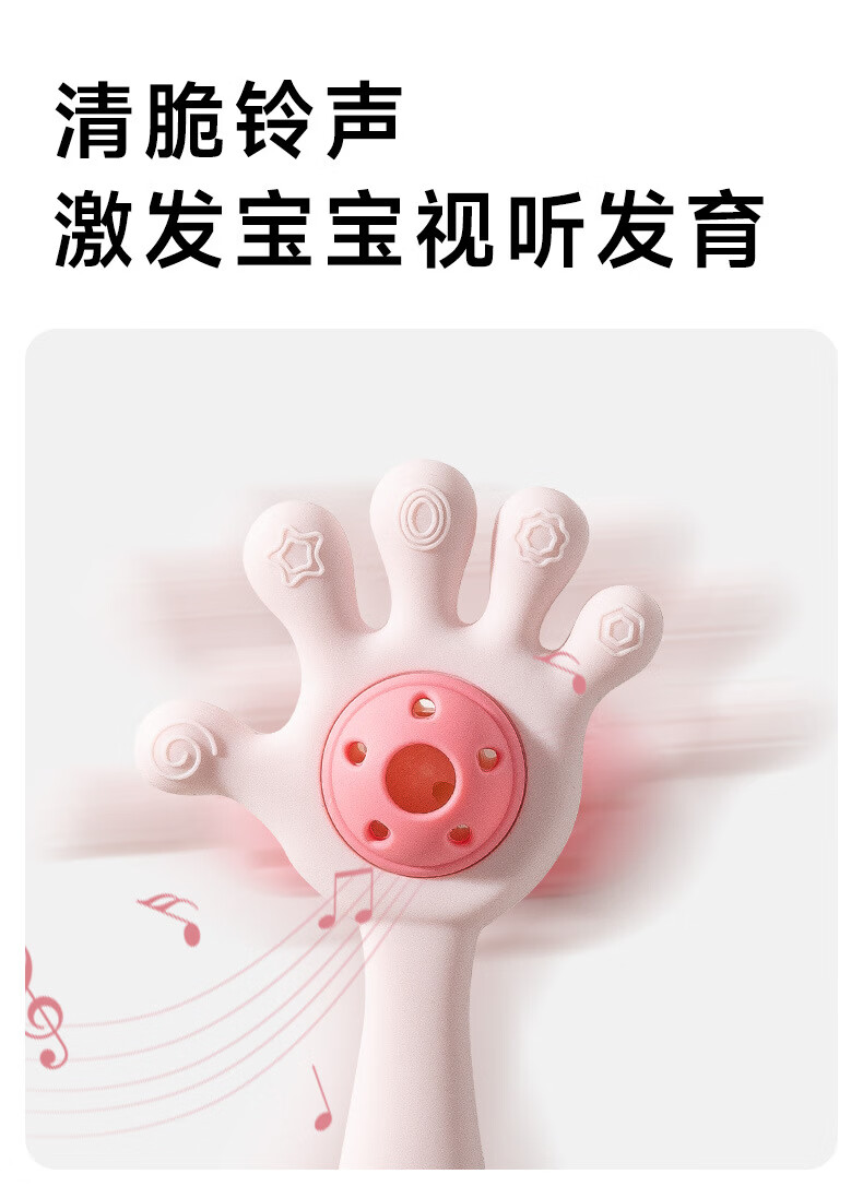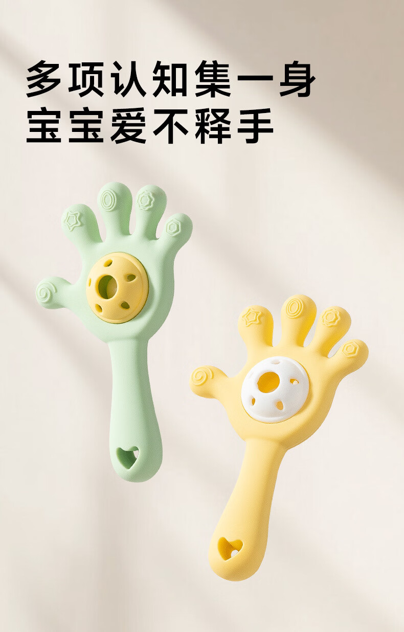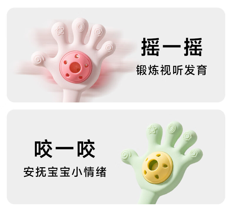 彩虹房子婴儿手掌摇铃玩具0-1岁抓握训练早教 小蘑菇牙胶纳米银+收纳盒