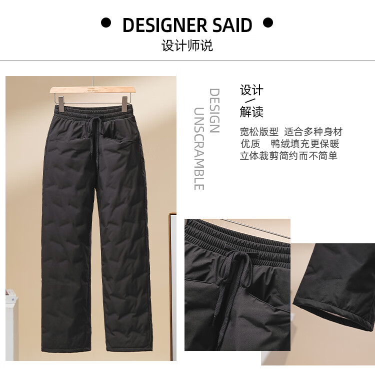 雪中飞2025新款秋冬女裤内穿羽绒裤宽松大码加厚冬季加厚保暖棉裤716 黑色 S 80-95斤