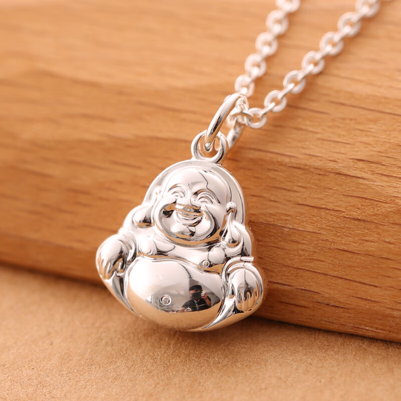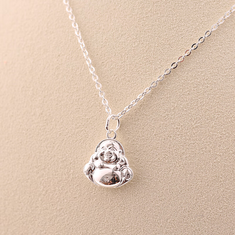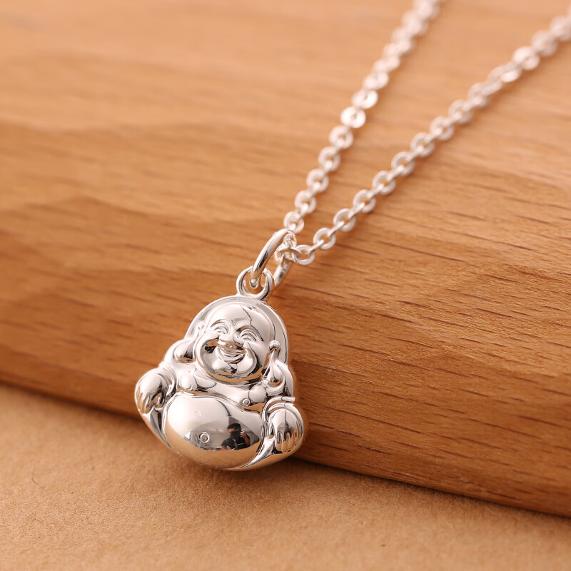 老银匠s999纯银项链吊坠女精致小佛公弥勒佛大肚佛笑脸佛牌小众实心足银 单吊坠无链