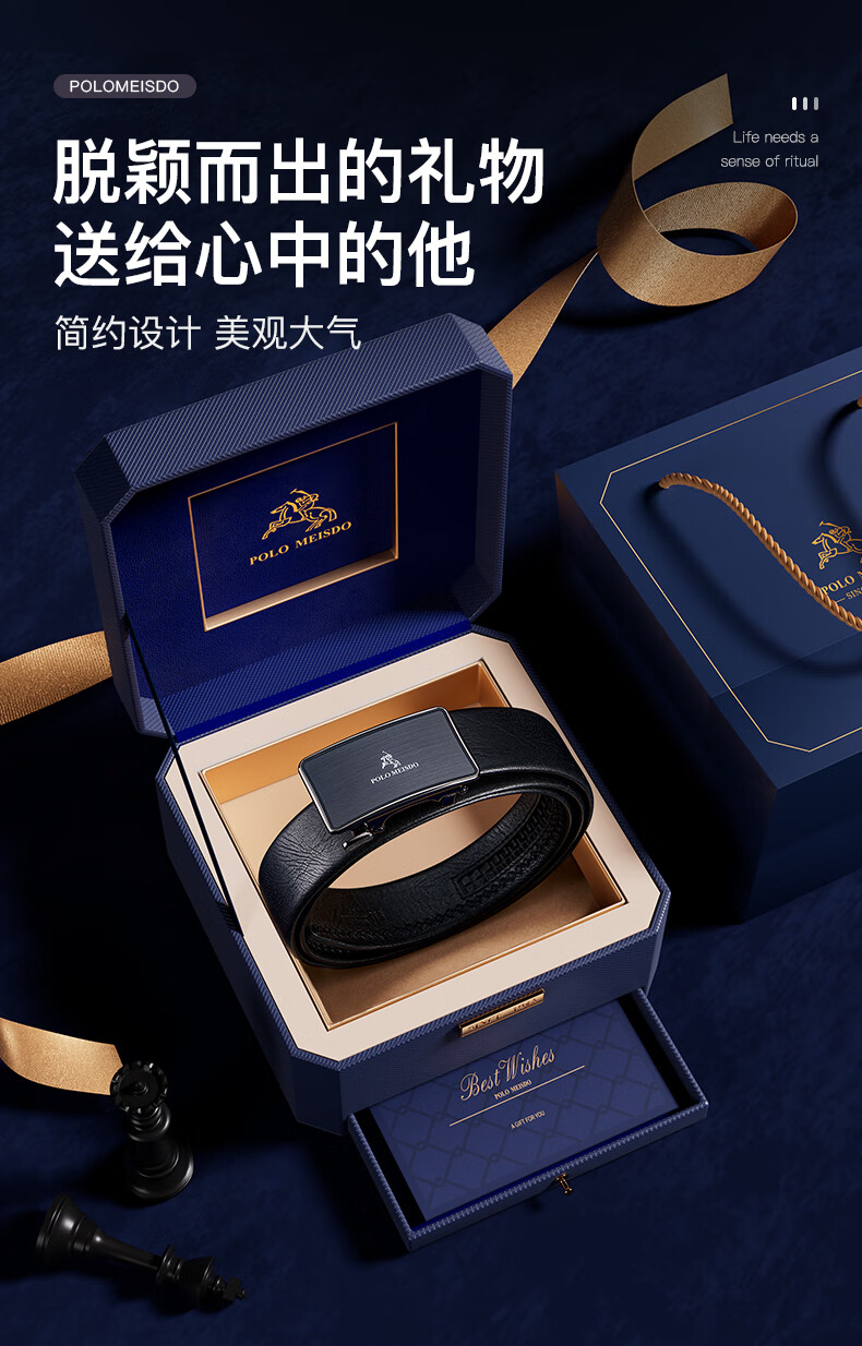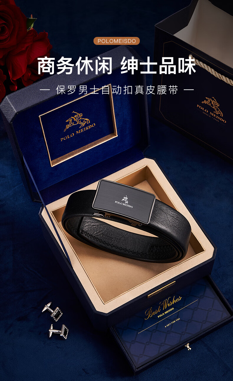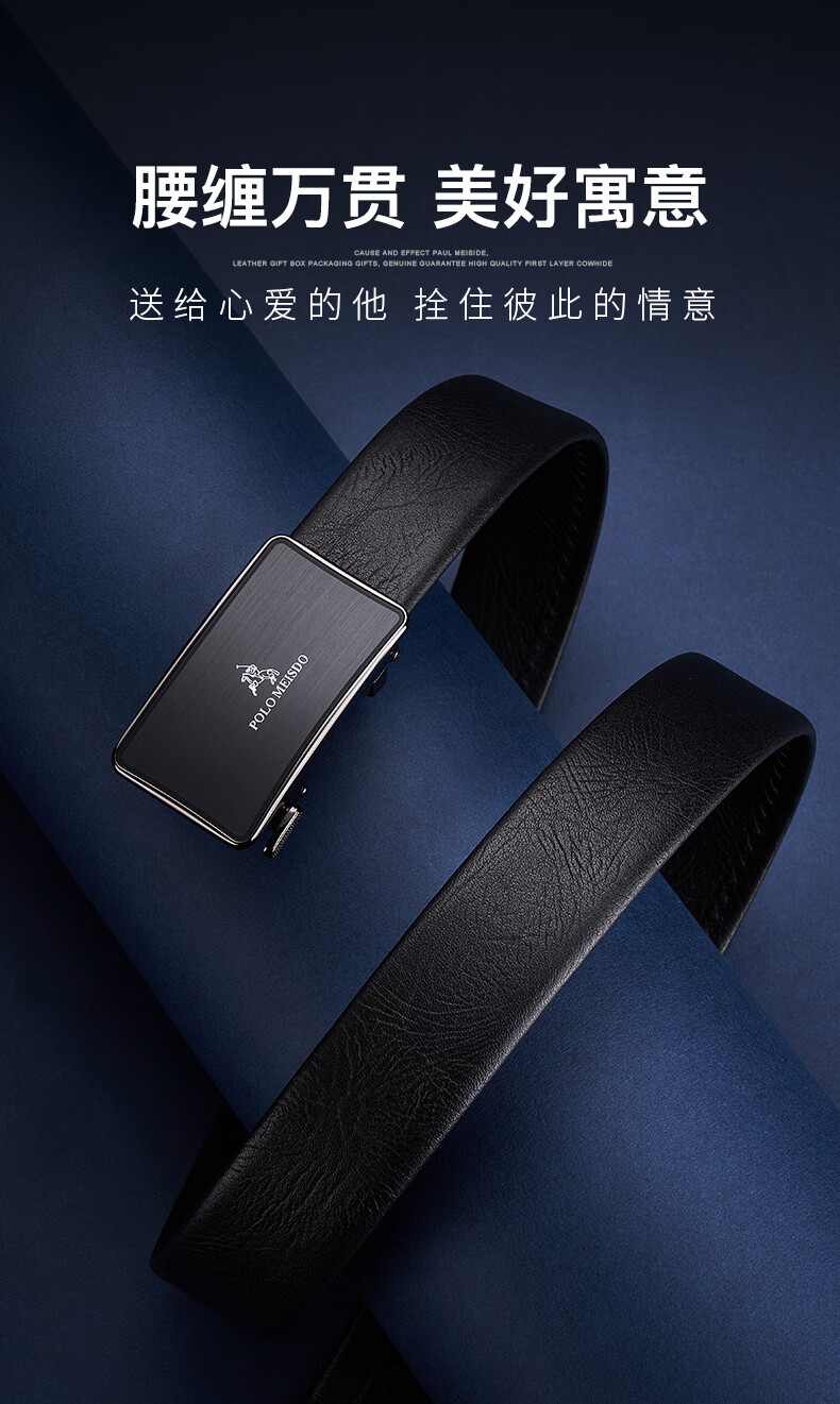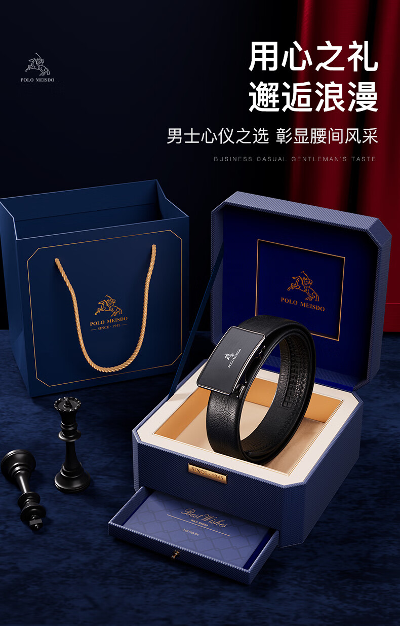 保罗美思得男士皮带男真皮自动扣腰带轻奢牛皮裤带新年礼物送男友老公父亲 PL600667【蓝木盒】 120cm 其他尺码联系备注