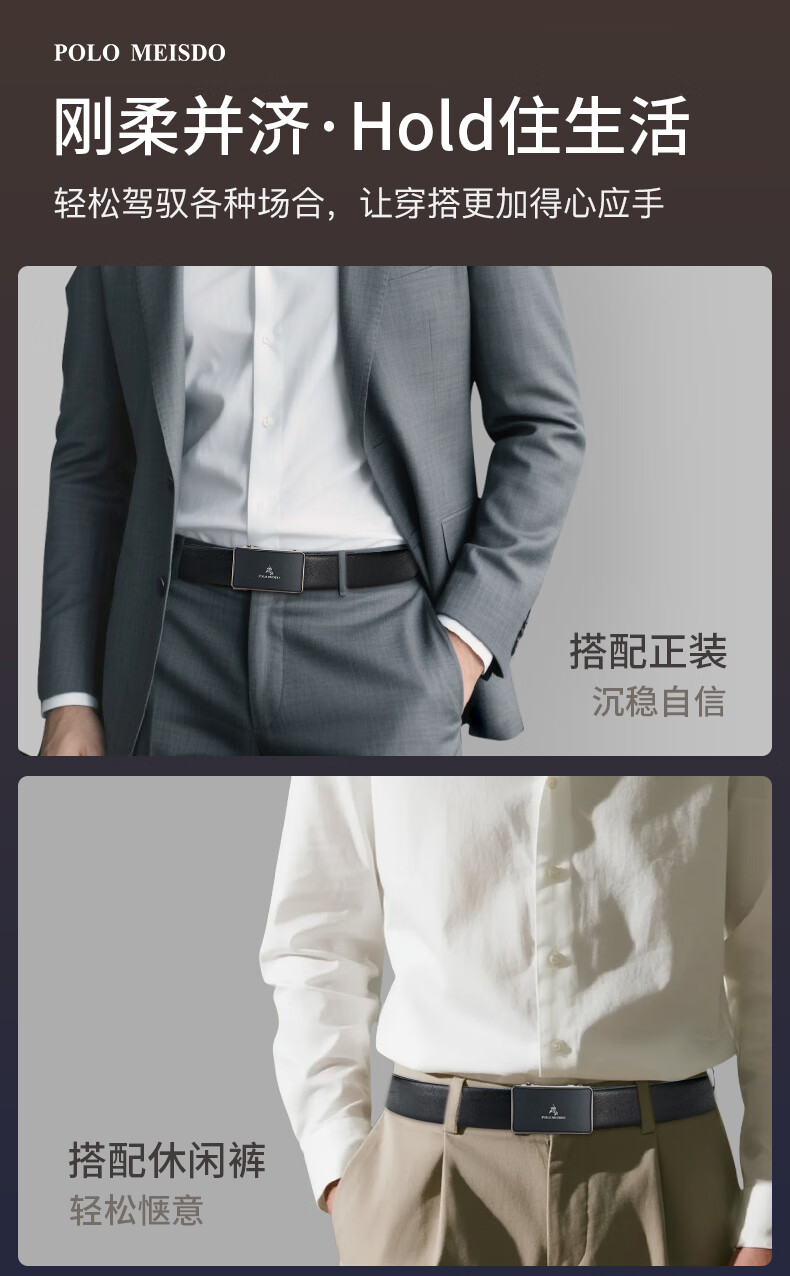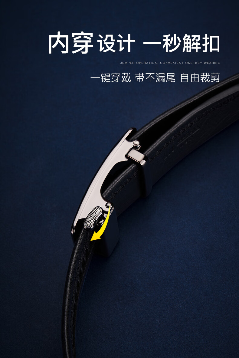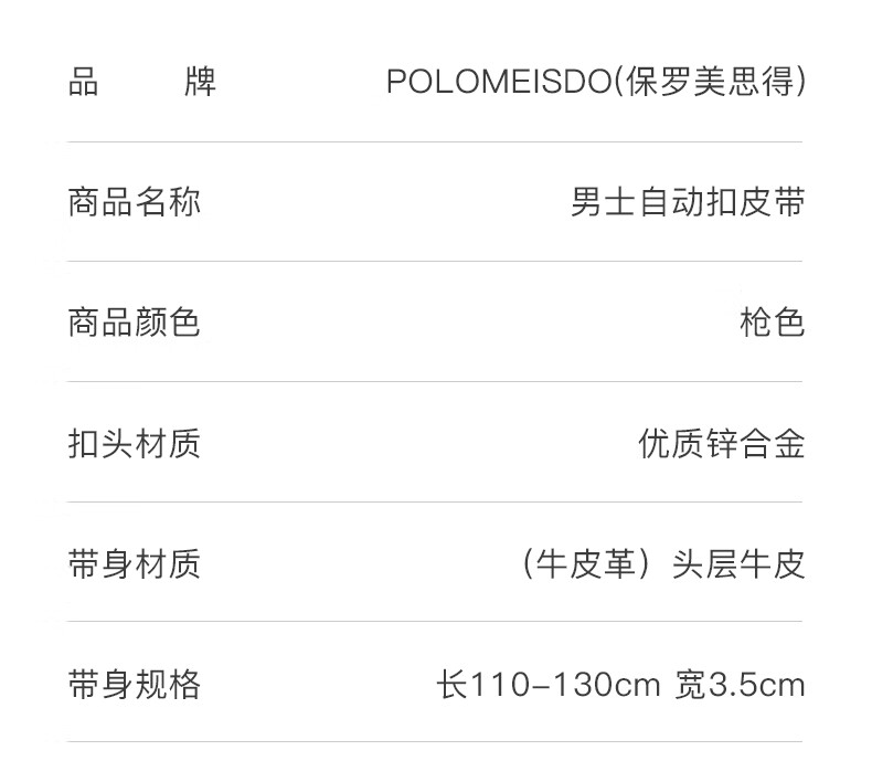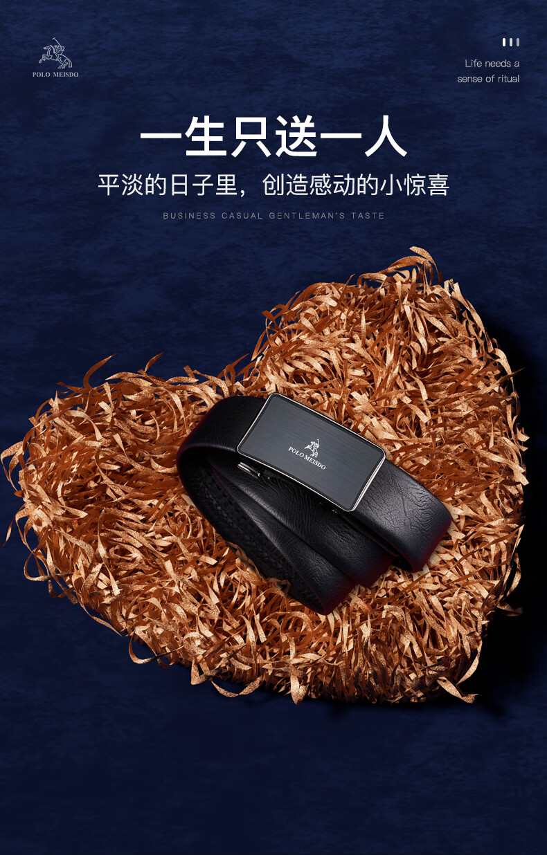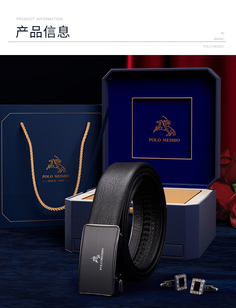保罗美思得男士皮带男真皮自动扣腰带轻奢牛皮裤带新年礼物送男友老公父亲 PL600667【蓝木盒】 120cm 其他尺码联系备注