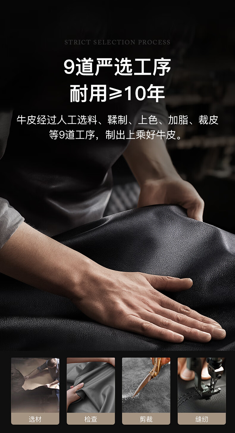 罗梅达尔(Rommedal)轻奢商务公文包男高端男士牛皮商务手提包真皮大容量多功能电脑包 黑色大号(黑线)长44*高29*厚10cm 头层牛皮
