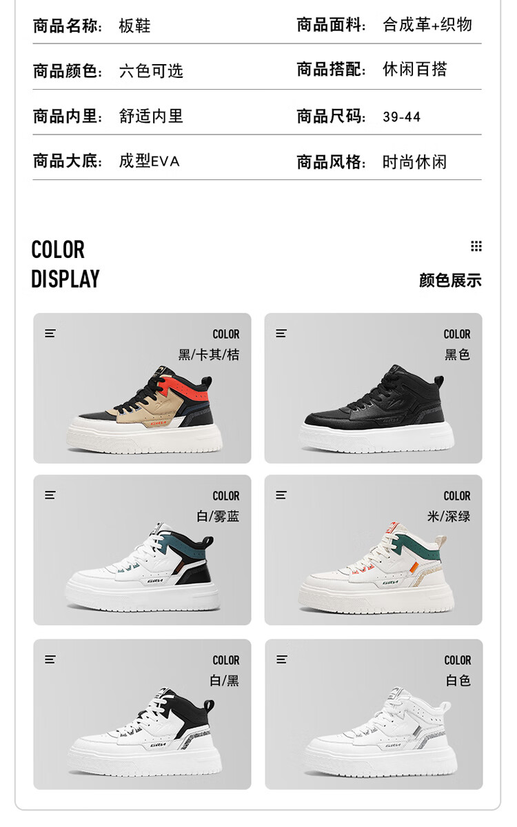 贵人鸟【品牌断码清仓】跑步鞋男鞋运动鞋板鞋休闲鞋 E496619白/黑 39