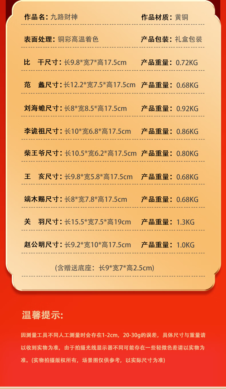 箐铜记《九路财神》财神爷铜摆件家居客厅玄关家用供奉乔迁开业新年礼物 九路财神-柴王爷 新中式