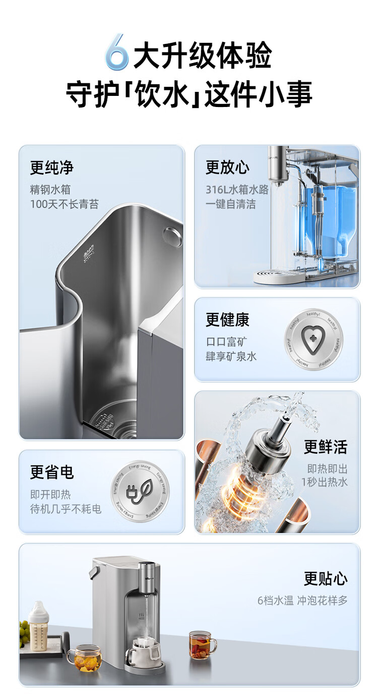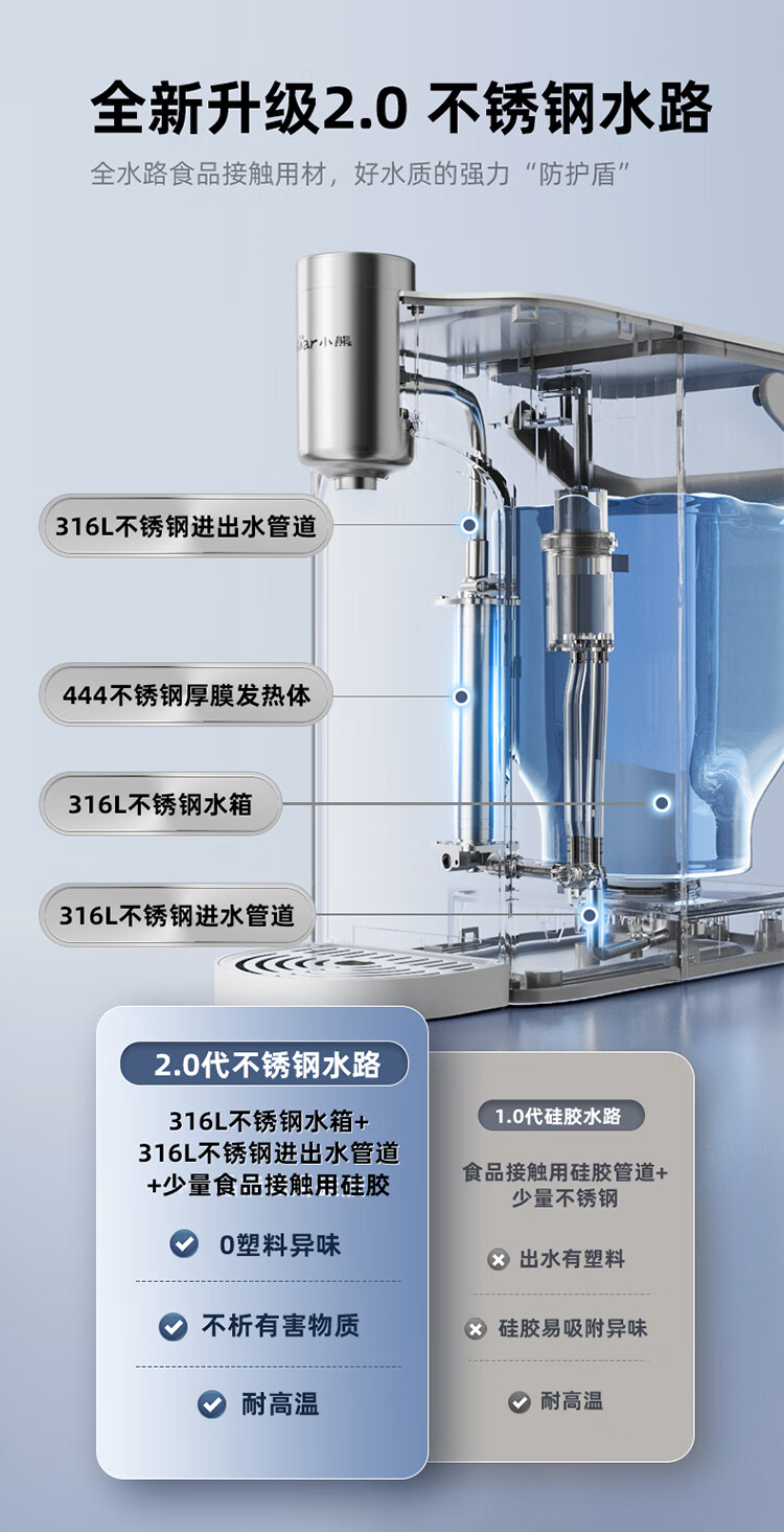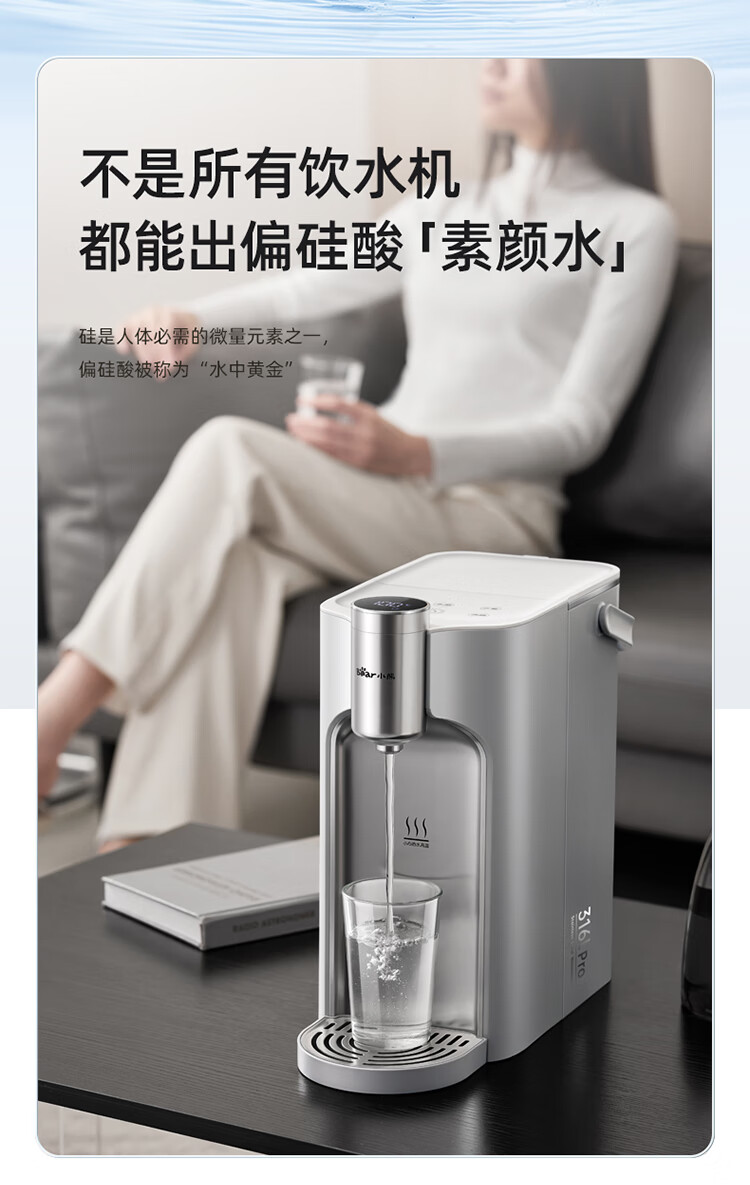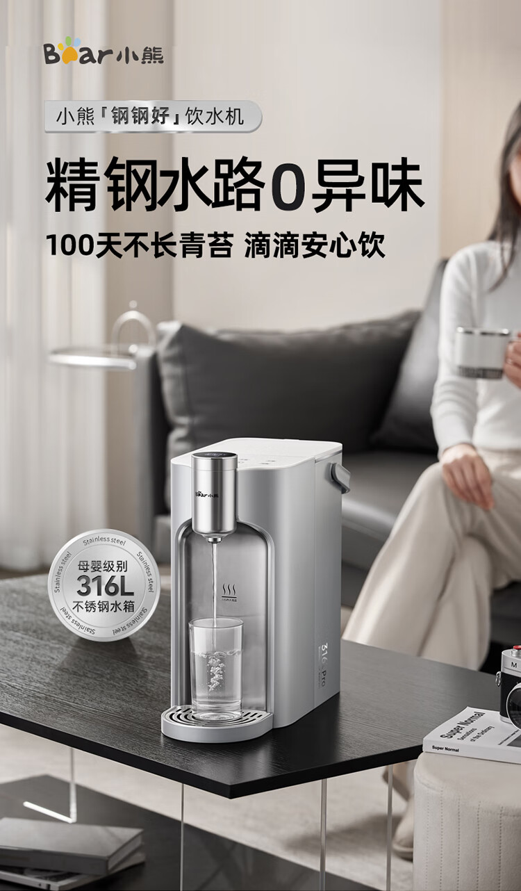 小熊(Bear)即热式饮水机【钢钢好2.0】家用直饮机 桌面台式饮水器不锈钢水箱热水机3LYSJ-E40T8-P02 年会礼物