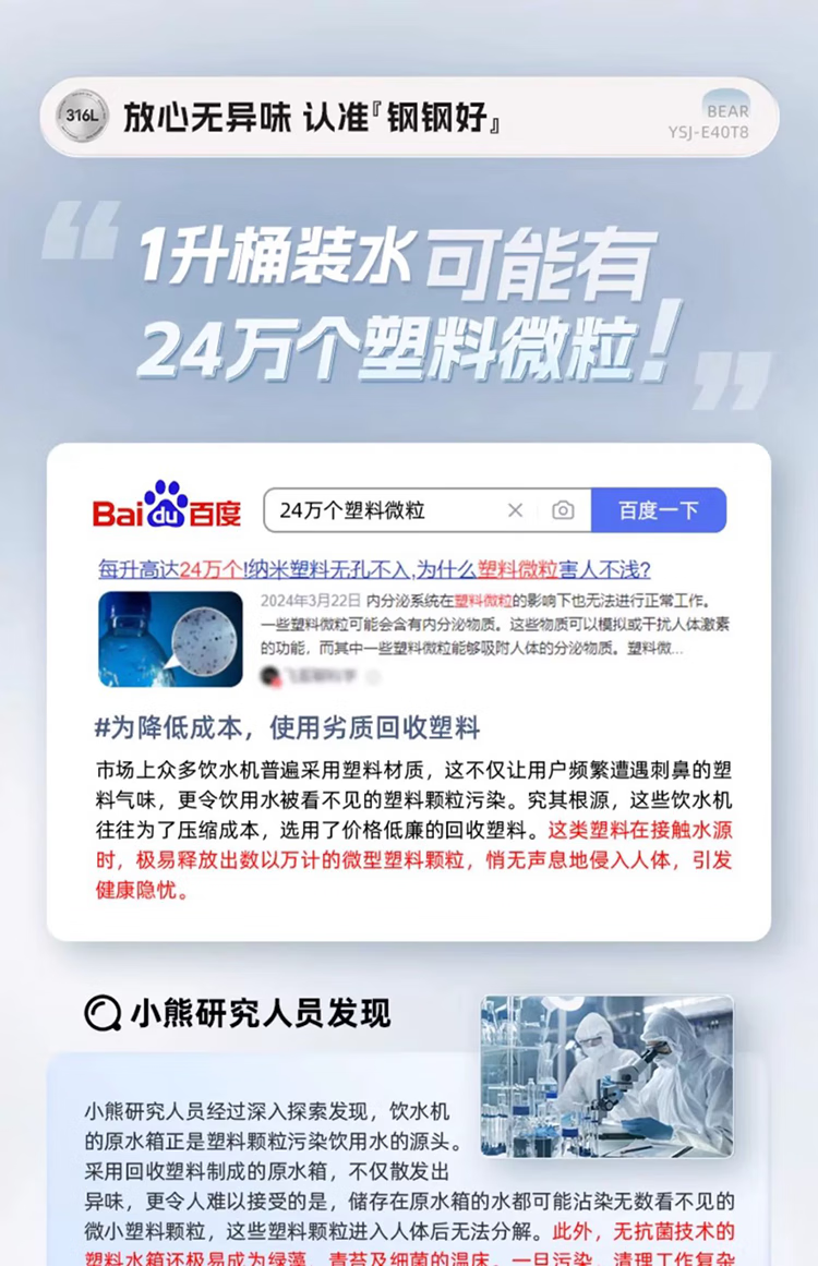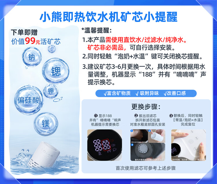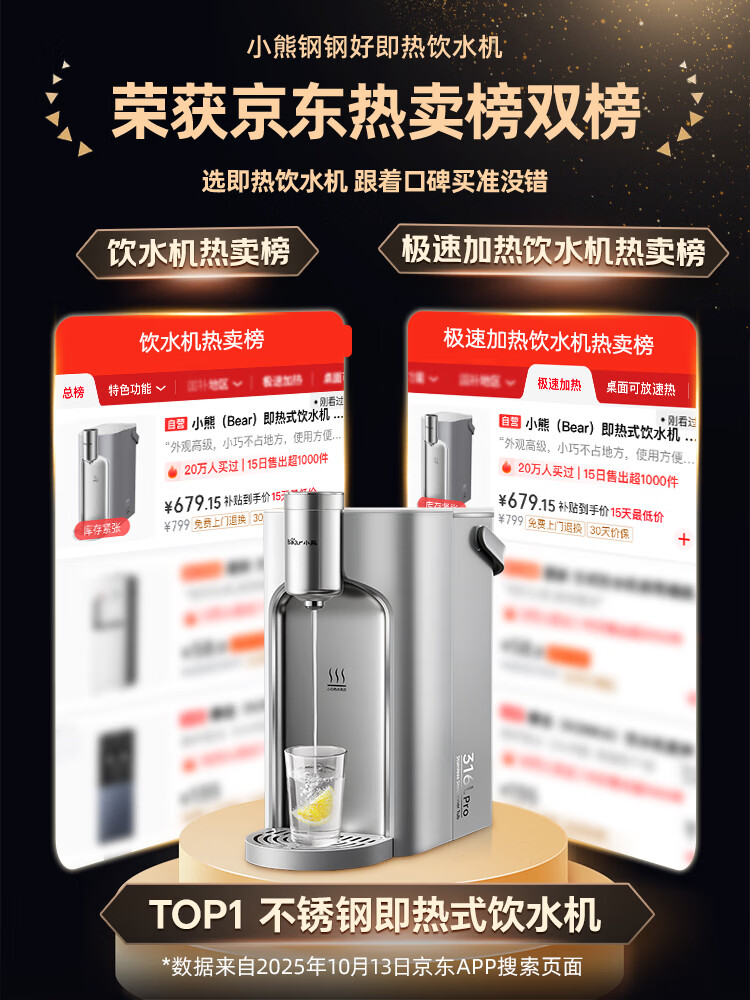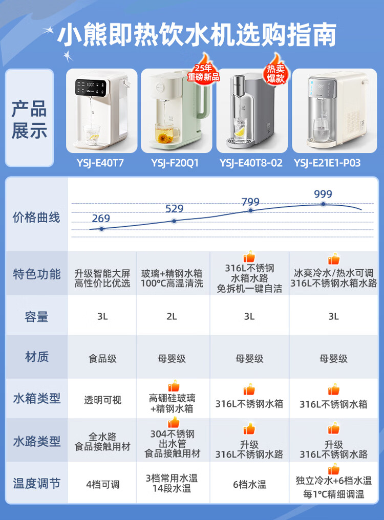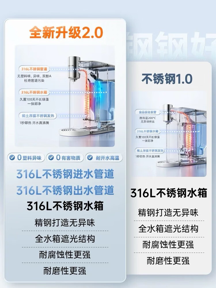 小熊(Bear)即热式饮水机【钢钢好2.0】家用直饮机 桌面台式饮水器不锈钢水箱热水机3LYSJ-E40T8-P02 年会礼物