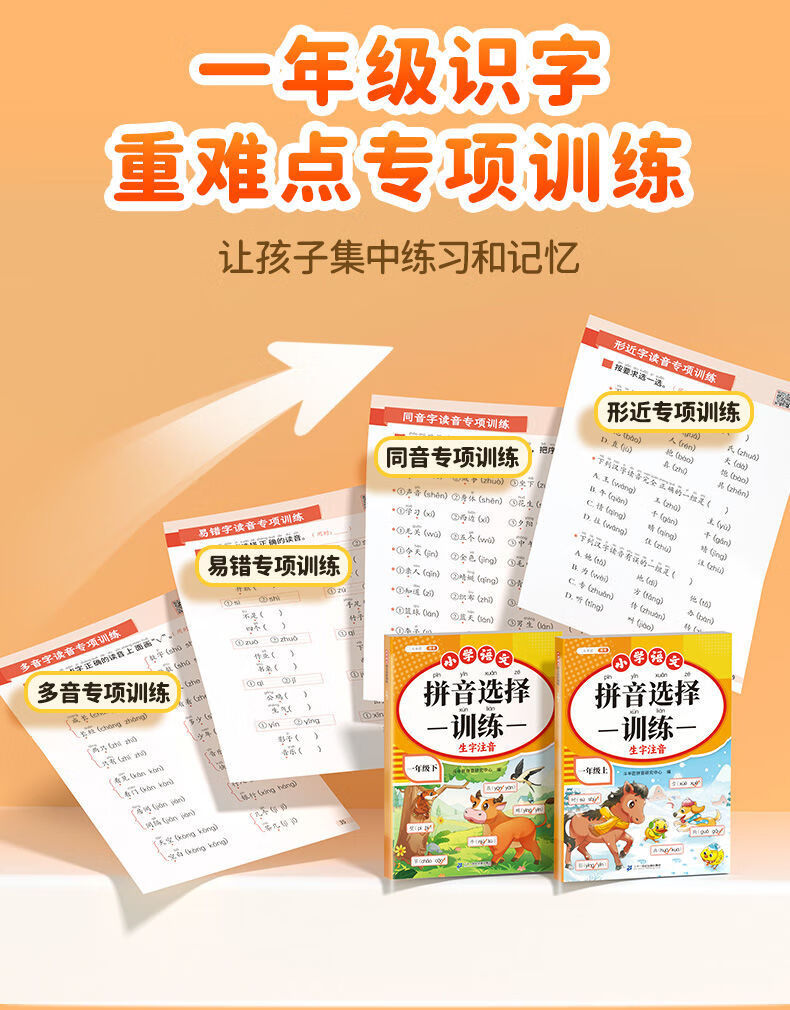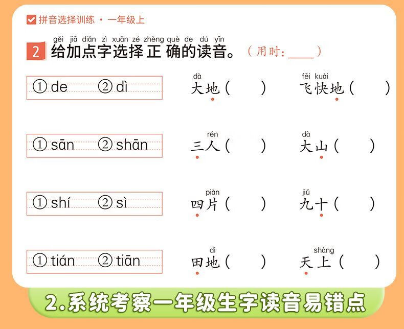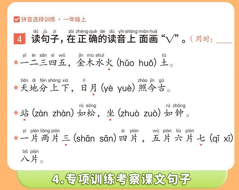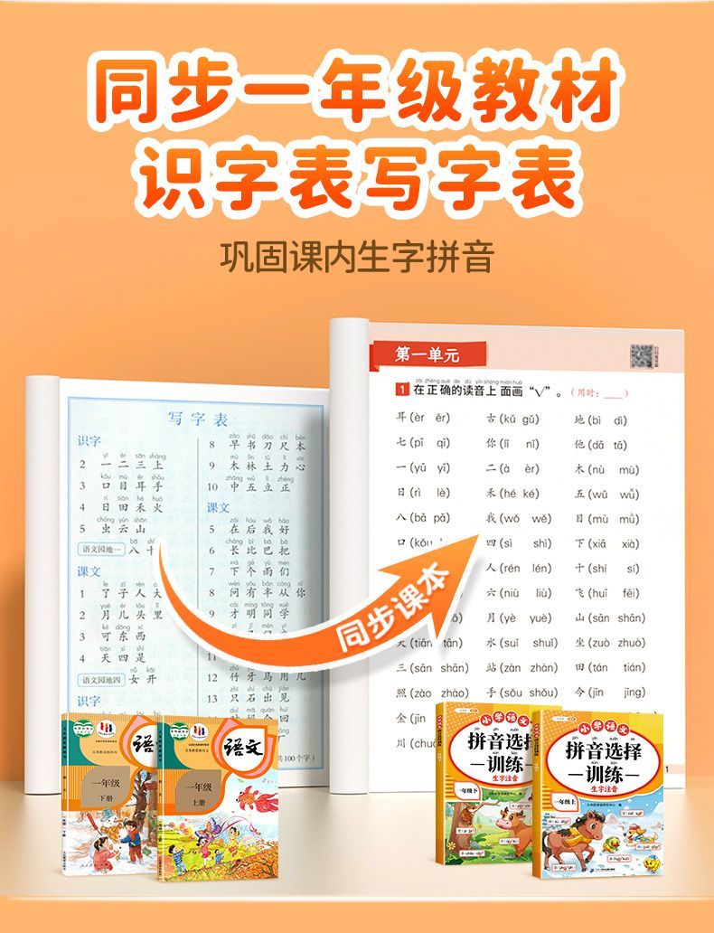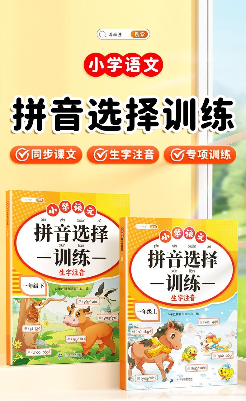 【斗半匠】一年级拼音专项练习题册小学语文拼音选择训练1年级上册下册同步课本教材生字注音看拼音写词语拼音拼读专项训练 一年级上册 拼音选择训练