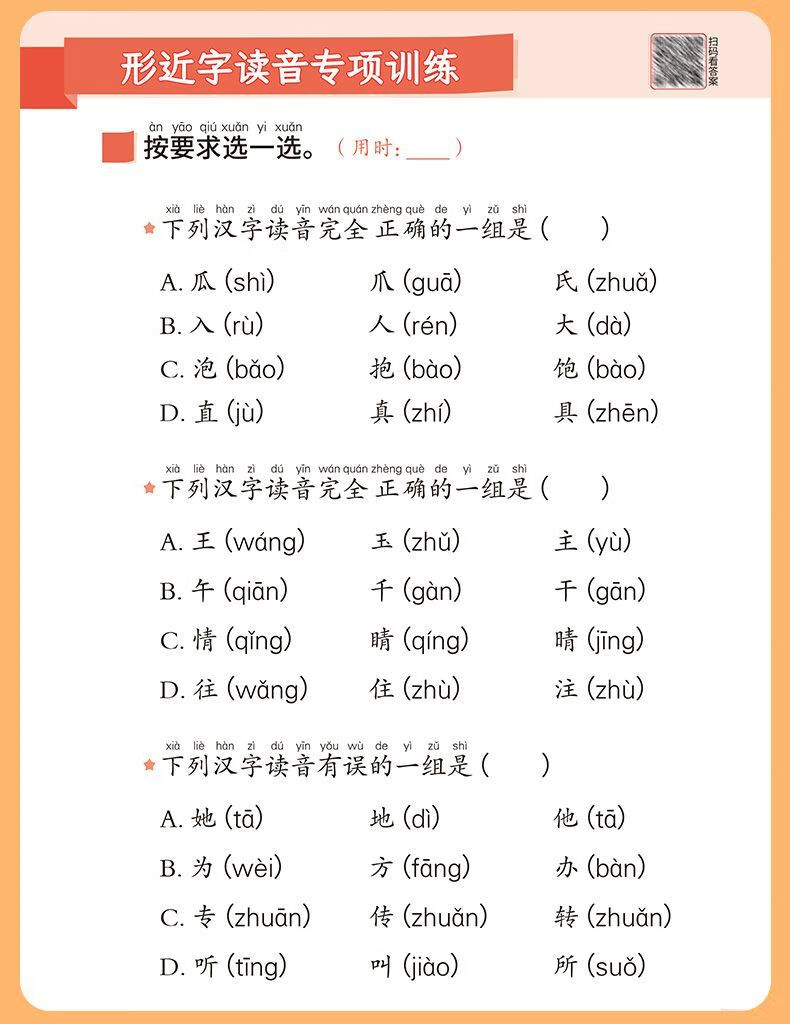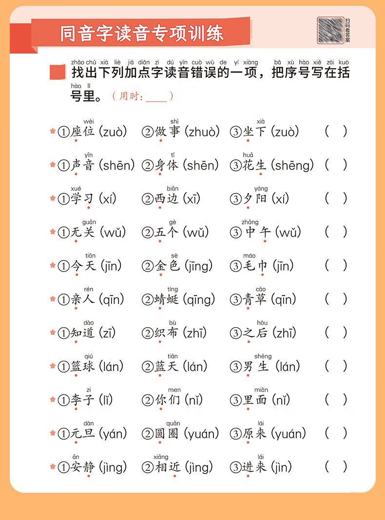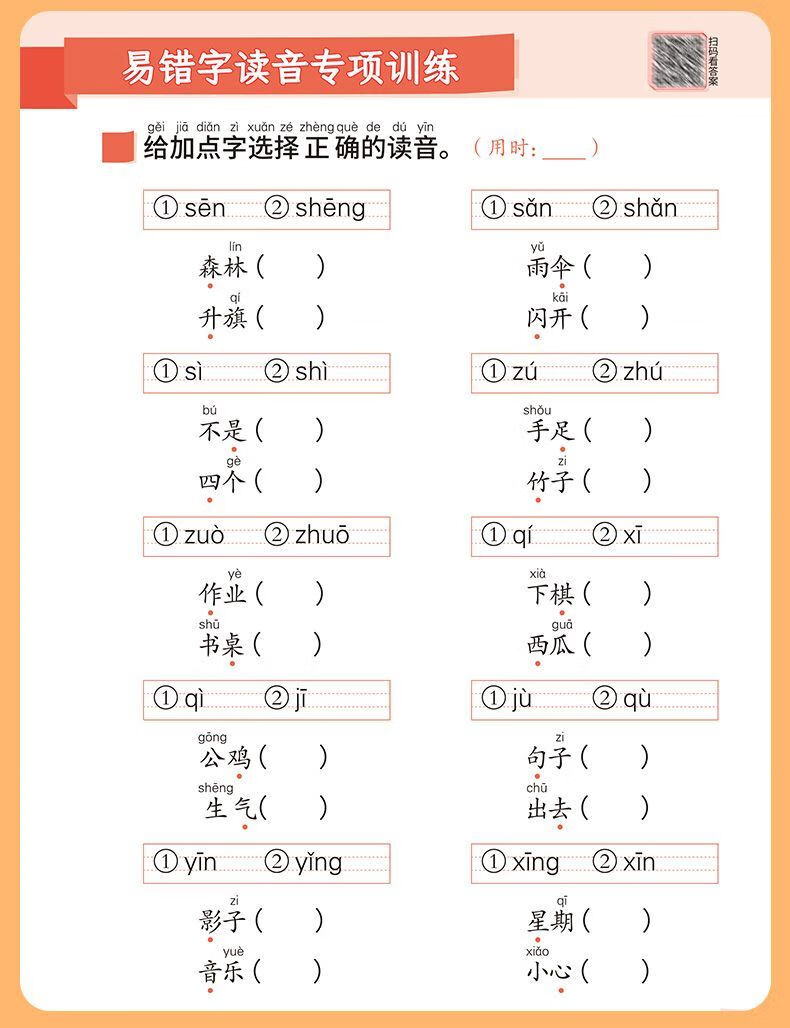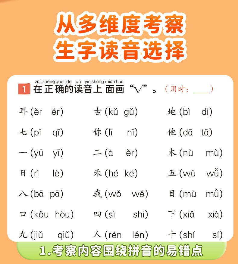 【斗半匠】一年级拼音专项练习题册小学语文拼音选择训练1年级上册下册同步课本教材生字注音看拼音写词语拼音拼读专项训练 一年级上册 拼音选择训练