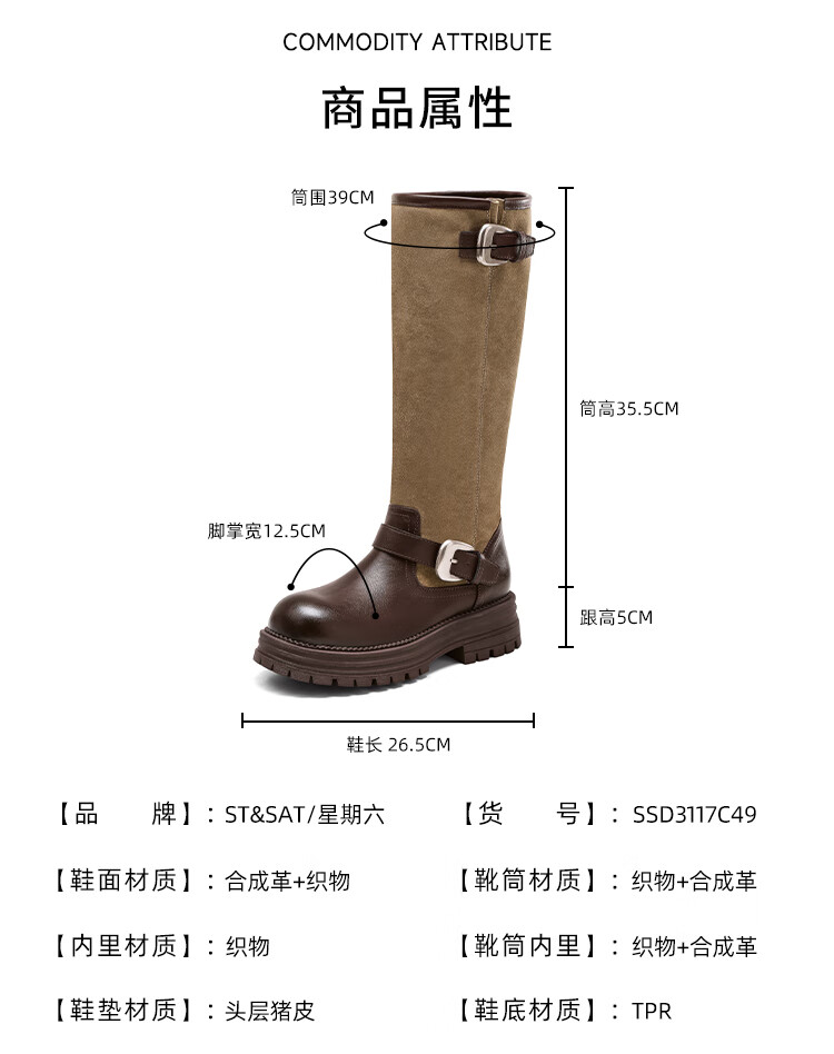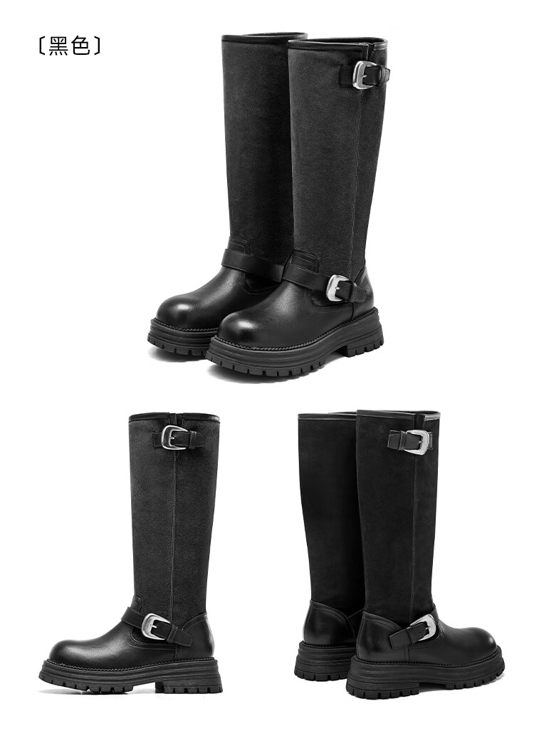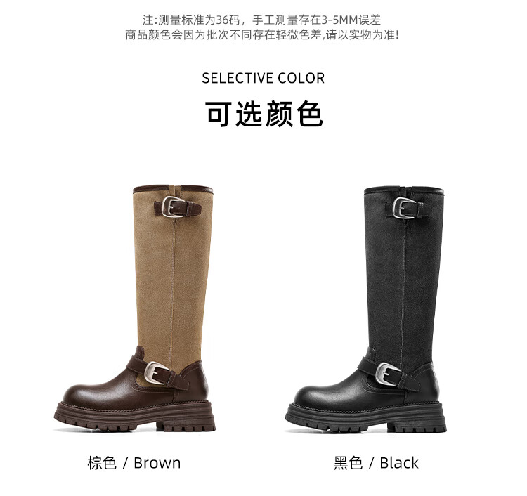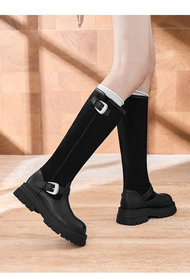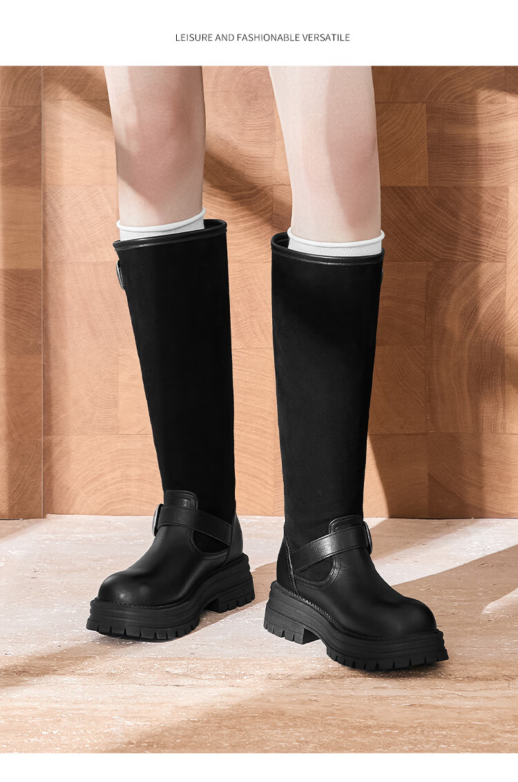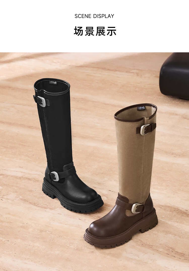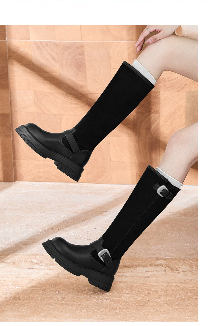 星期六(St&Sat)百搭增高显瘦复古长筒靴2025秋冬新款厚底靴子女 黑色【长筒款】 36