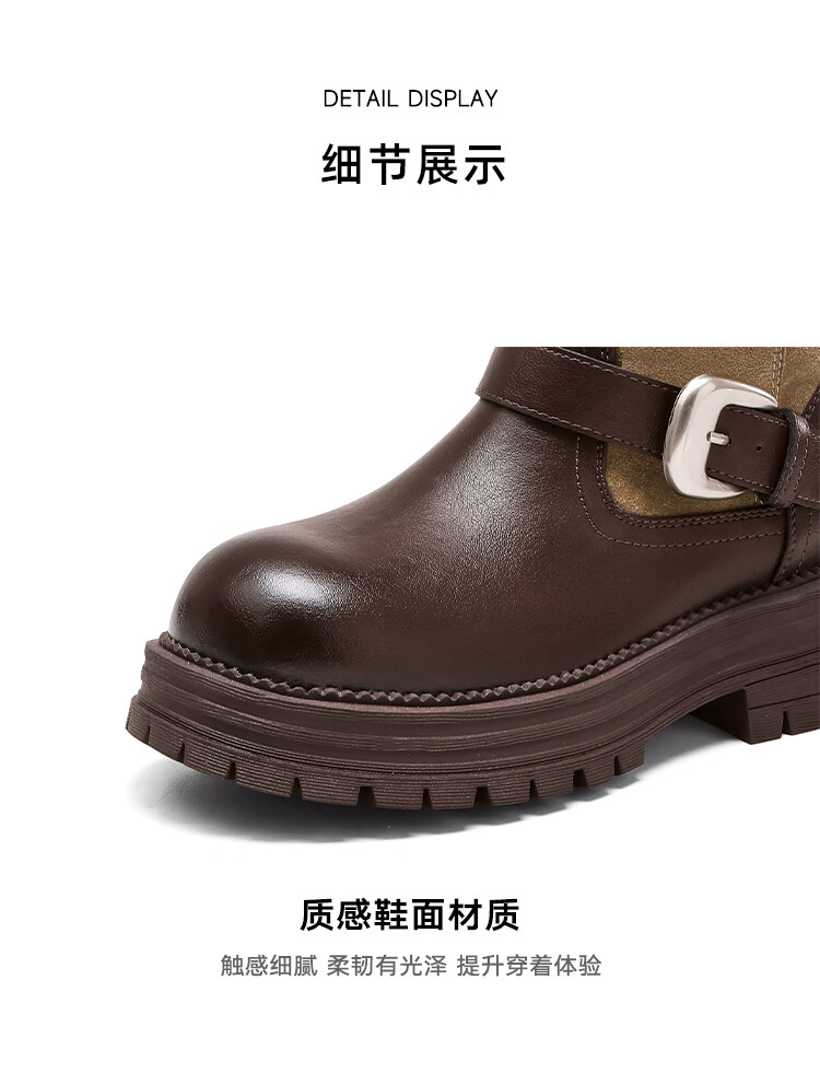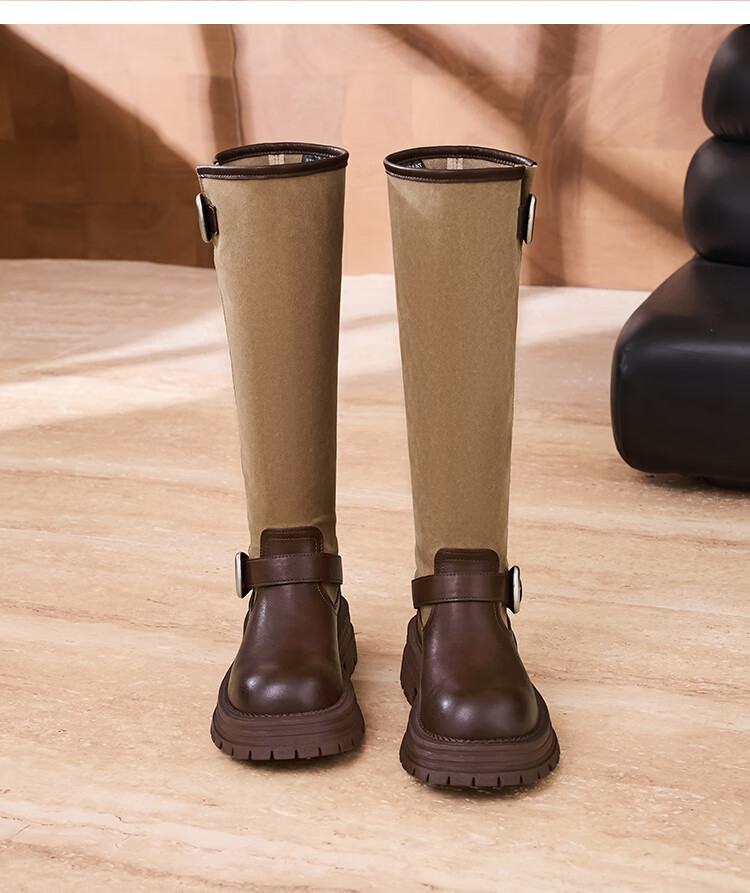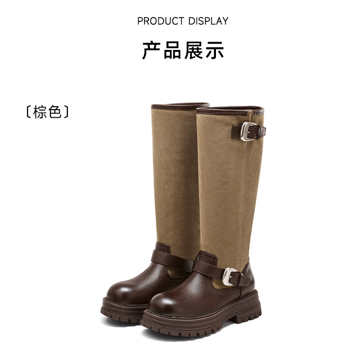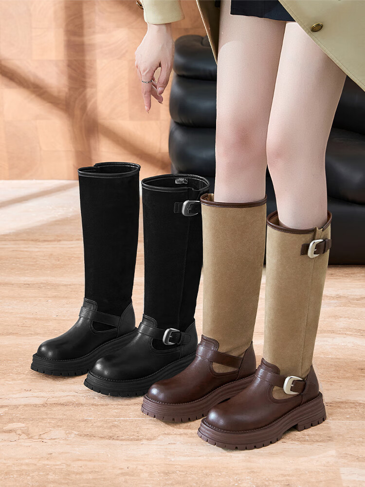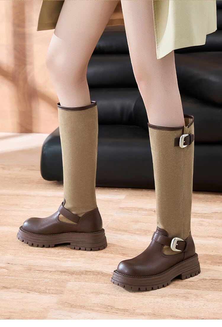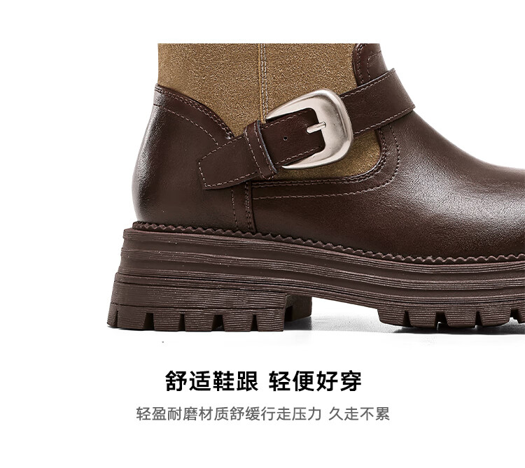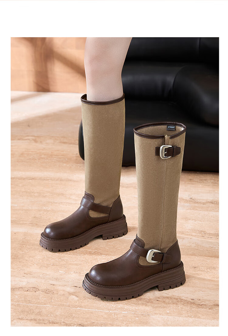 星期六(St&Sat)百搭增高显瘦复古长筒靴2025秋冬新款厚底靴子女 黑色【长筒款】 36