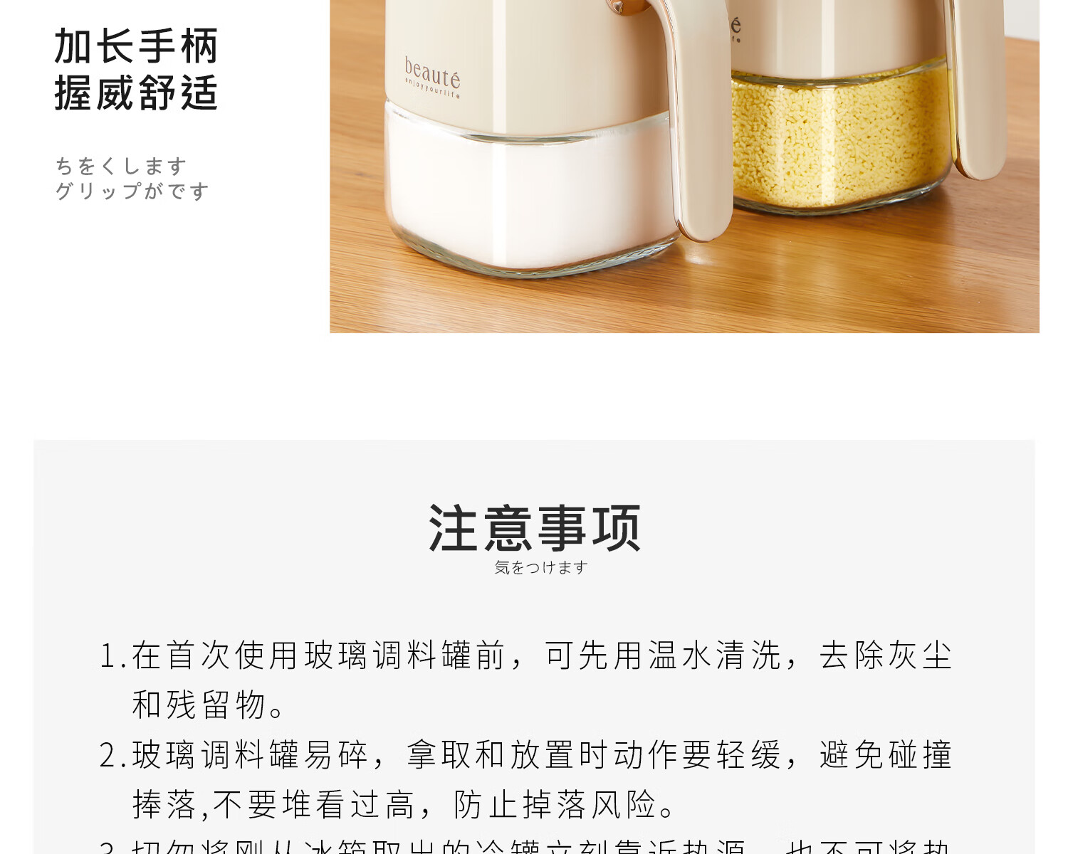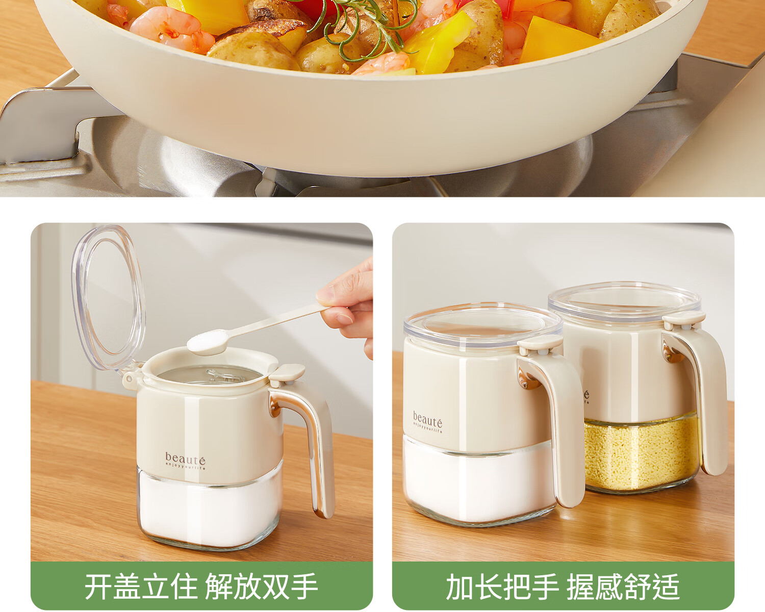 吱凡日本调料罐厨房家用高端盐罐玻璃调料瓶密封调味瓶罐收纳组合套装 【1个】麦穗黄-400ml【密封防潮】