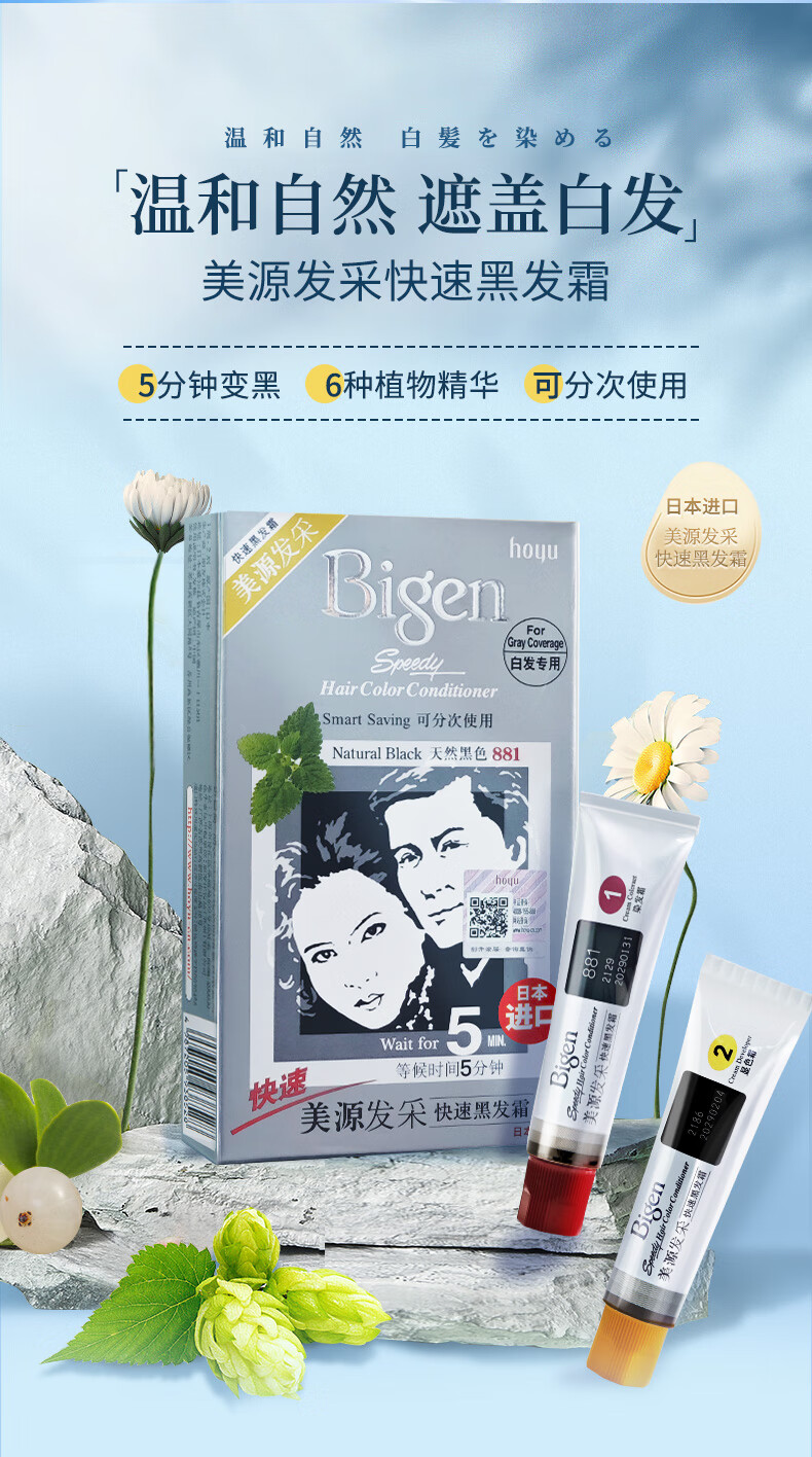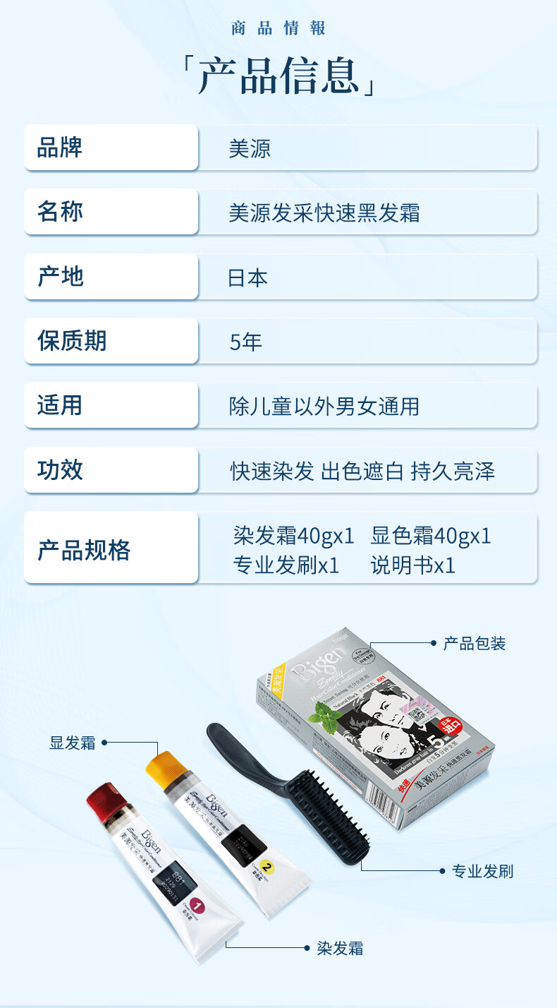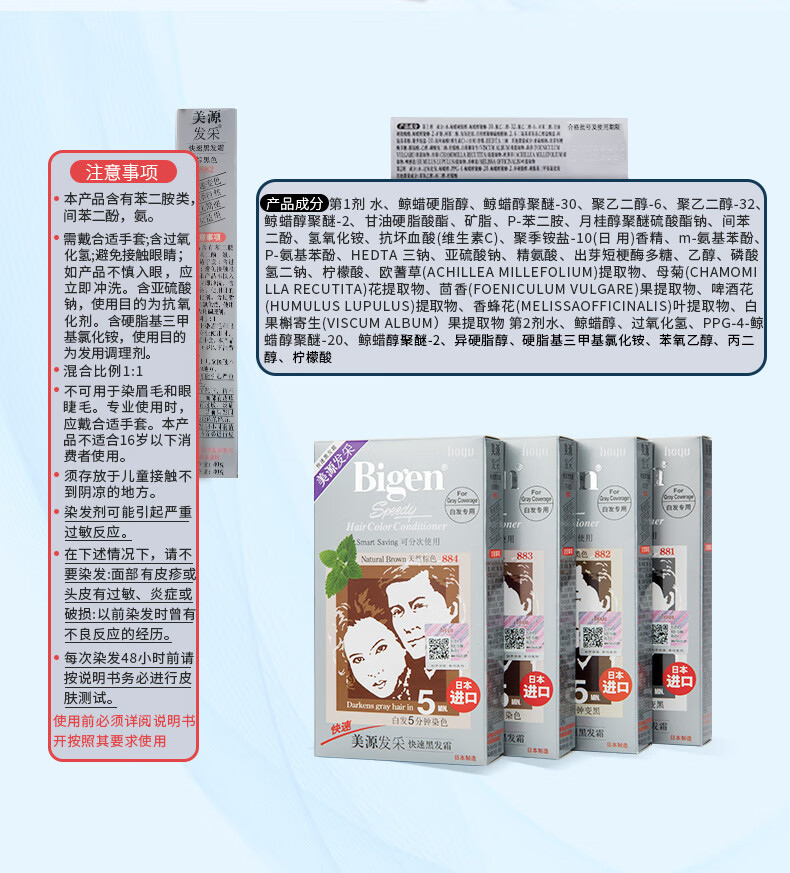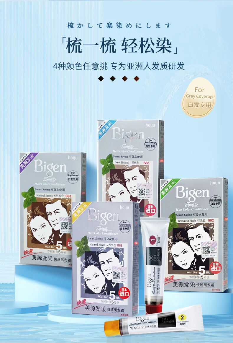 Bigen美源发采快速黑发霜 80g(棕黑色 882)进口 快速染发健康遮白