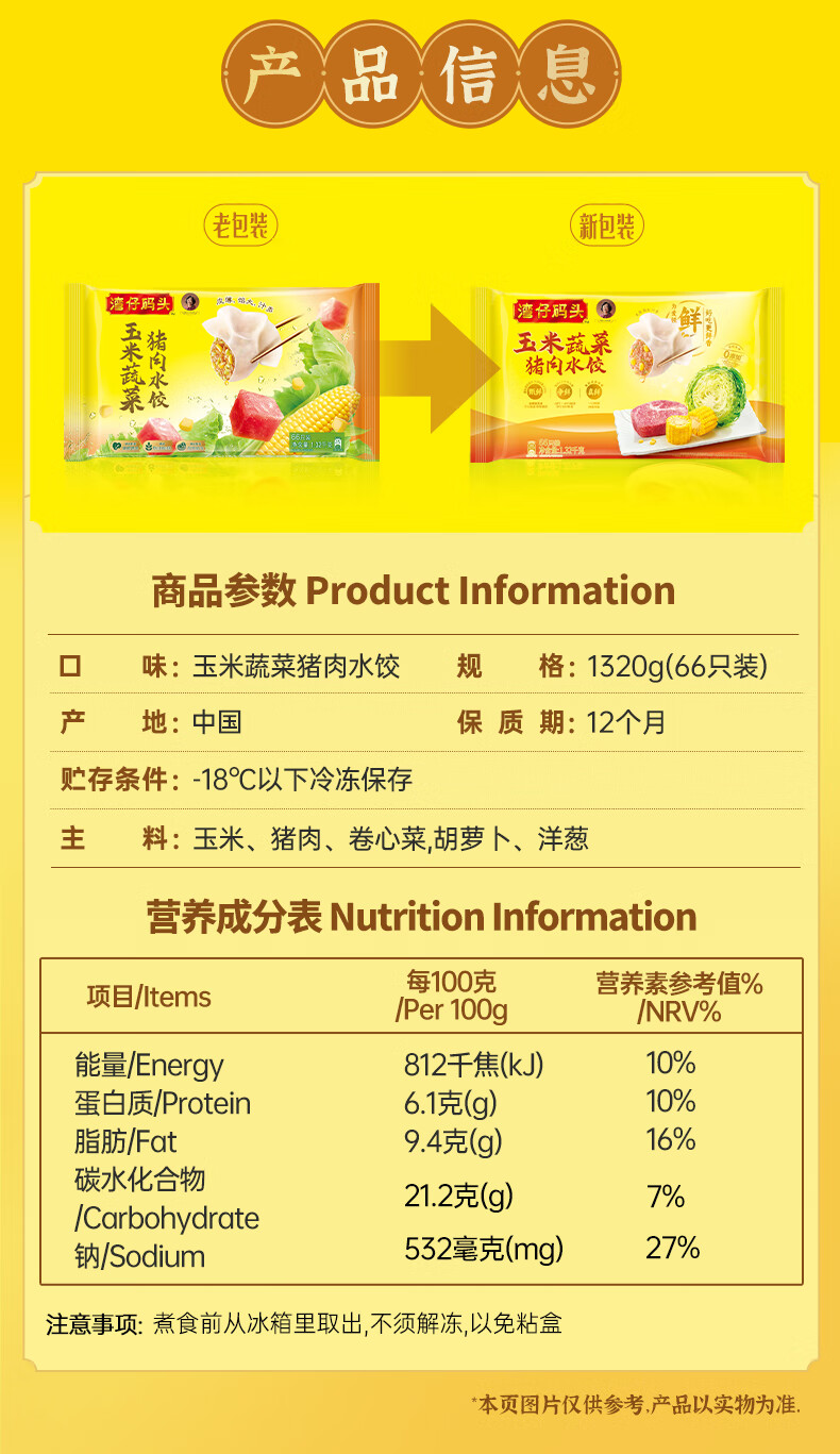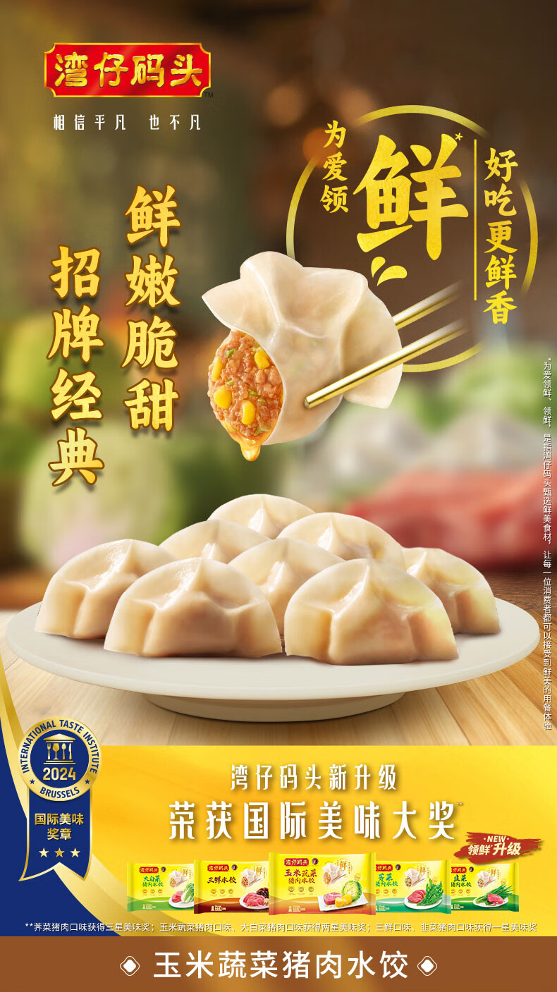 湾仔码头玉米蔬菜猪肉水饺1320g66只早餐速食面点生鲜速冻饺子年货送礼