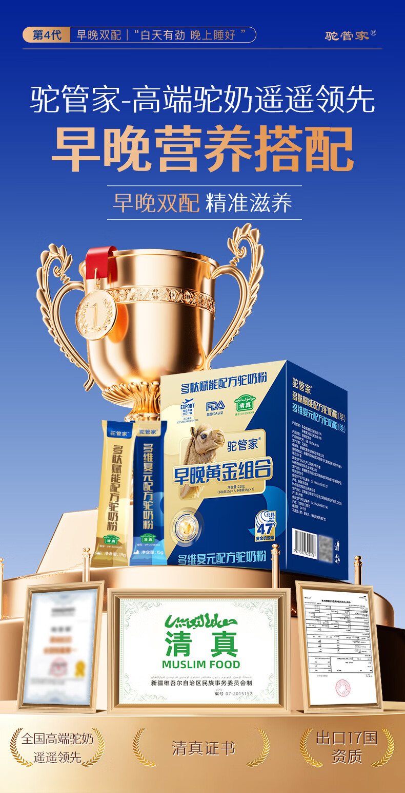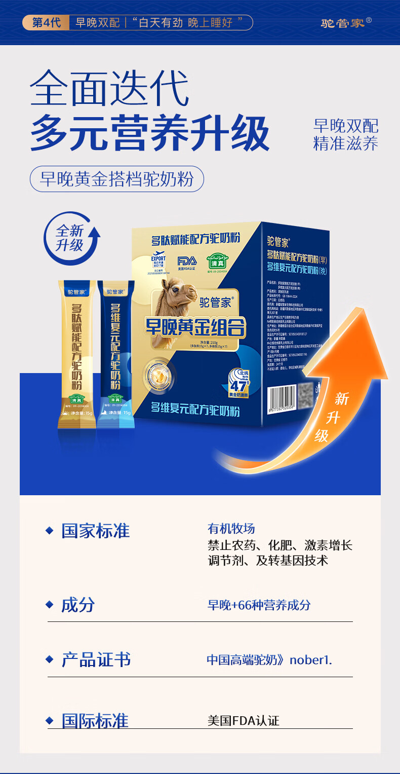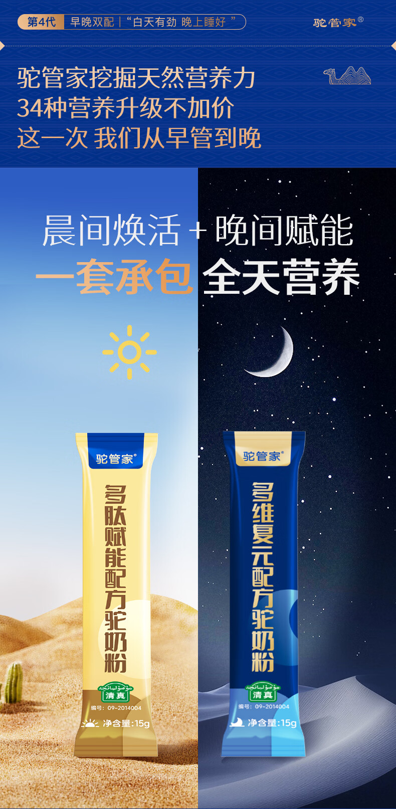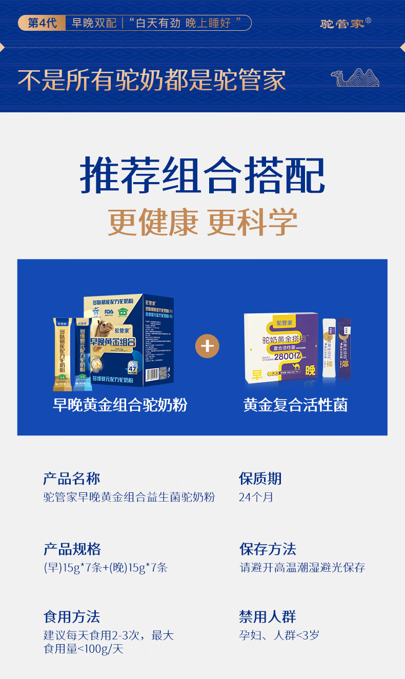 驼管家早晚黄金正宗新疆驼奶粉中成人老年盒装高钙益生菌驼乳粉 1盒*210g【尝鲜装】推荐多盒