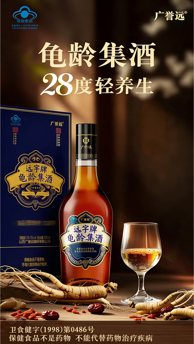 广誉远[年货优选]龟龄集酒蓝宝石500ml*2瓶 人参酒抗疲劳酒年货高端礼赠 28%vol 500mL 2瓶