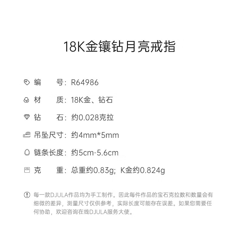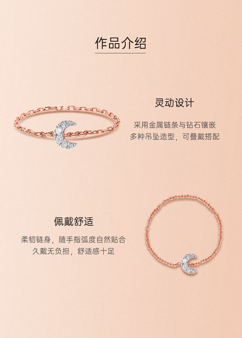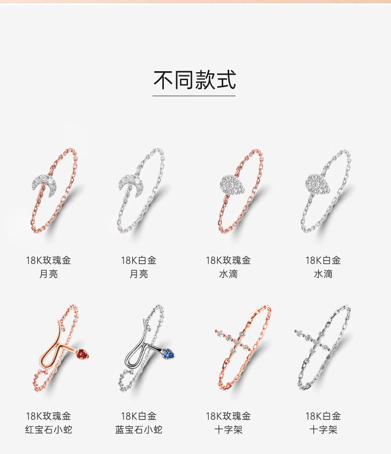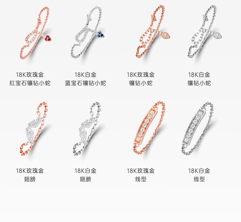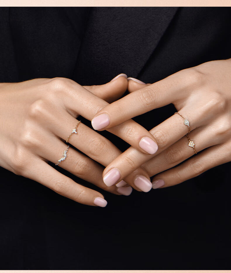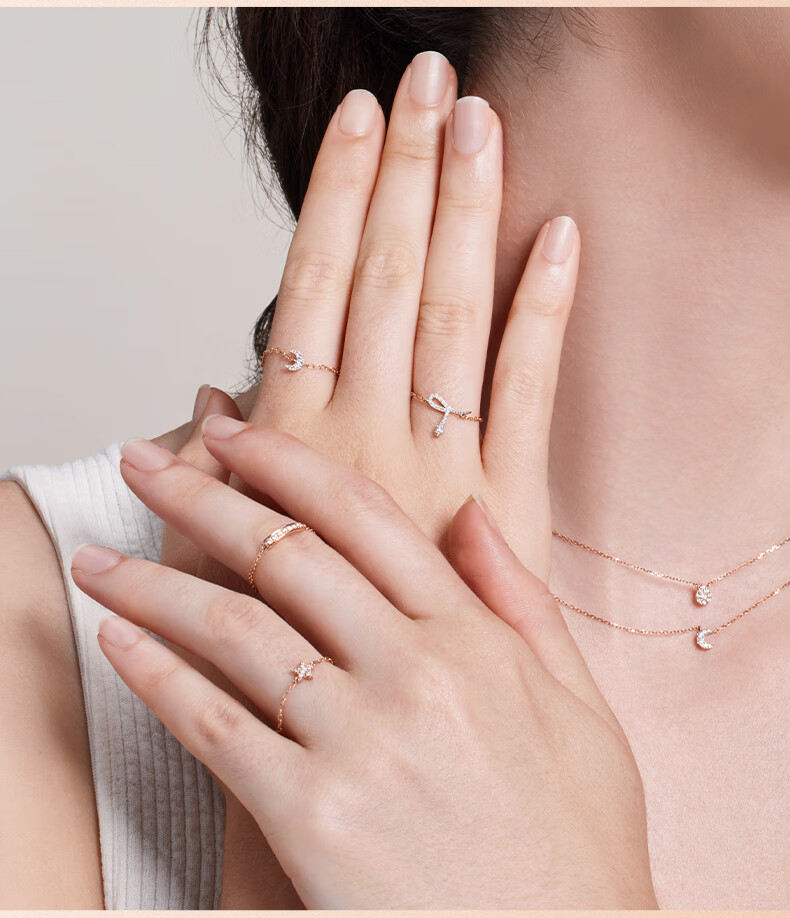 DJULA【店铺臻选】茱蕊魔法18K金镶钻高级感轻奢链条戒指新年礼物 18K金玫瑰金(蛇形-50/52/56mm备注)