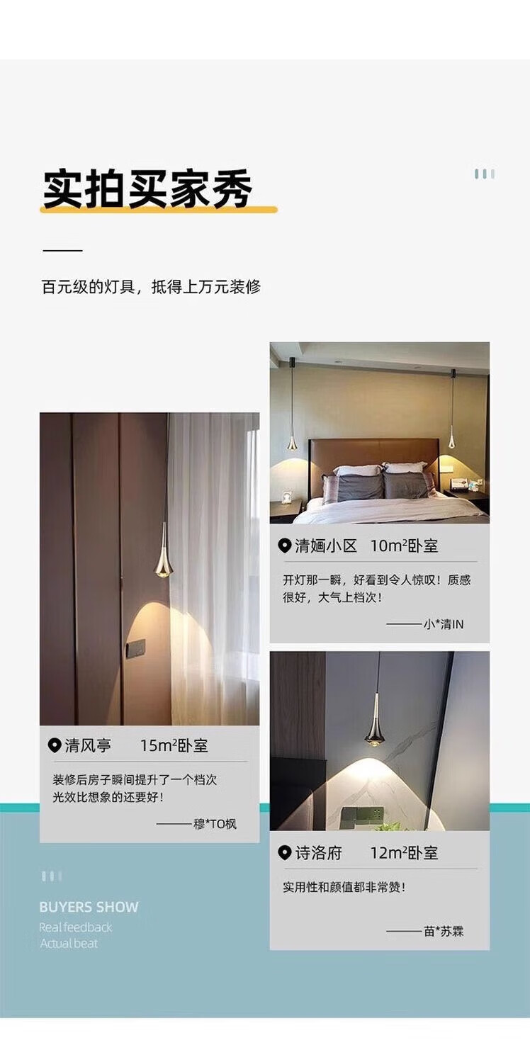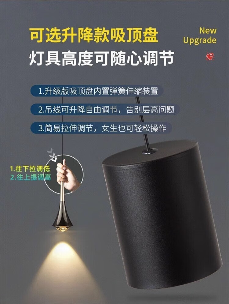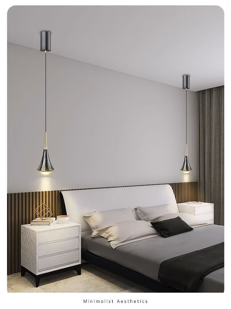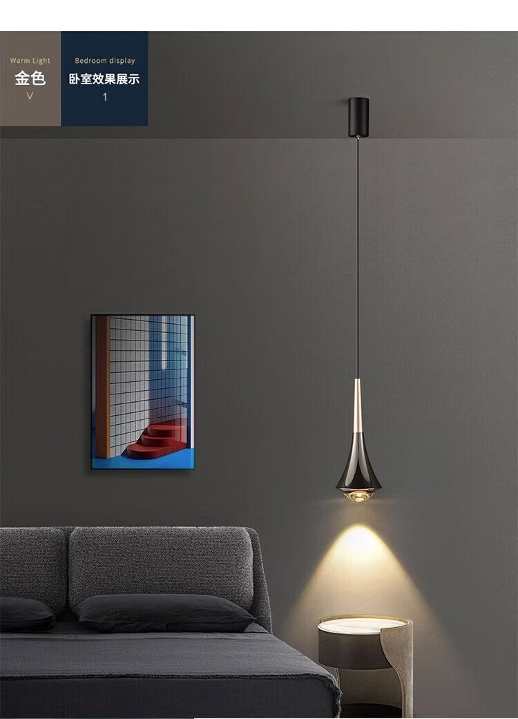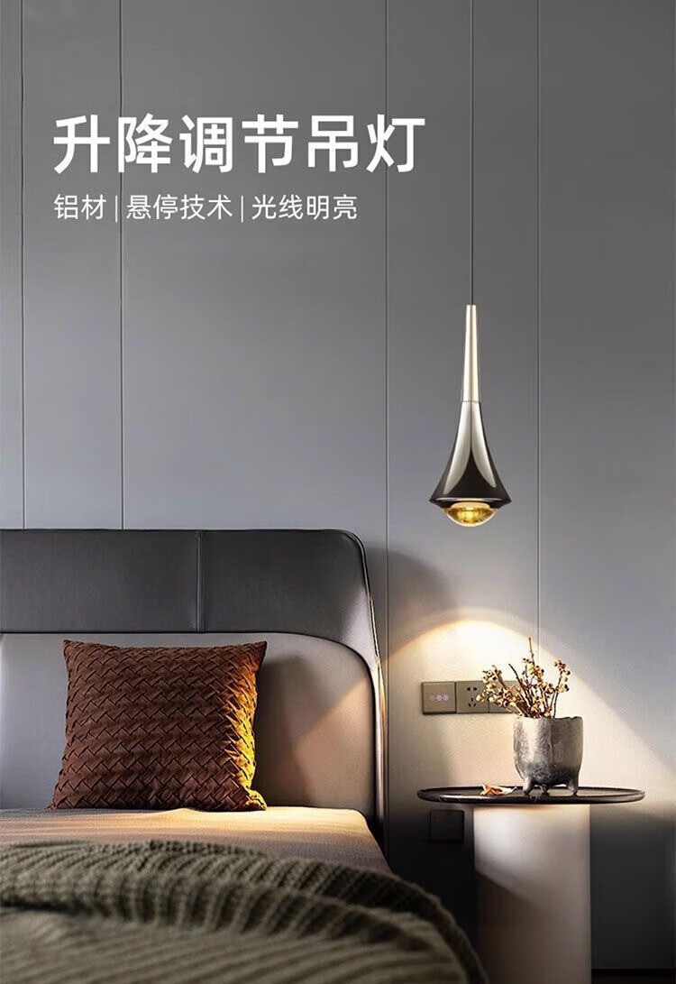 灯护士床头小吊灯触摸感应卧室餐厅轻奢吊线灯简约大气新款可升降吊灯 上金下黑色(常规款)护眼光-三色变光