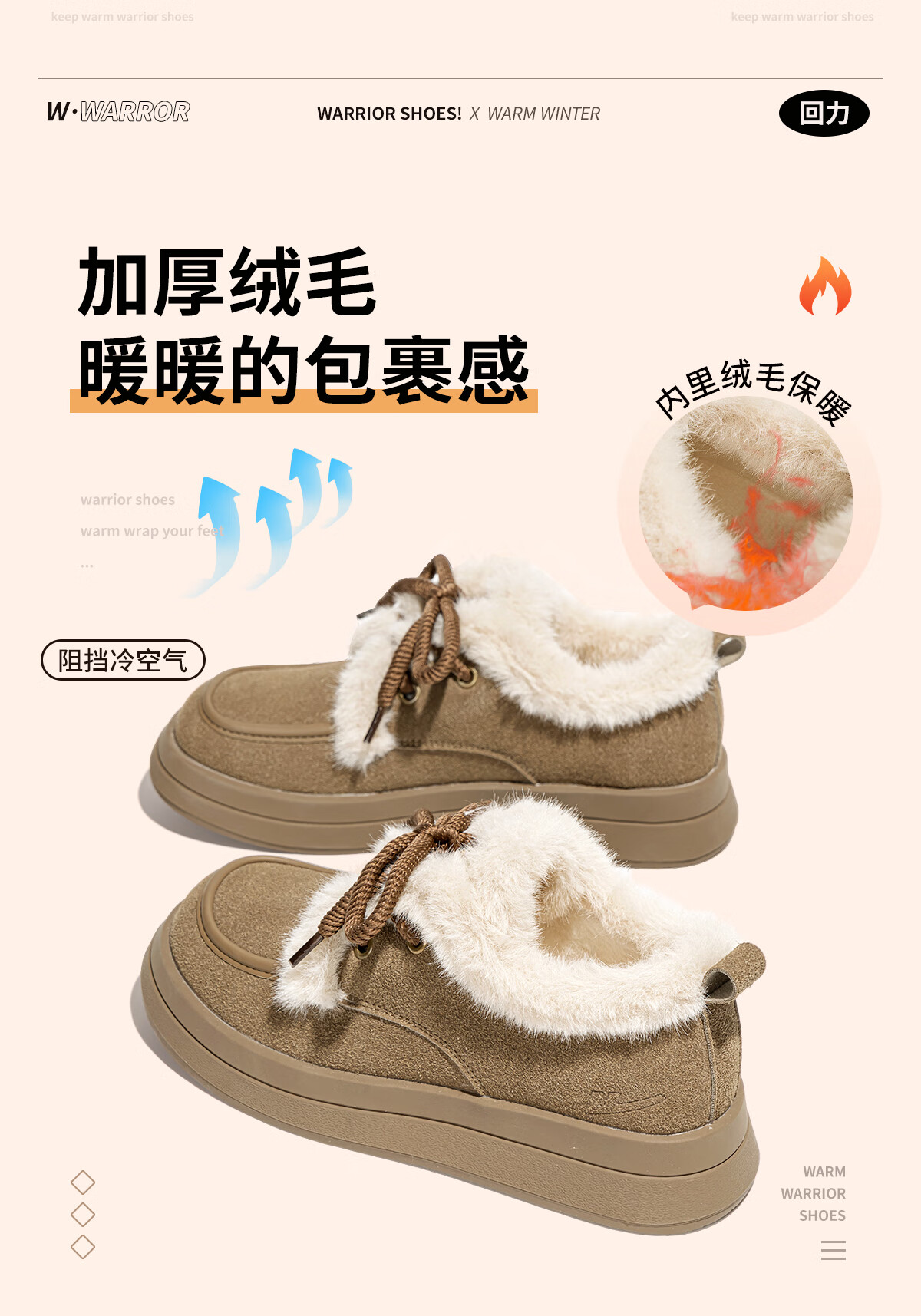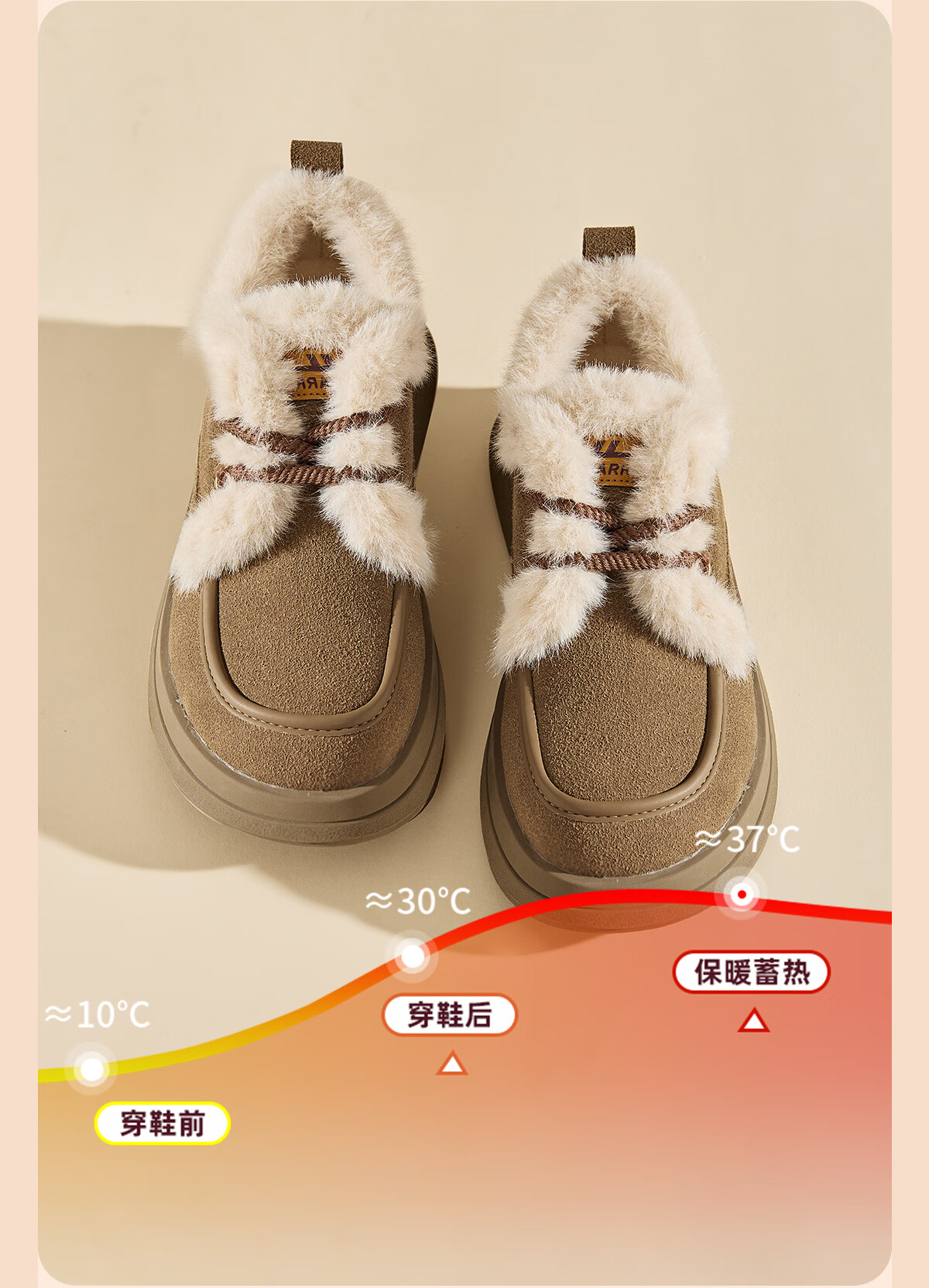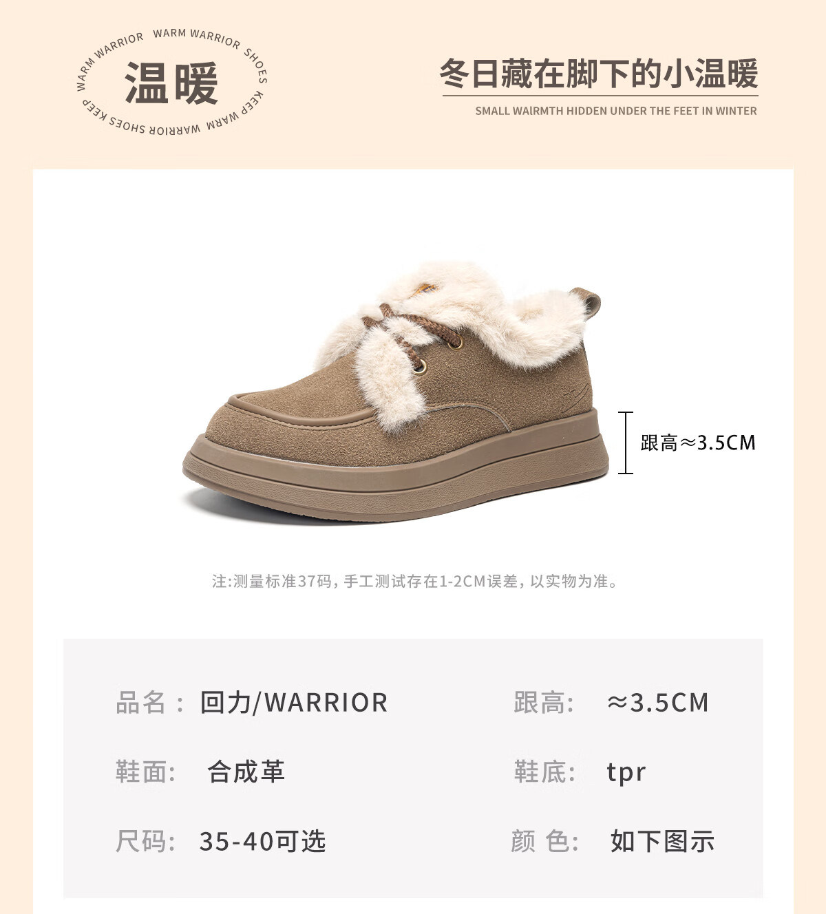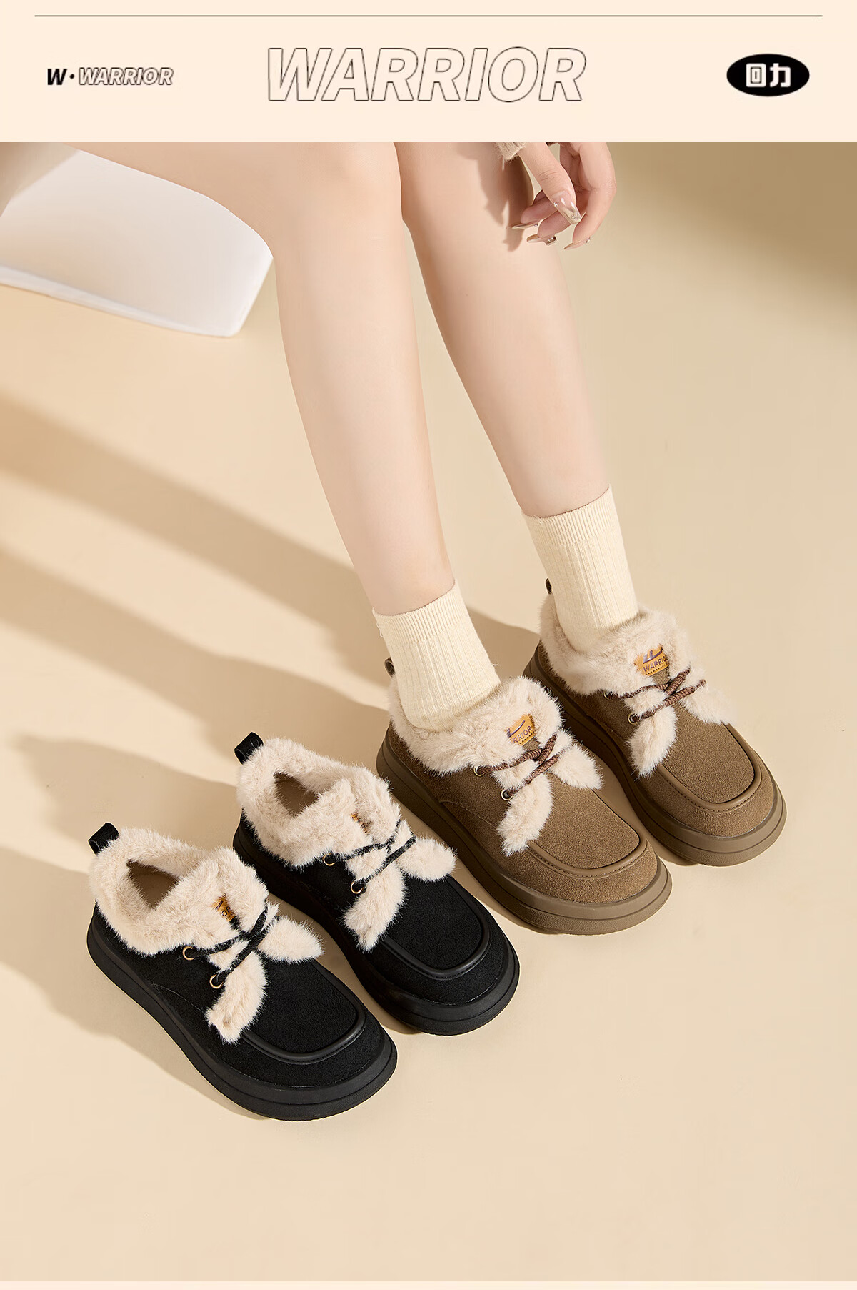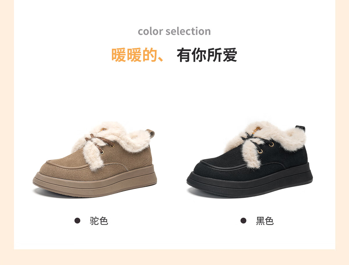 回力厚底棉鞋女鞋2025冬季新款舒适女士户外百搭加绒加厚御寒保暖鞋 驼色 37