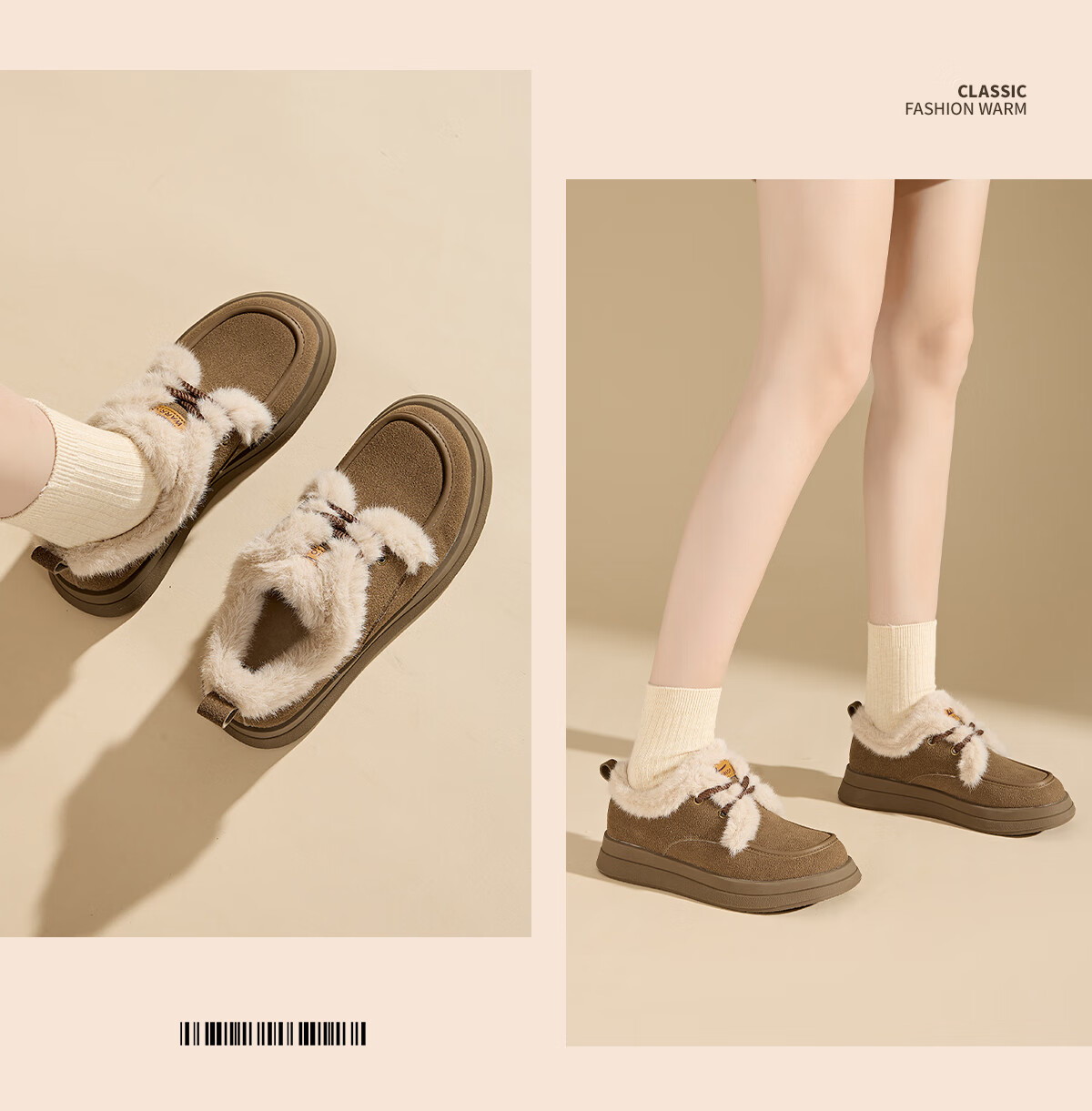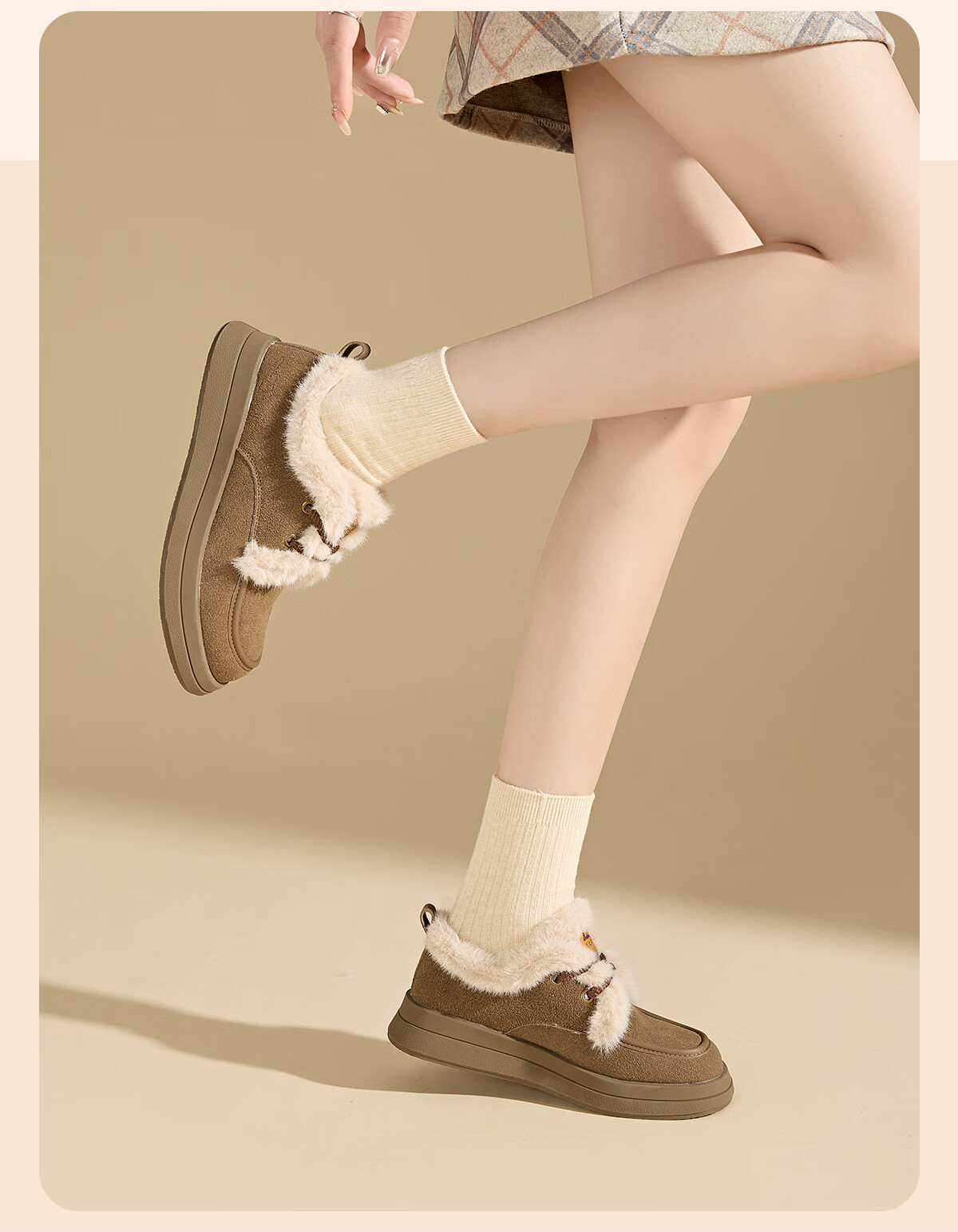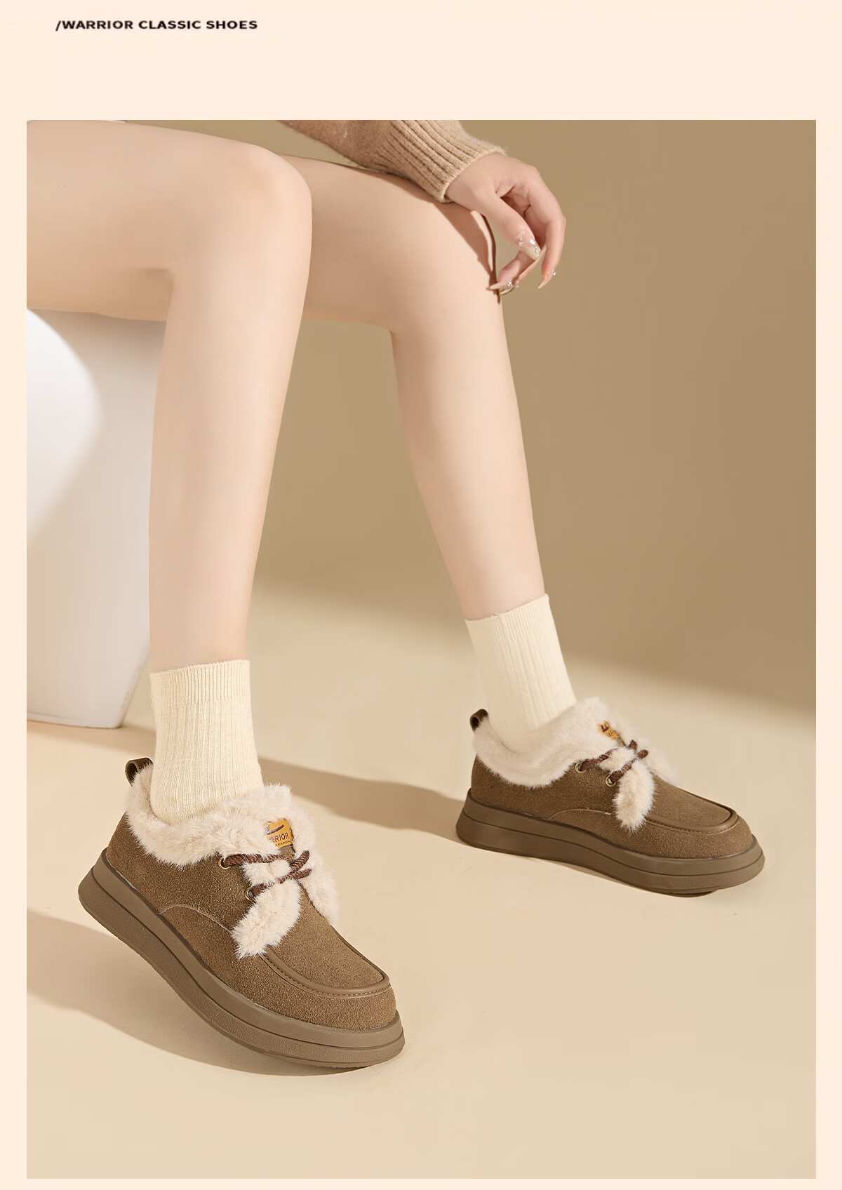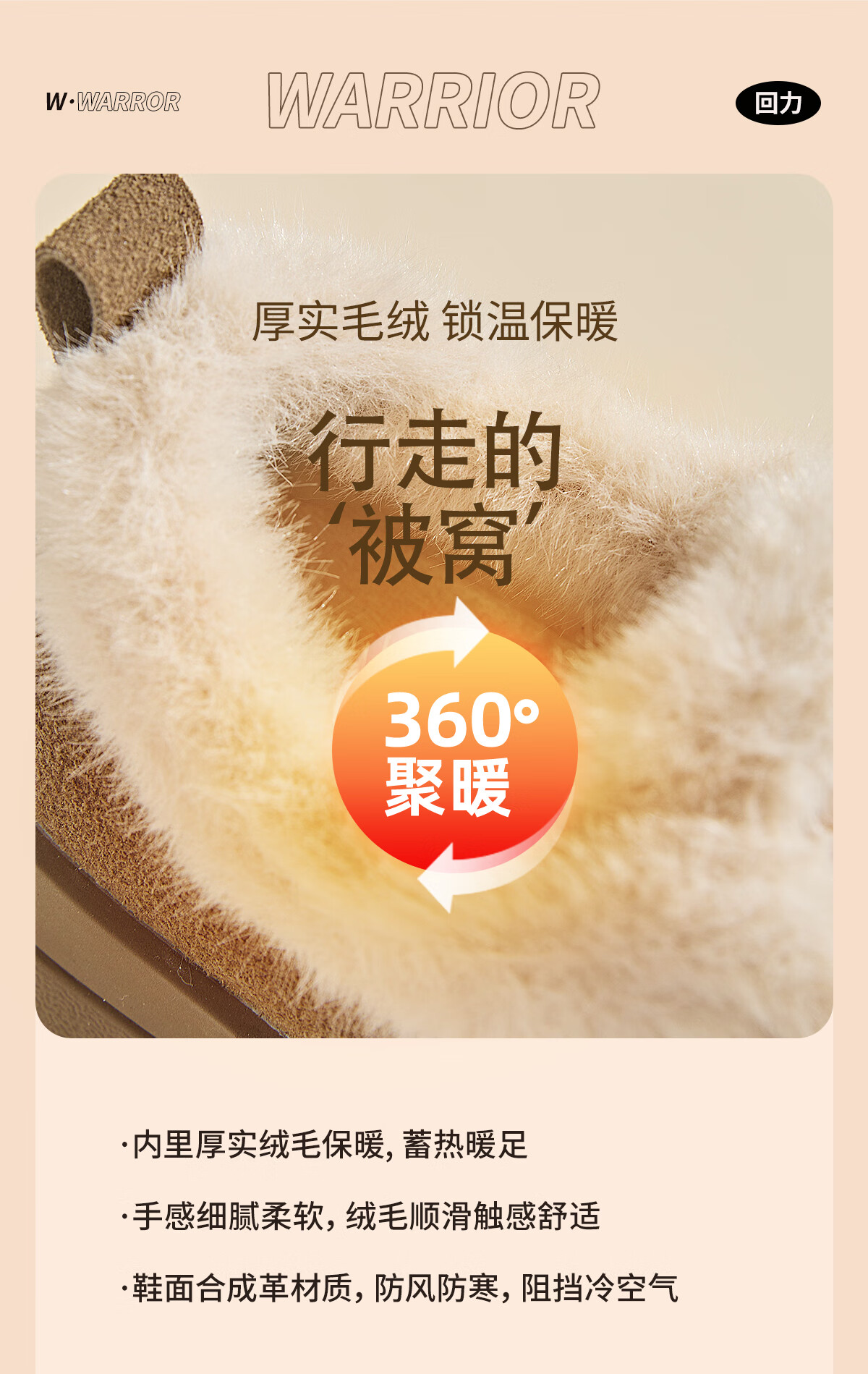 回力厚底棉鞋女鞋2025冬季新款舒适女士户外百搭加绒加厚御寒保暖鞋 驼色 37
