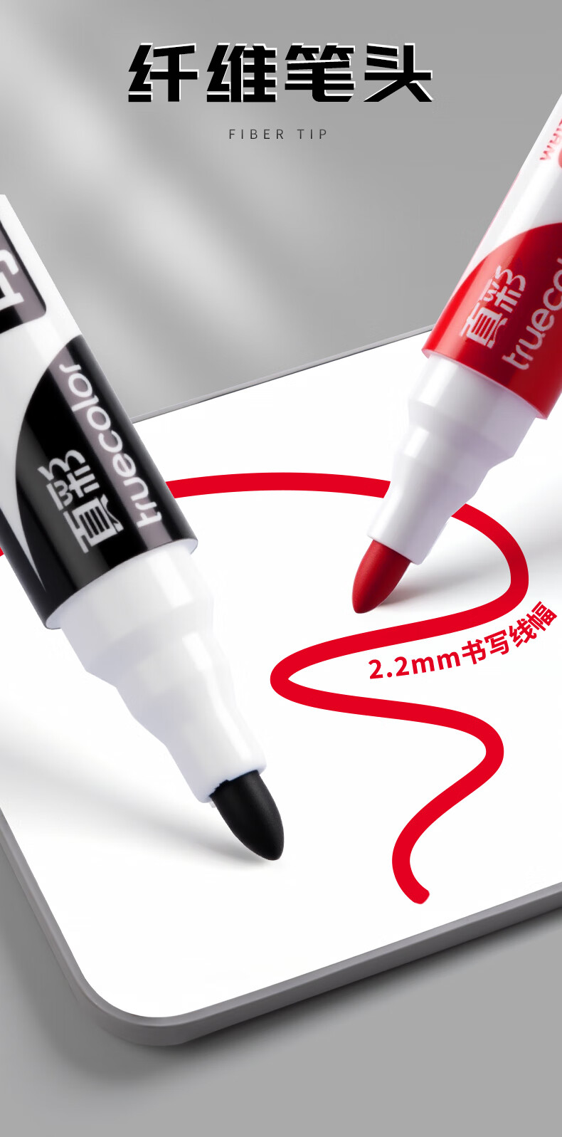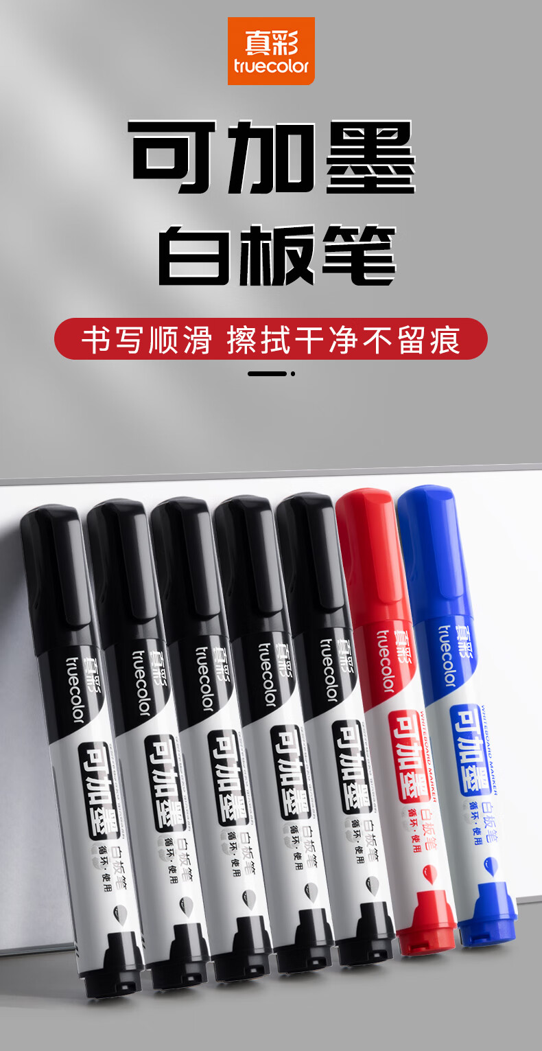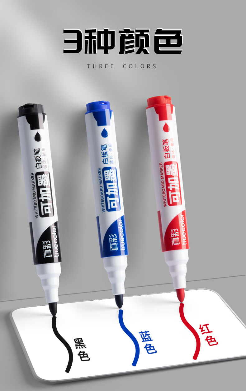 真彩(TRUECOLOR)白板笔可擦黑板水笔可擦水性黑色记号笔教师用儿童无毒画板写字易擦写粗头大头细头可加墨10支5755