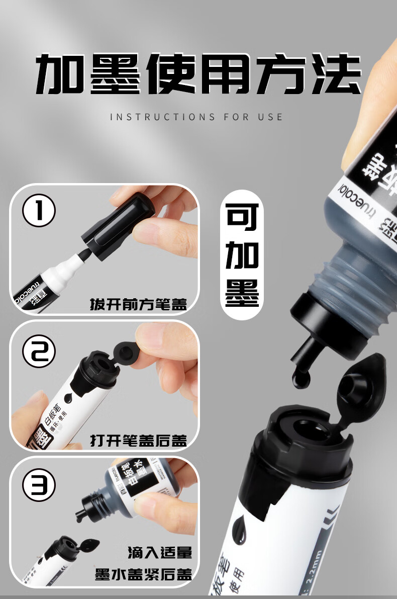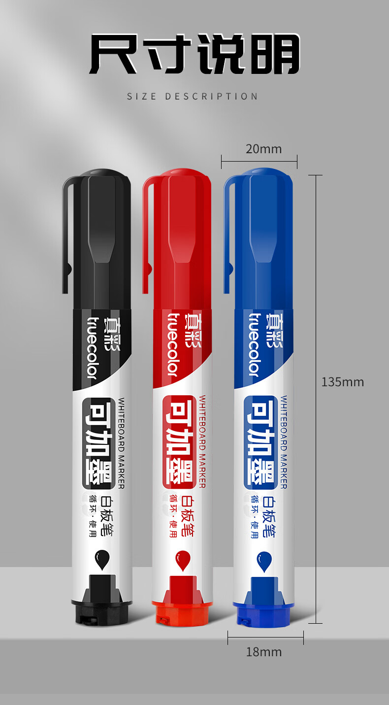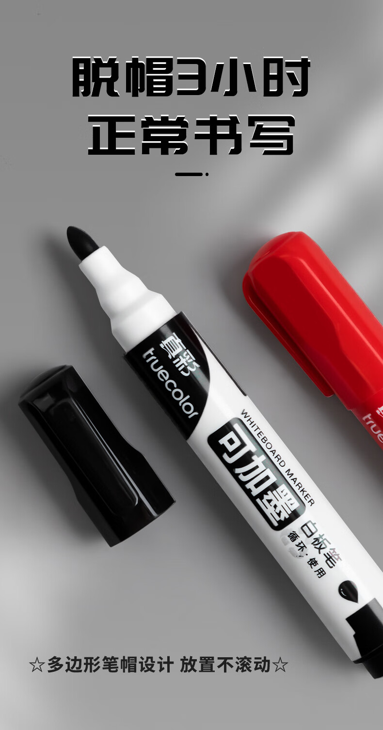 真彩(TRUECOLOR)白板笔可擦黑板水笔可擦水性黑色记号笔教师用儿童无毒画板写字易擦写粗头大头细头可加墨10支5755