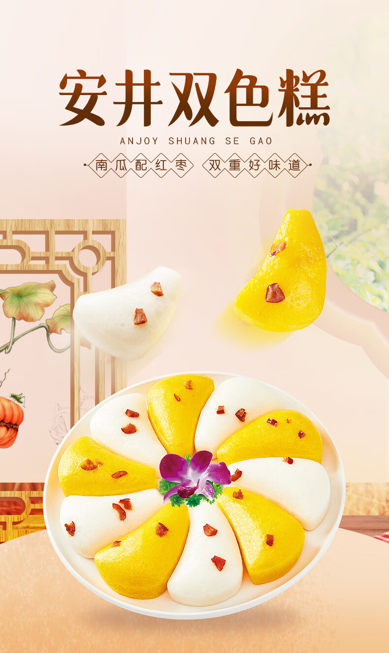安井 双色糕 280g*3袋 共30块装 健康早餐糕点发糕 冷冻速食蒸糕面点