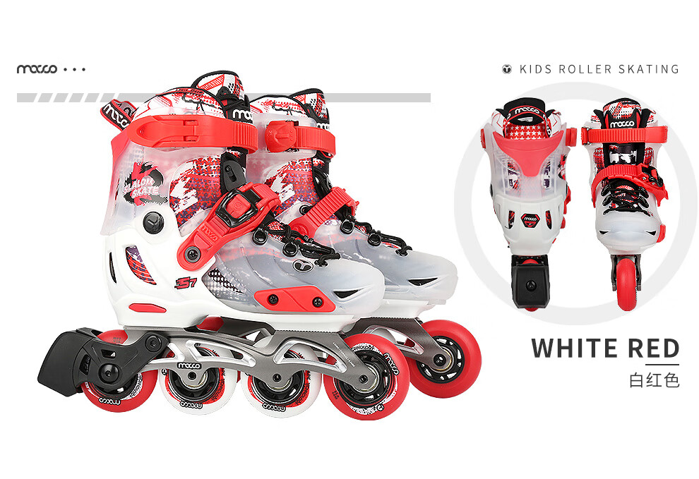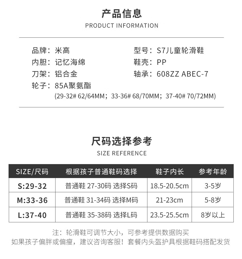 米高轮滑鞋儿童溜冰鞋旱冰鞋可调节初学休闲花式两用中小学生培训鞋S7 白色K9套装(K9盔+PE1护+包) S-7 M (推荐鞋码33-36)