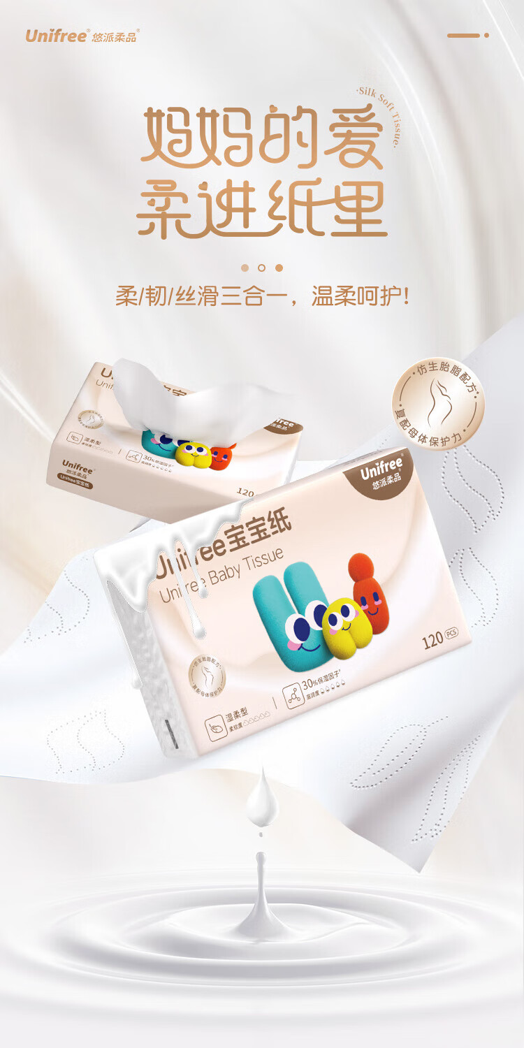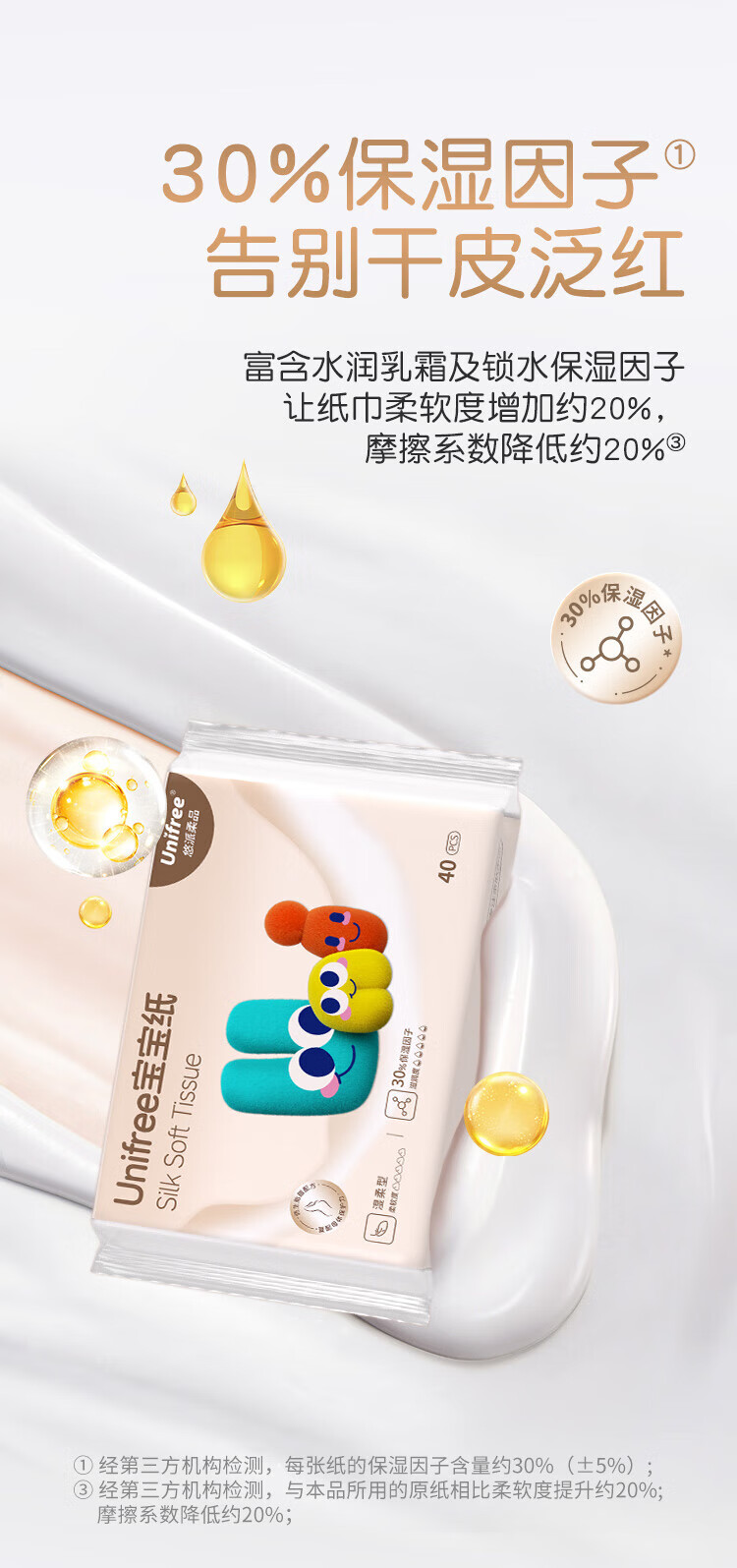 unifree宝宝乳霜纸云柔巾牛乳纸柔纸巾婴儿仿生胎脂纸巾敏感肌可用 升级款乳霜纸 3层 40抽*9包