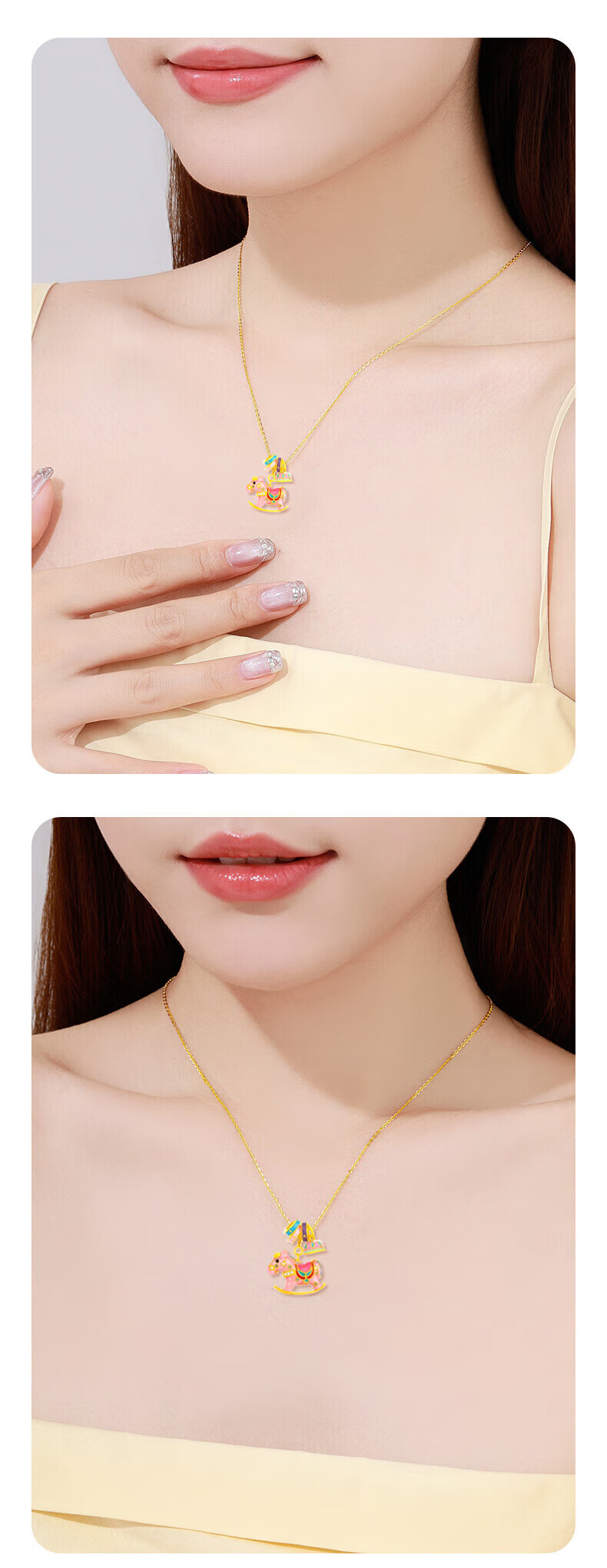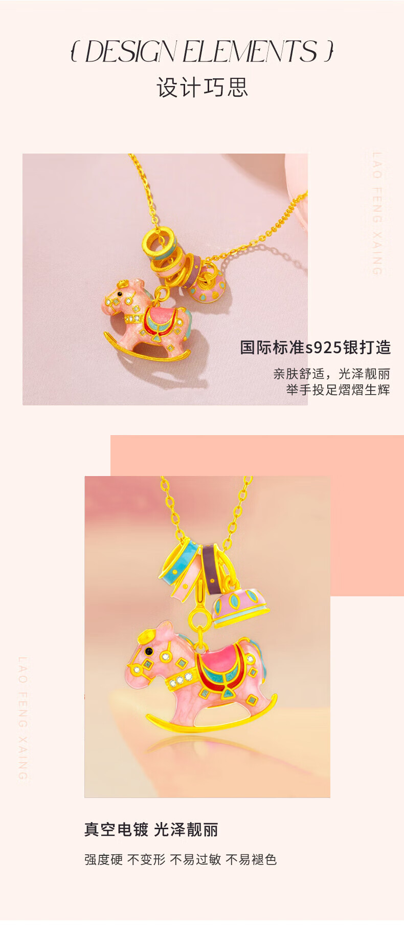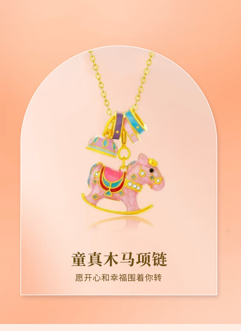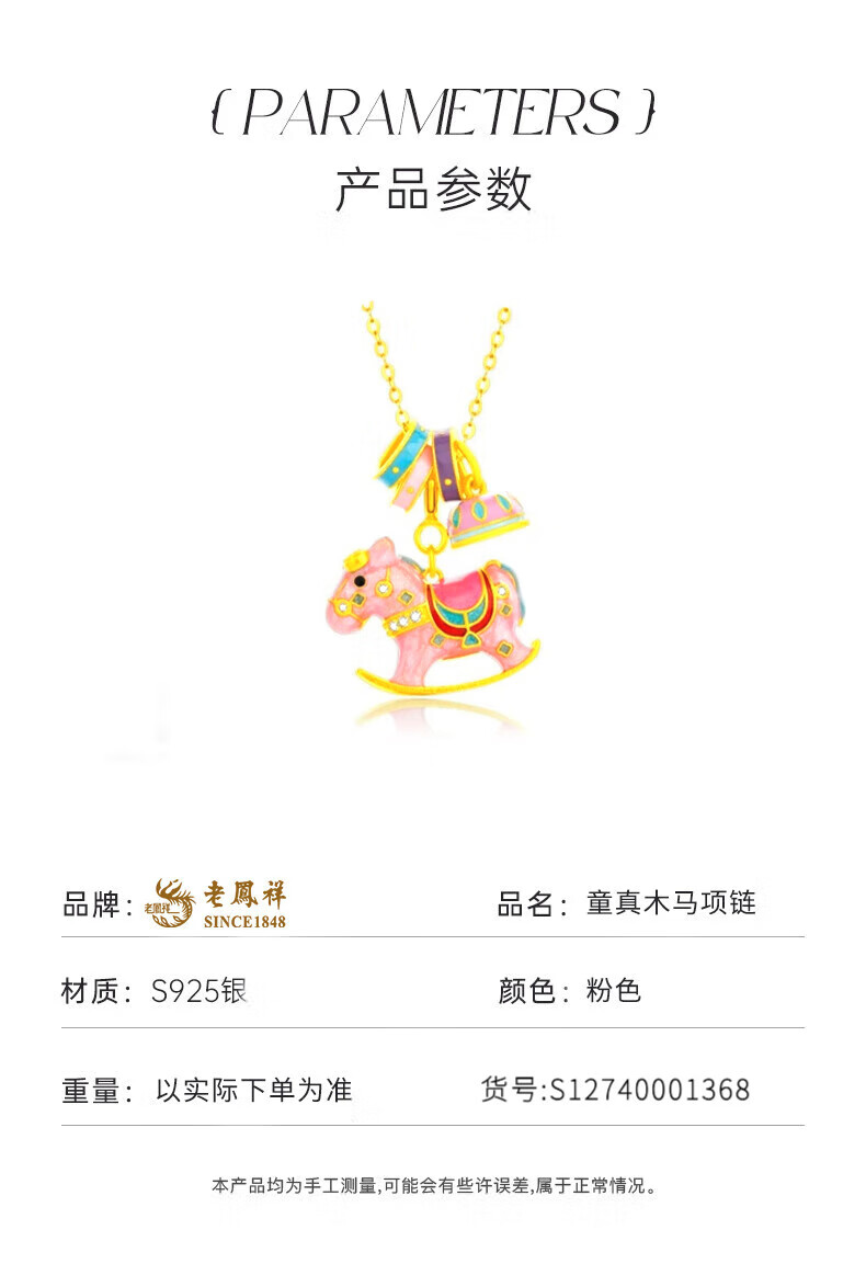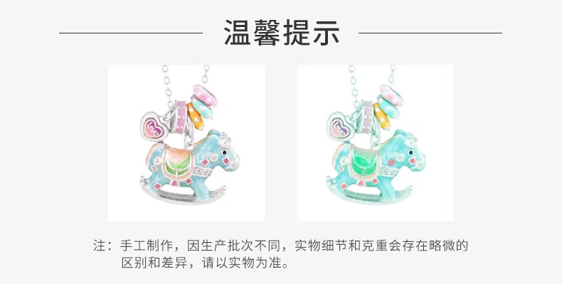 老凤祥欢乐木马项链轻奢小众感纯银锁骨链马年本命年生日礼物送女友老婆 今/明日达*限时清仓*925银童真木马项链-绿色