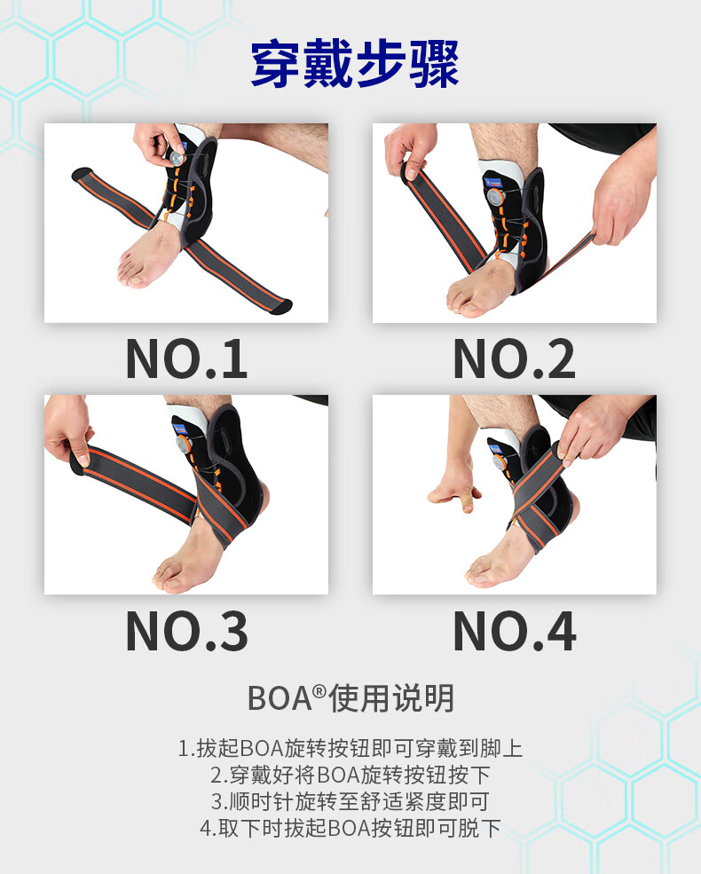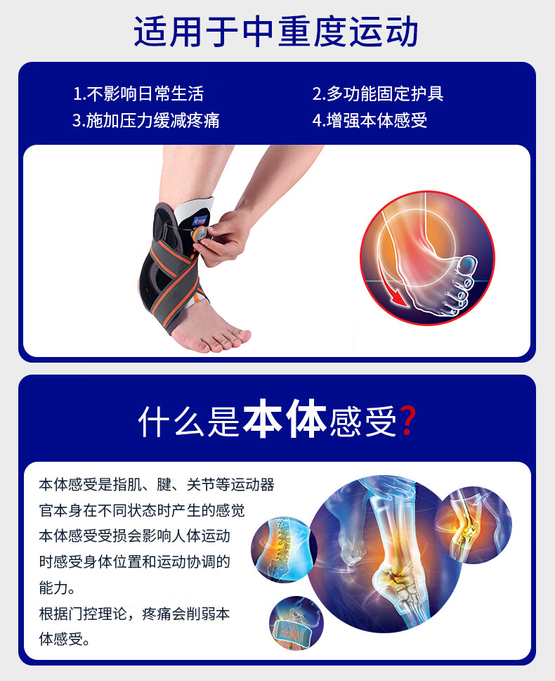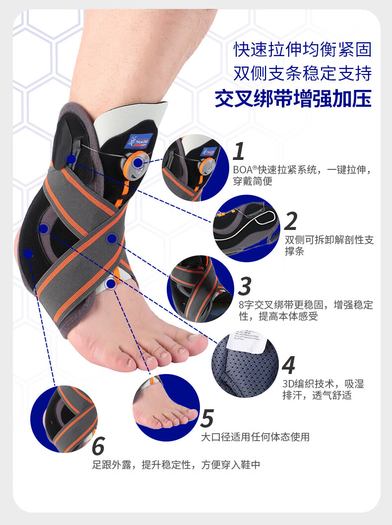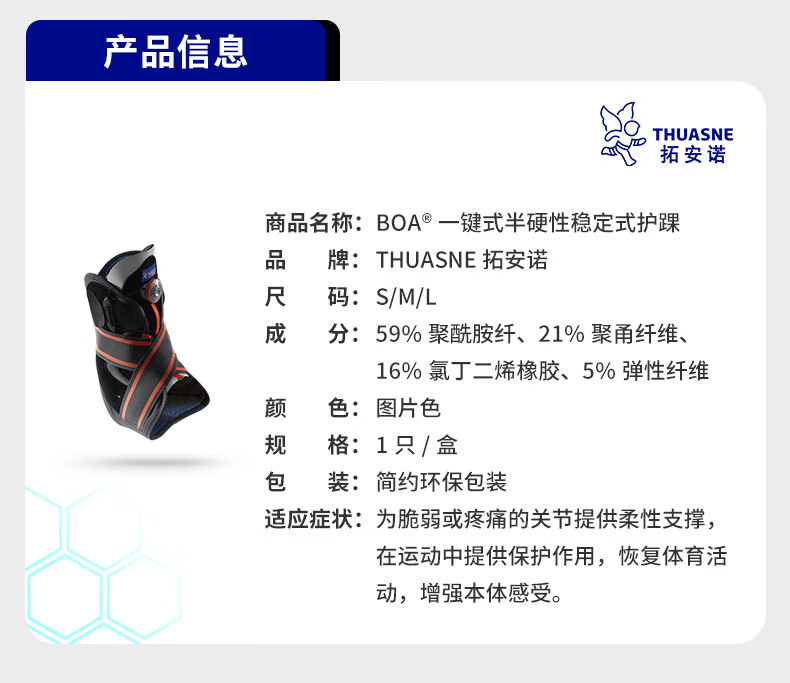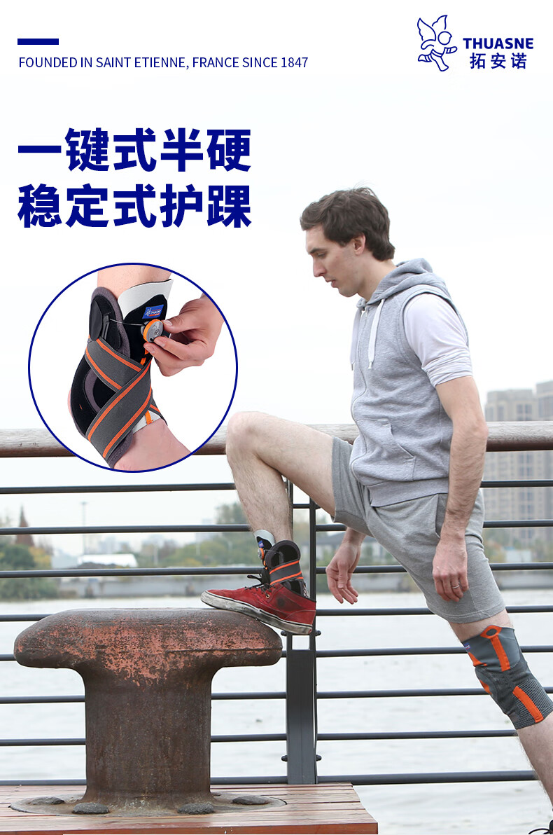 THUASNE法国途安进口硬支撑护踝 崴脚内外翻韧带损伤撕脱性骨折固定防护 蓝灰色 2号M(22cm-26cm)
