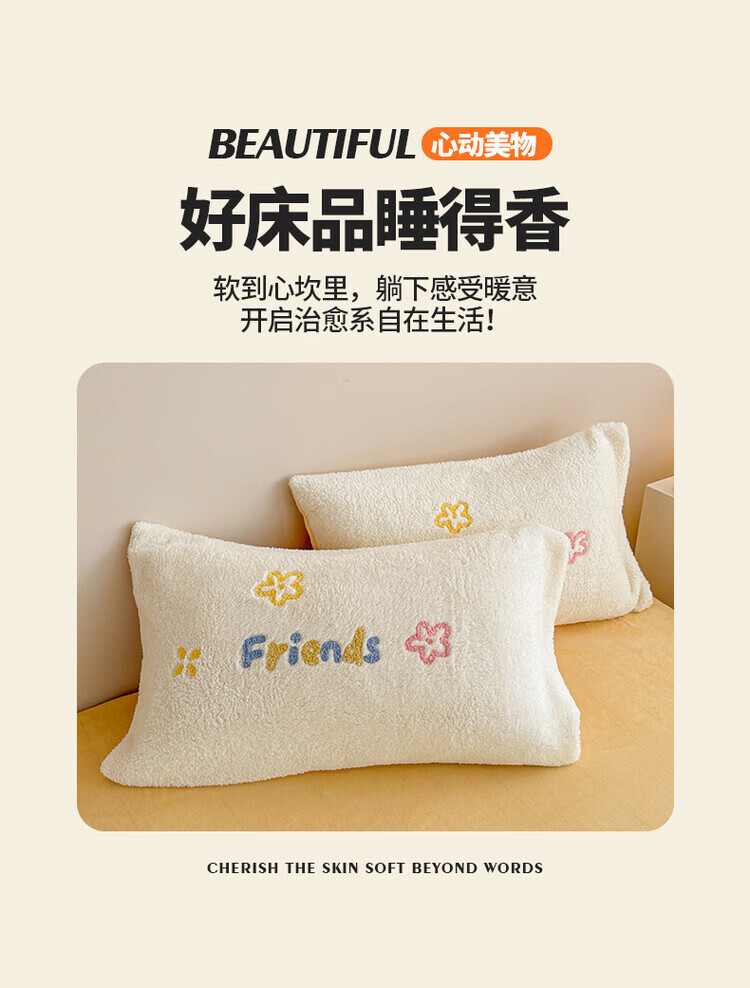 猫人(MiiOW)牛奶绒毛球花边枕头套一对装48x74加绒保暖珊瑚绒35x55枕芯内胆套 落苏紫【高克重牛奶绒】单只装 35cmX55cm