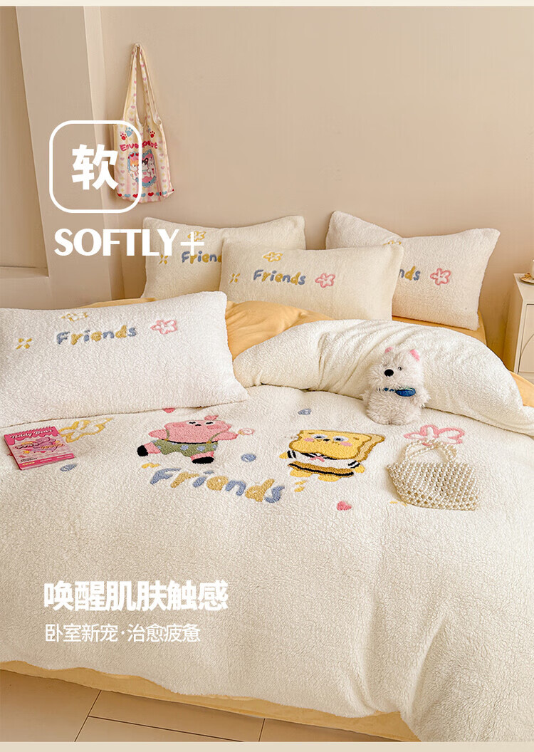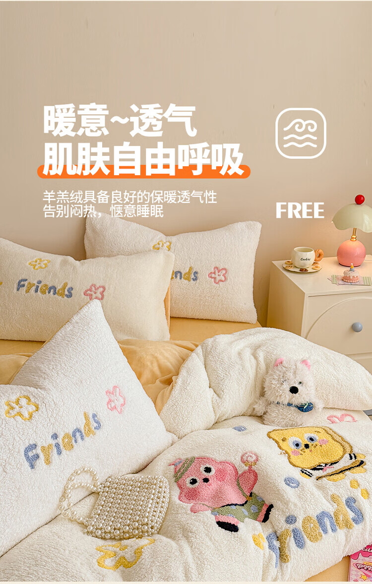 无印良品A类高端冬季保暖床上四件套羊羔绒被套儿童床单三件套 酷小狗 0.9/1.2 床单款 三件套-被套150*200cm