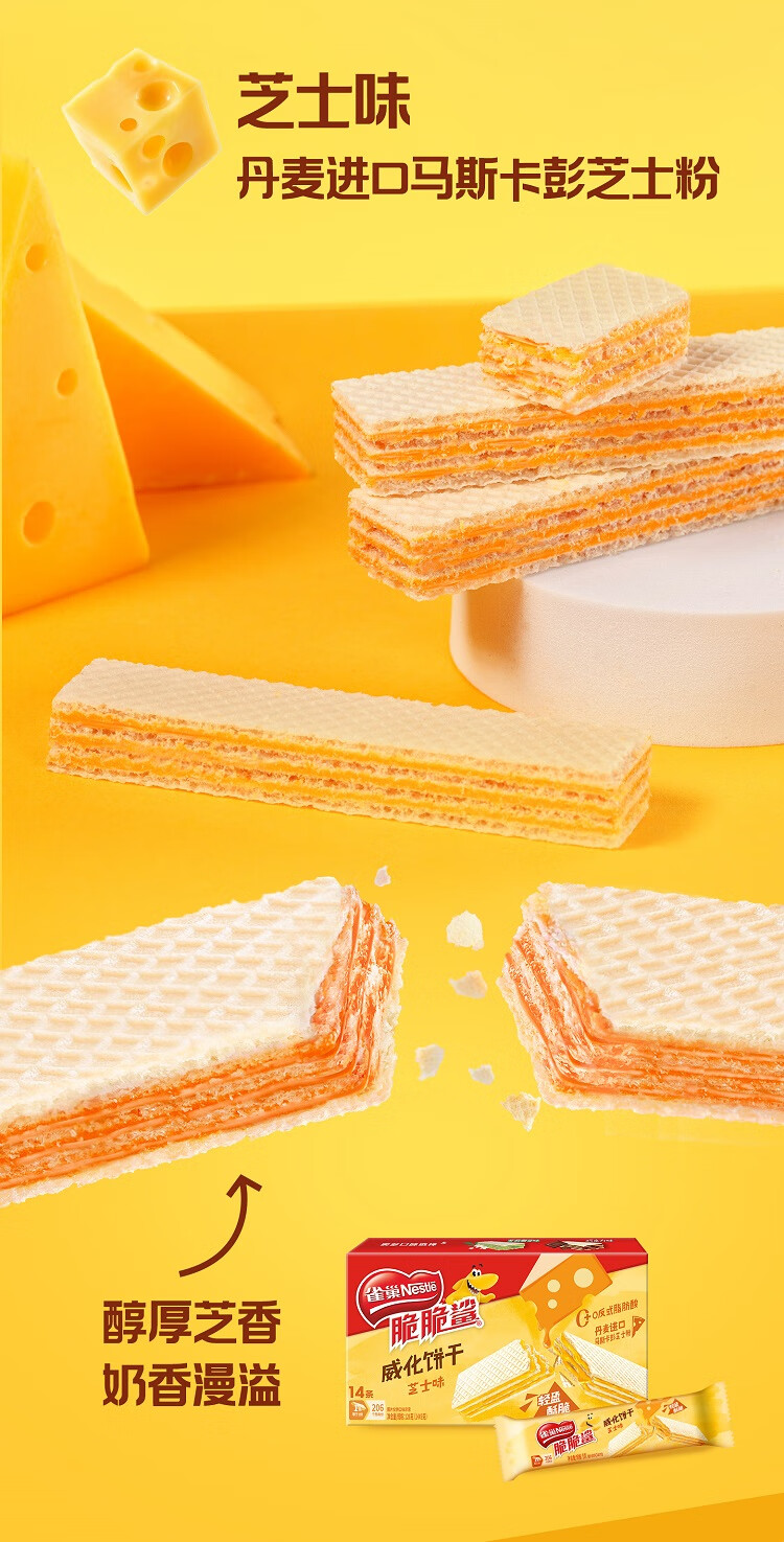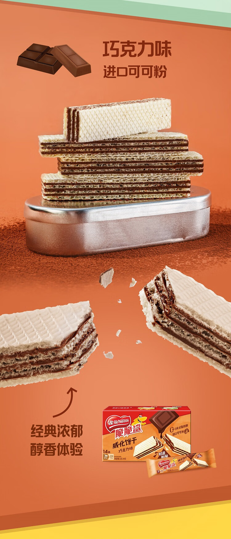 雀巢(Nestle)脆脆鲨进口可可粉巧克力味夹心威化饼干14条126g新年年货饼干礼物